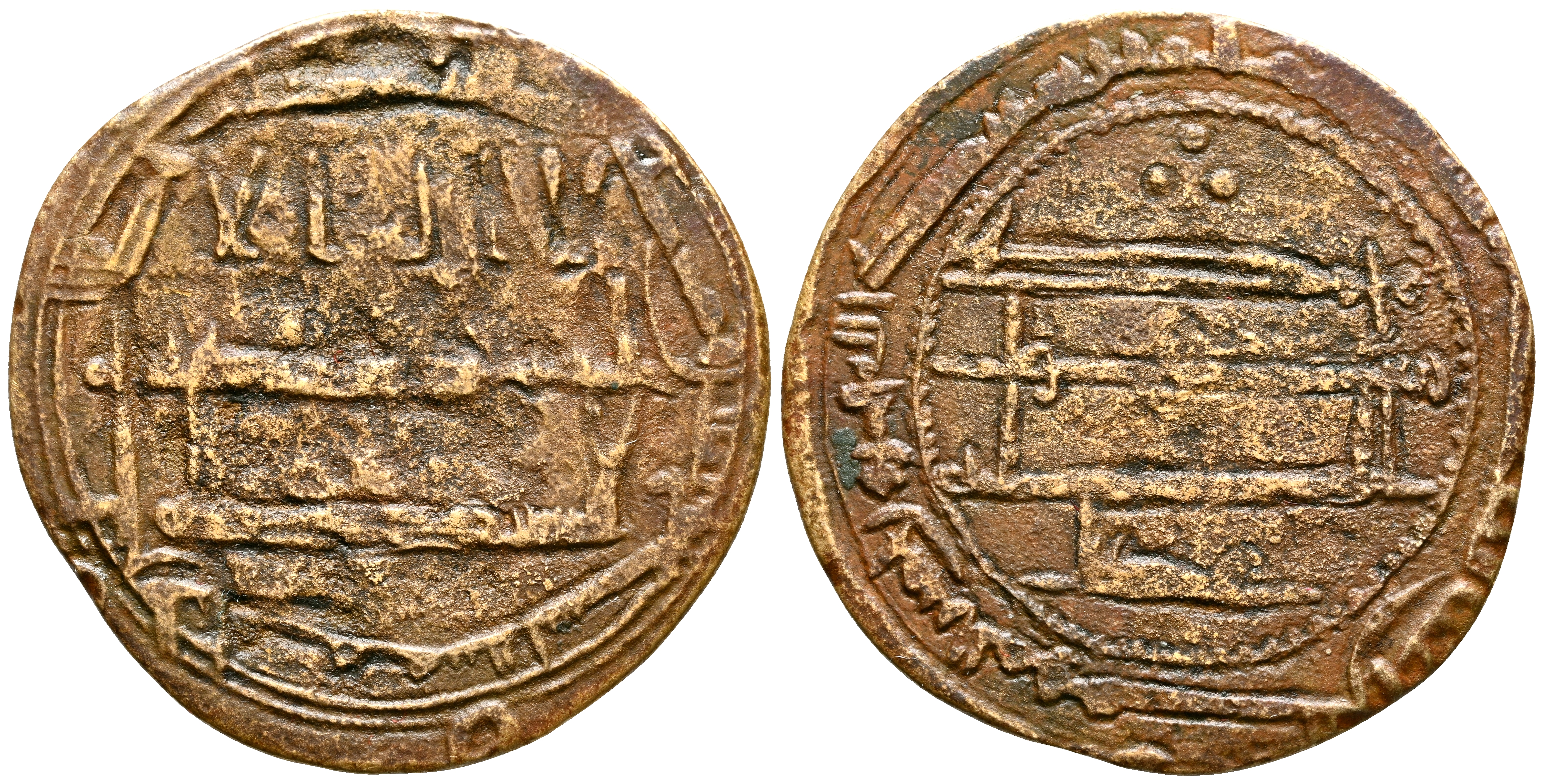 CALIFATO ABASIDA, Al-Rashid. Felús. (Ae. 2,6g/24mm). 189 H. al-Rāfiqa / الرافقة. (Lavoix 1582; Album 310). MBC. Esacasa.