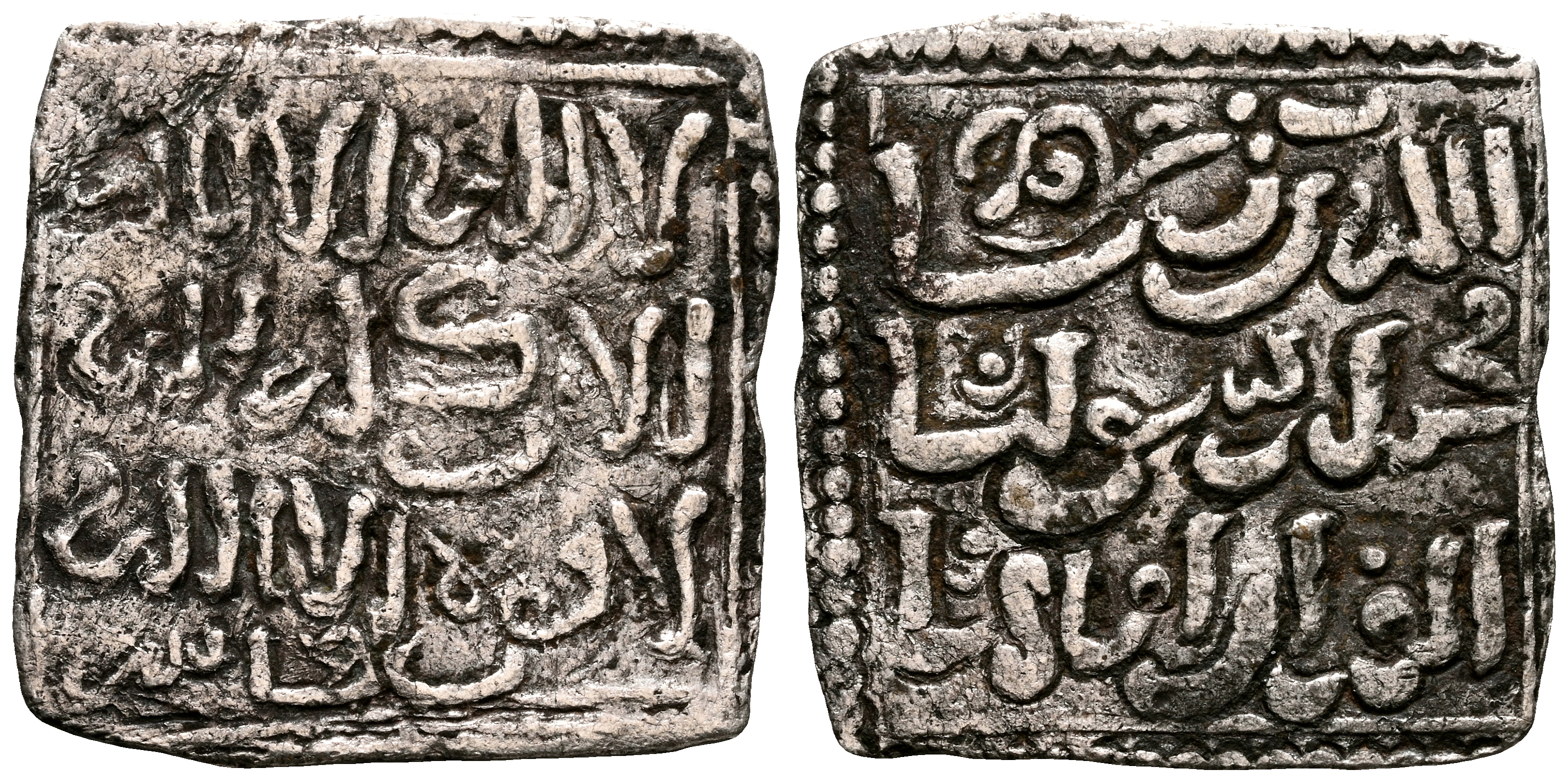 ANTI-ALMOHADES (Meriníes). Anónima. Dirham. (Ar. 0,84g/13mm). Fas (Fez) / فا س. (Hazard 1144; Hohertz 838a, catalogado como RR). En la última línea de la IIA. aparece en lugar de Al-Mahdi, la mención al Corán: القران امامنا ('El Corán es nuestro Iman '). MBC. Rara.