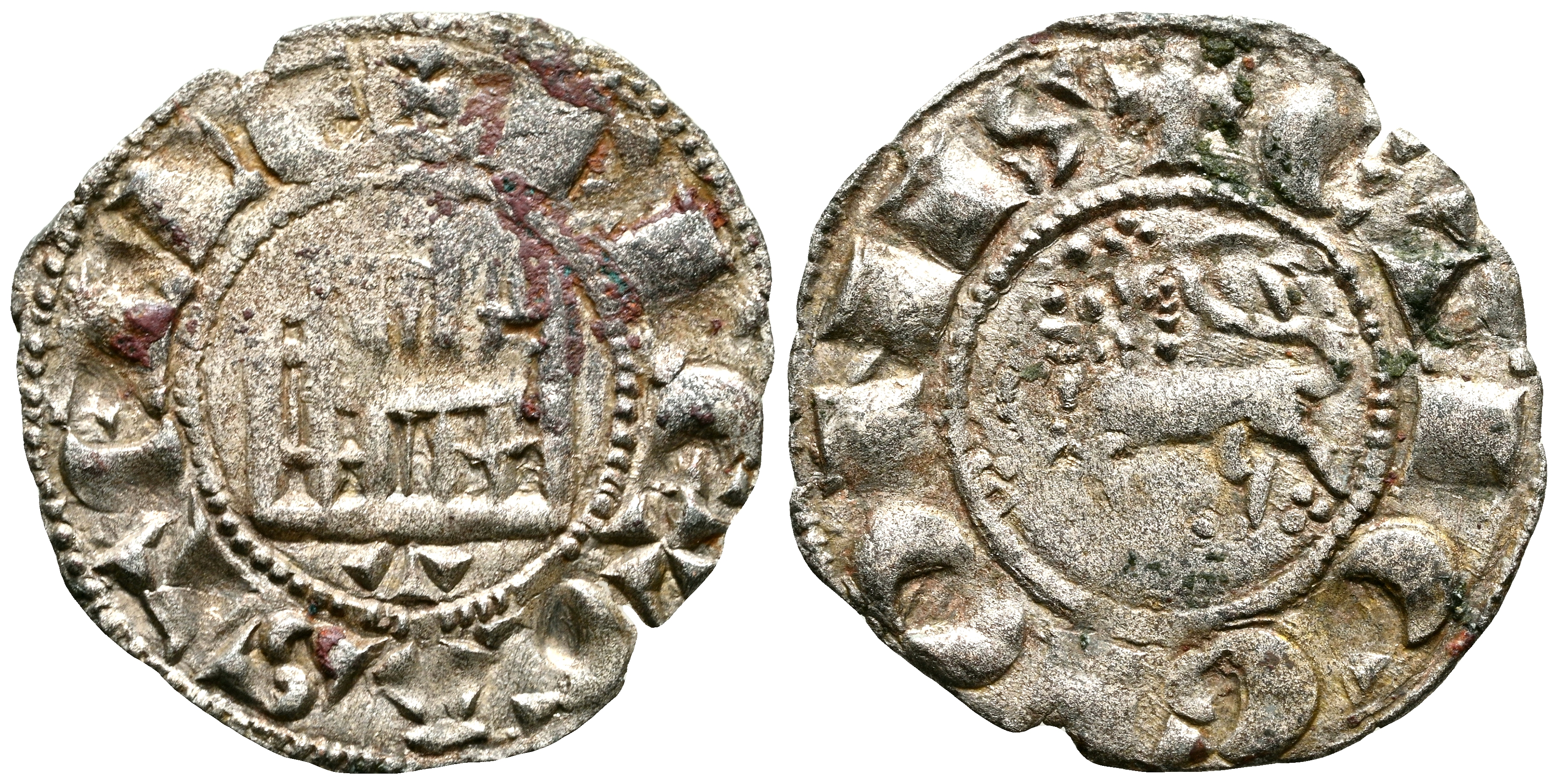 FERNANDO IV (1295-1312). Dinero. (Ve. 0,71g/19mm). Toledo. (Imperatrix F4:2.33; FAB-326, como Pepión). Anv: Castillo dentro de gráfila, debajo: T, alrededor leyenda: F REX CASTELLE. Rev: León pasando a izquierda dentro de gráfila, alrededor leyenda: ET LEGIONIS. MBC+.