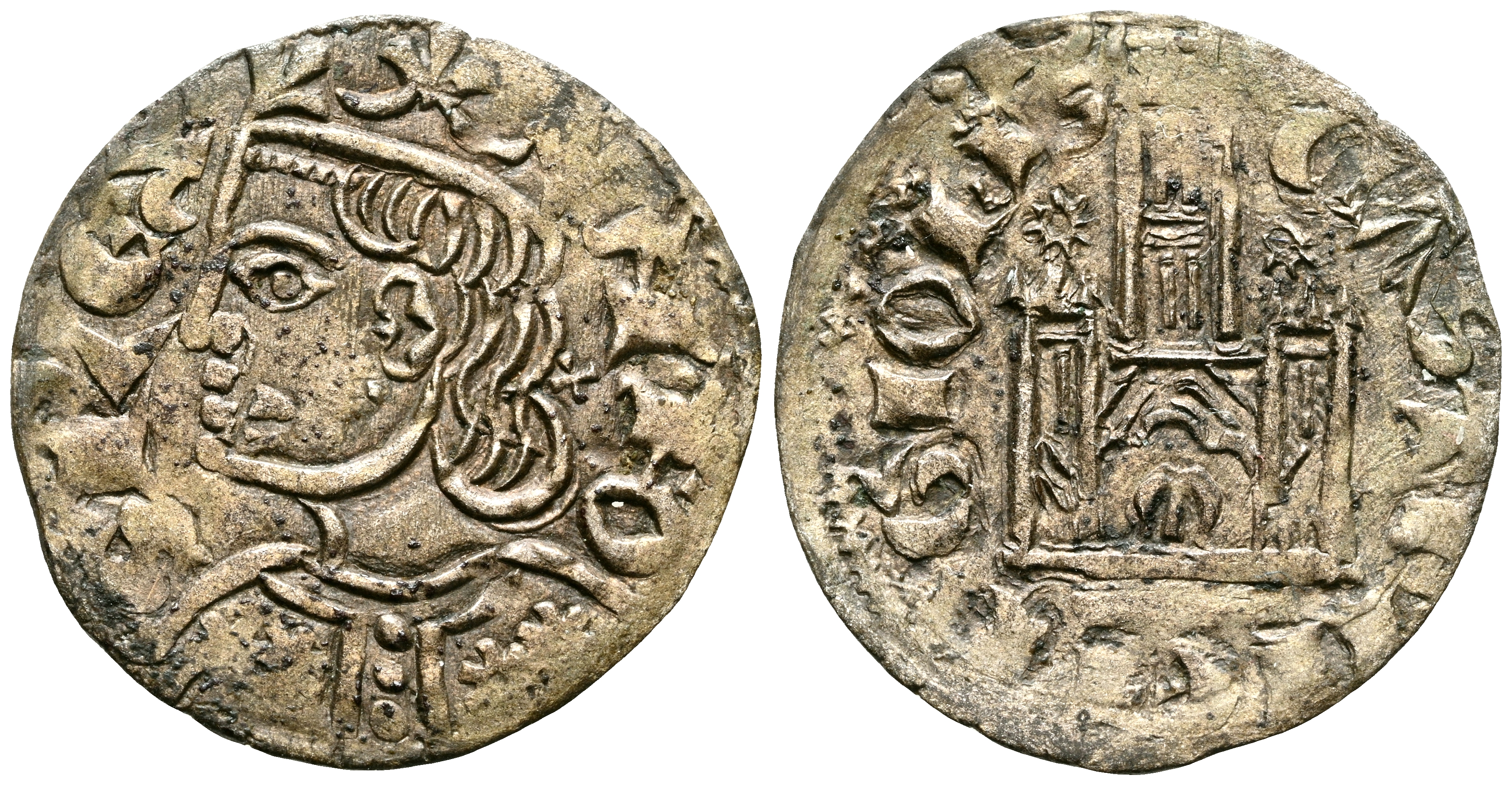 ALFONSO XI (1312-1350). Cornado. (Ve. 0,79g/19mm). Murcia. (FAB-339.2). Anv: Busto coronado de Alfonso XI a la izquierda, alrededor leyenda: ALFONS REX. Rev: Castillo, en la puerta marca de ceca: M, sobre las dos torres del castillo anillos estrellados, alrededor leyenda: CASTELLE ET LEGIONIS. MBC+. Acuñación ligeramente floja.