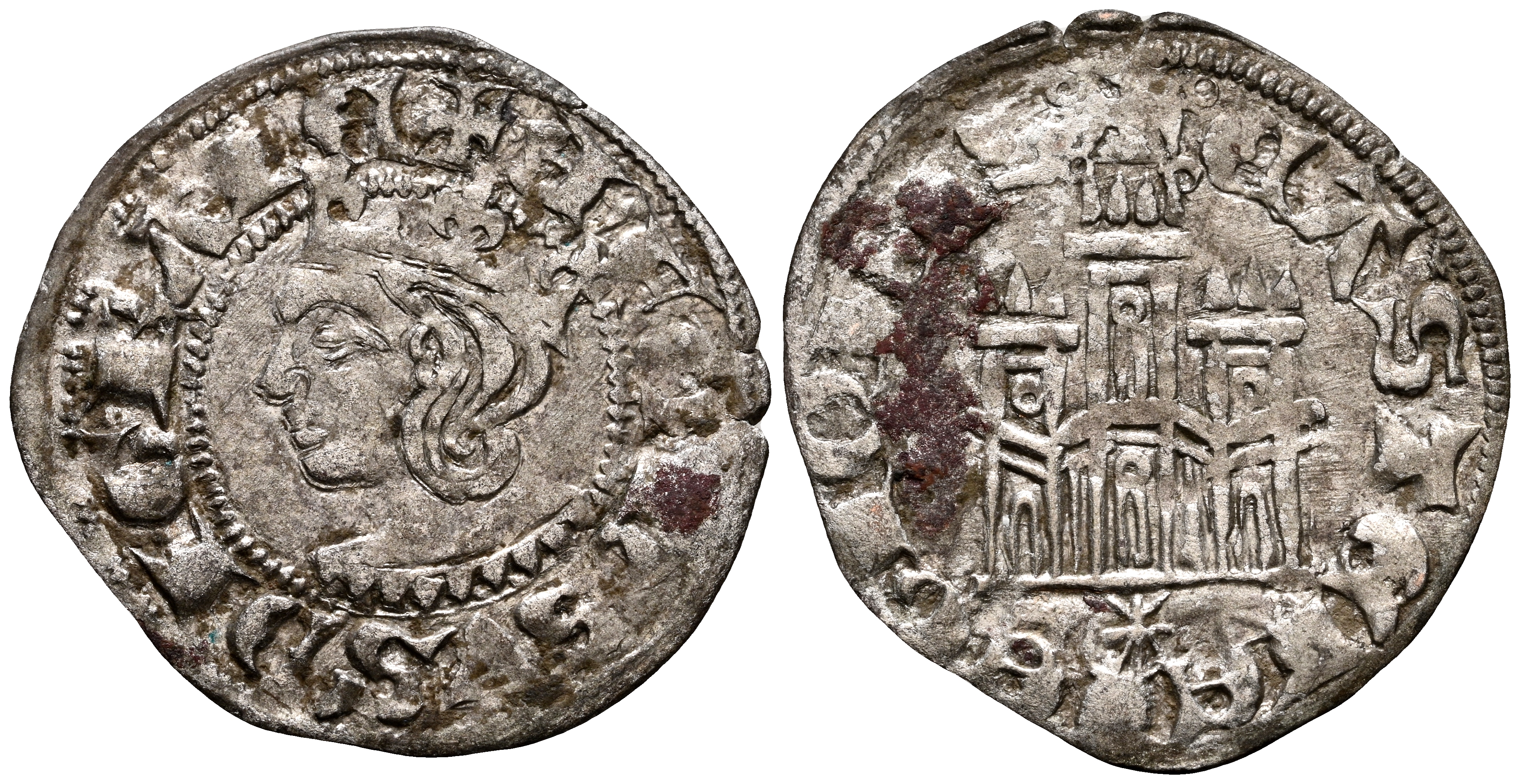 ALFONSO XI (1312-1350). Cornado. (Ve. 0,81g/21mm). Coruña. (MMM A11:3.16, FAB-343.1). Anv: Busto coronado de Alfonso XI a izquierda dentro de gráfila de puntos, alrededor leyenda: ALFONSVS REX. Rev: Castillo, debajo venera estrellada, alrededor leyenda: CASTELLE ET LEGIONIS. MBC+. Oxidaciones en reverso.
