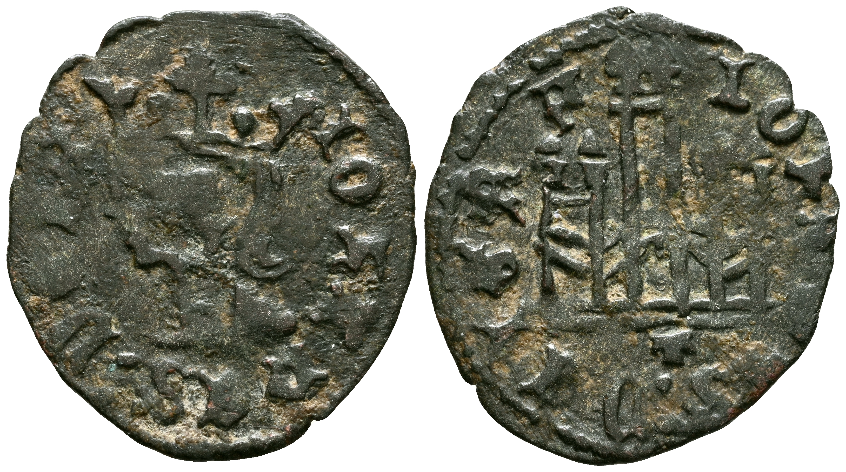 JUAN II (1406-1454). Cornado. (Ve. 0,89g/18mm). Toledo. (FAB-634). Anv: Busto coronado de Juan II a izquierda, alrededor leyenda: IOANES DEI GRA. Rev: Castillo, debajo T, alrededor leyenda: IOANES DEI GRACI. MBC-.