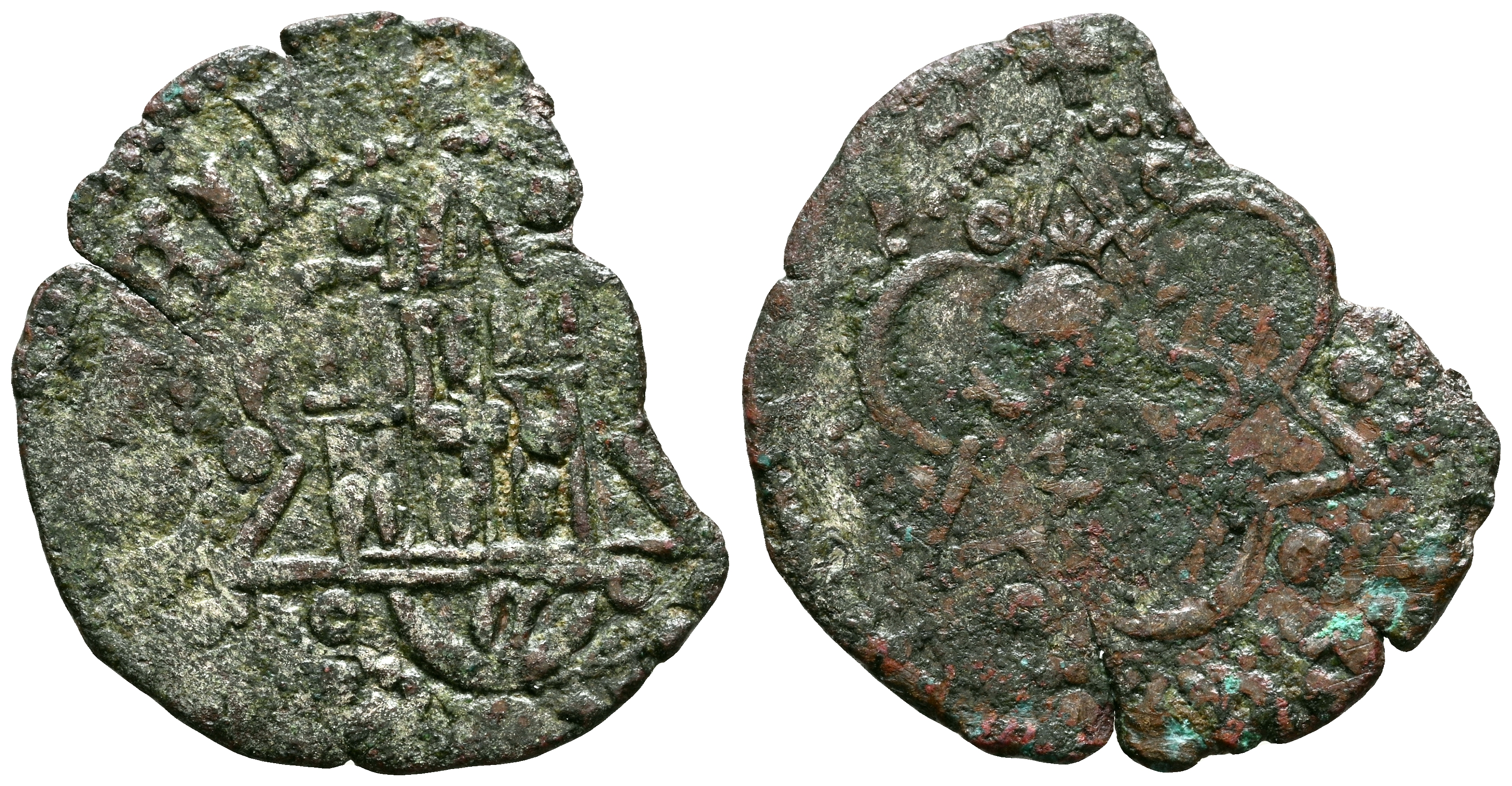 ENRIQUE IV (1454-1474). 1/2 Blanca. (Ve. 0,66g/18mm). Córdoba. (Momeca 76.C2, como Cuenca; FAB-826). Anv: Castillo, debajo C, todo dentro de gráfila mixta de ángulos y arcos, alrededor leyenda: ENRICVS REX CASTELL. Rev: León coronado y rampante a izquierda dentro de gráfila mixta de ángulos y arcos, alrededor leyenda: ENRICVS REX CASTEL. BC+/BC-. Cospel faltado. Muy escasa.