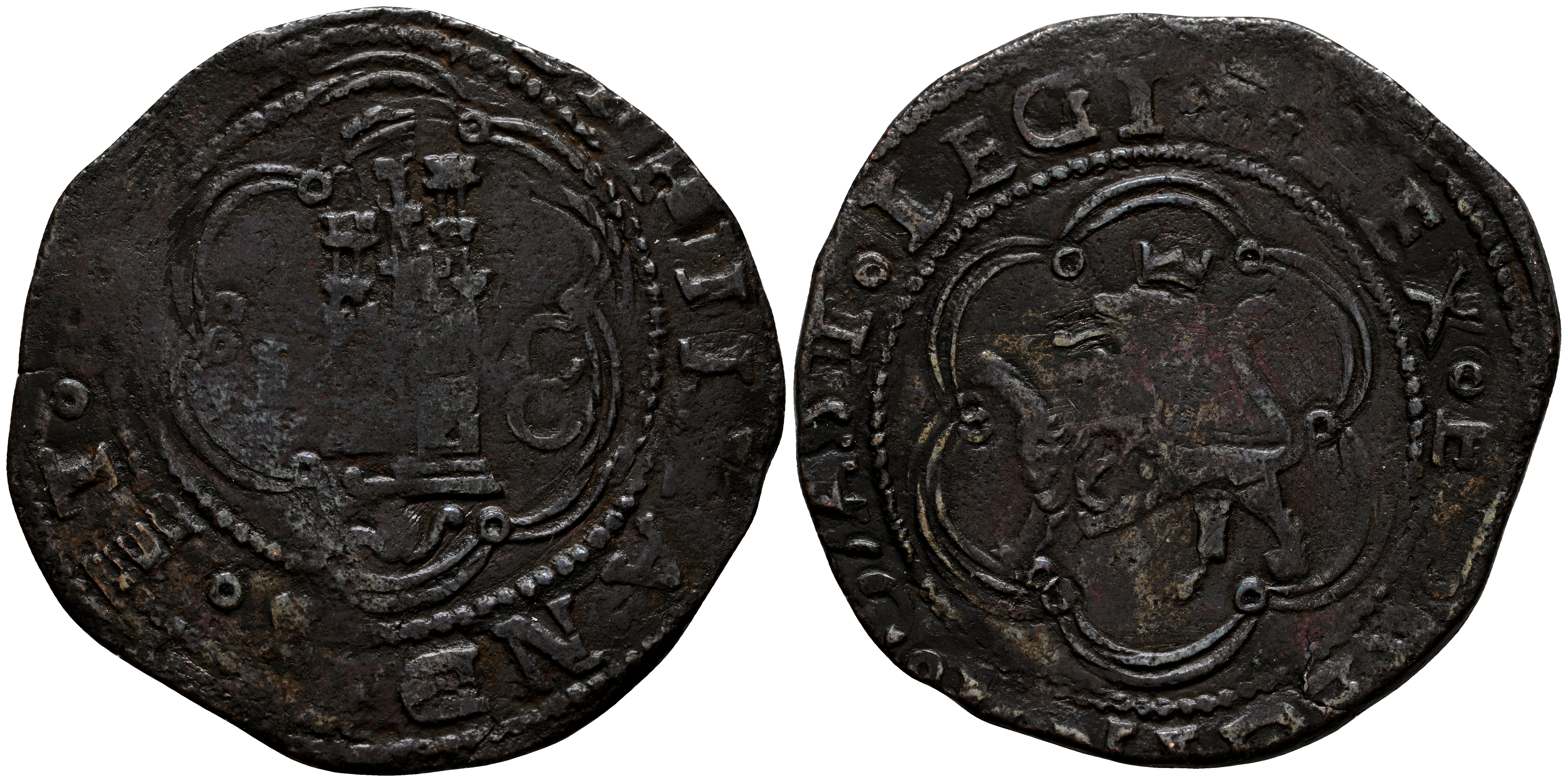REYES CATOLICOS (1471-1504). 4 Maravedís. (Ae. 6,48g/31mm). S/D. Cuenca. (Cal-2019-135). Armiño a izquierda y doble C a derecha. MBC-.