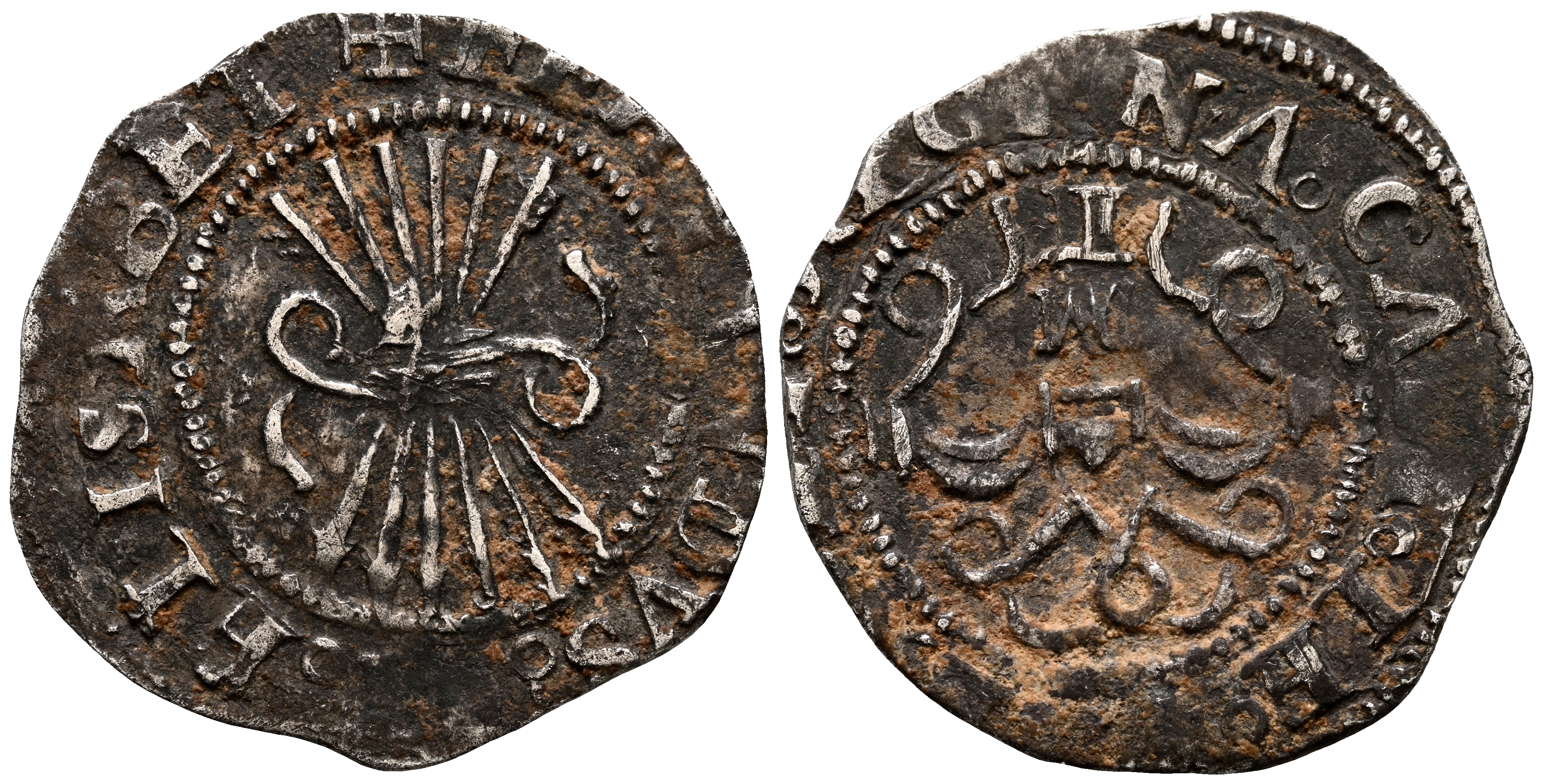 REYES CATOLICOS (1474-1504). 1/2 Real (Ar. 1,69g/15mm). S/D (Posterior a la Pragmática). Toledo M. (Cal-2019-288). BC+.
