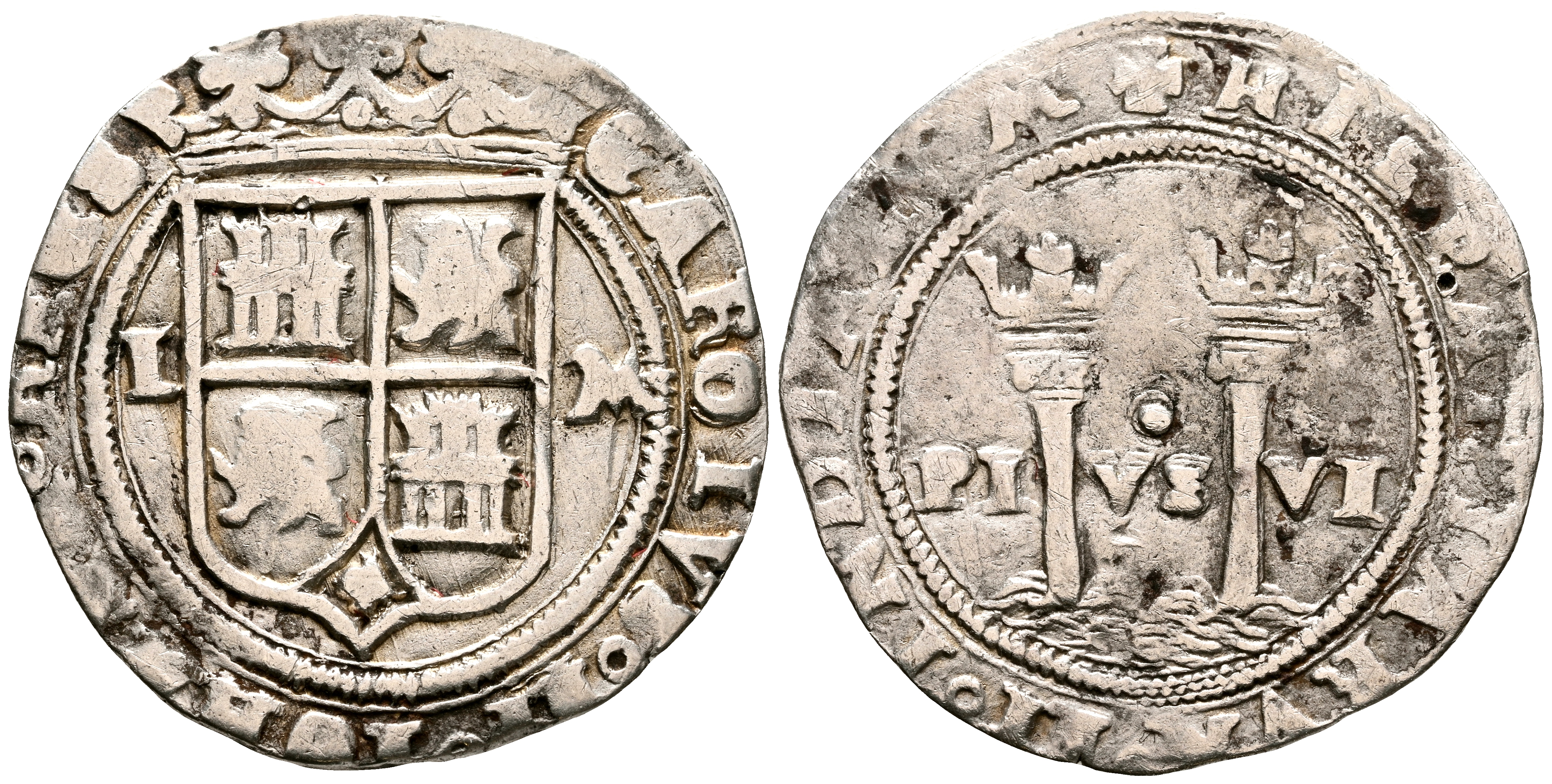 JUANA Y CARLOS (1504-1555). 1 Real. (Ar. 3,20g/24mm). S/D (1554-1556). Mexico L-M. (Cal-2019-73). MBC.