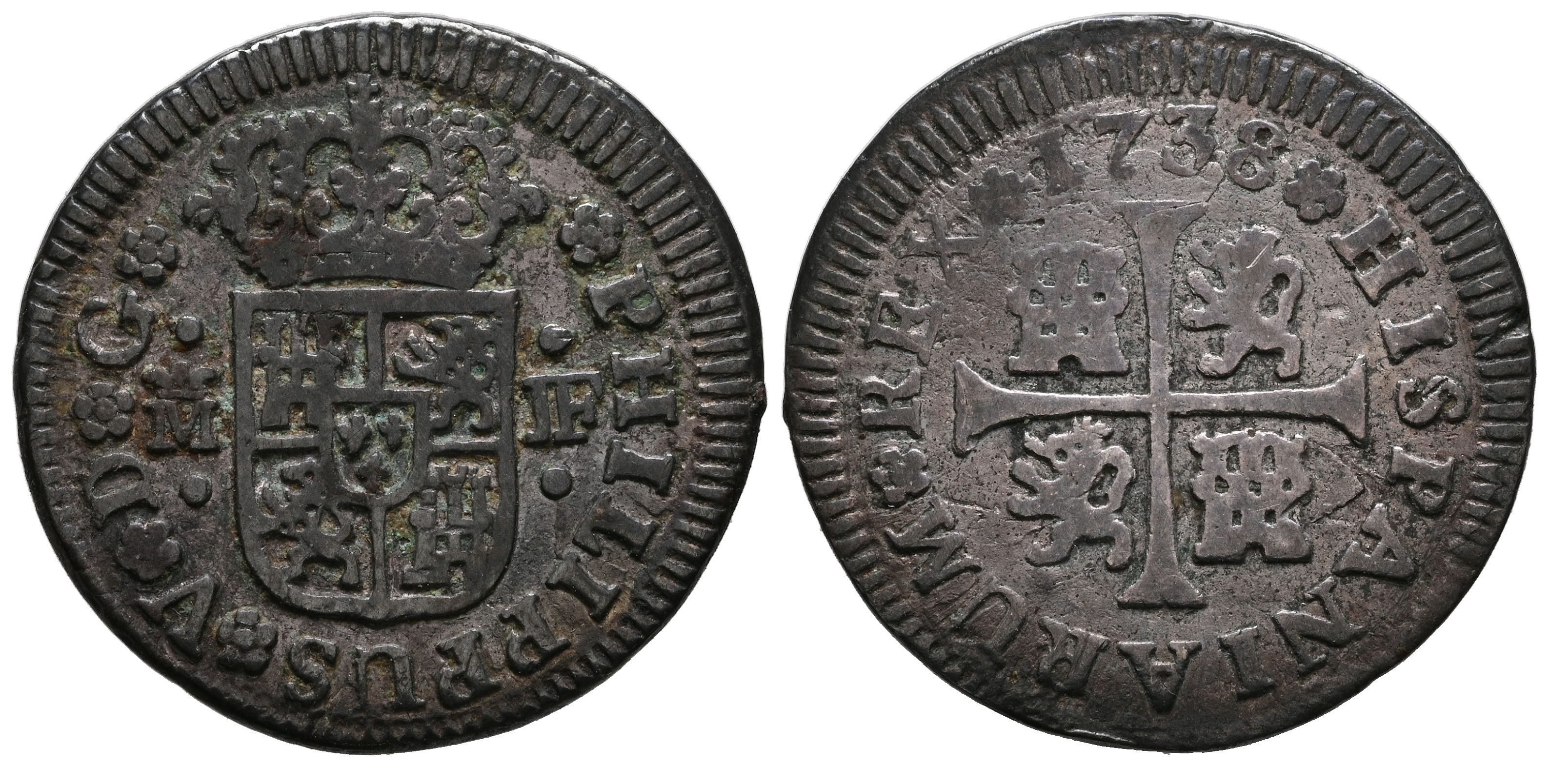 FELIPE V (1700-1746). 1/2 Real. (Ar. 1,47g/16mm). 1738. Madrid JF. (Cal-2019-185). MBC-.
