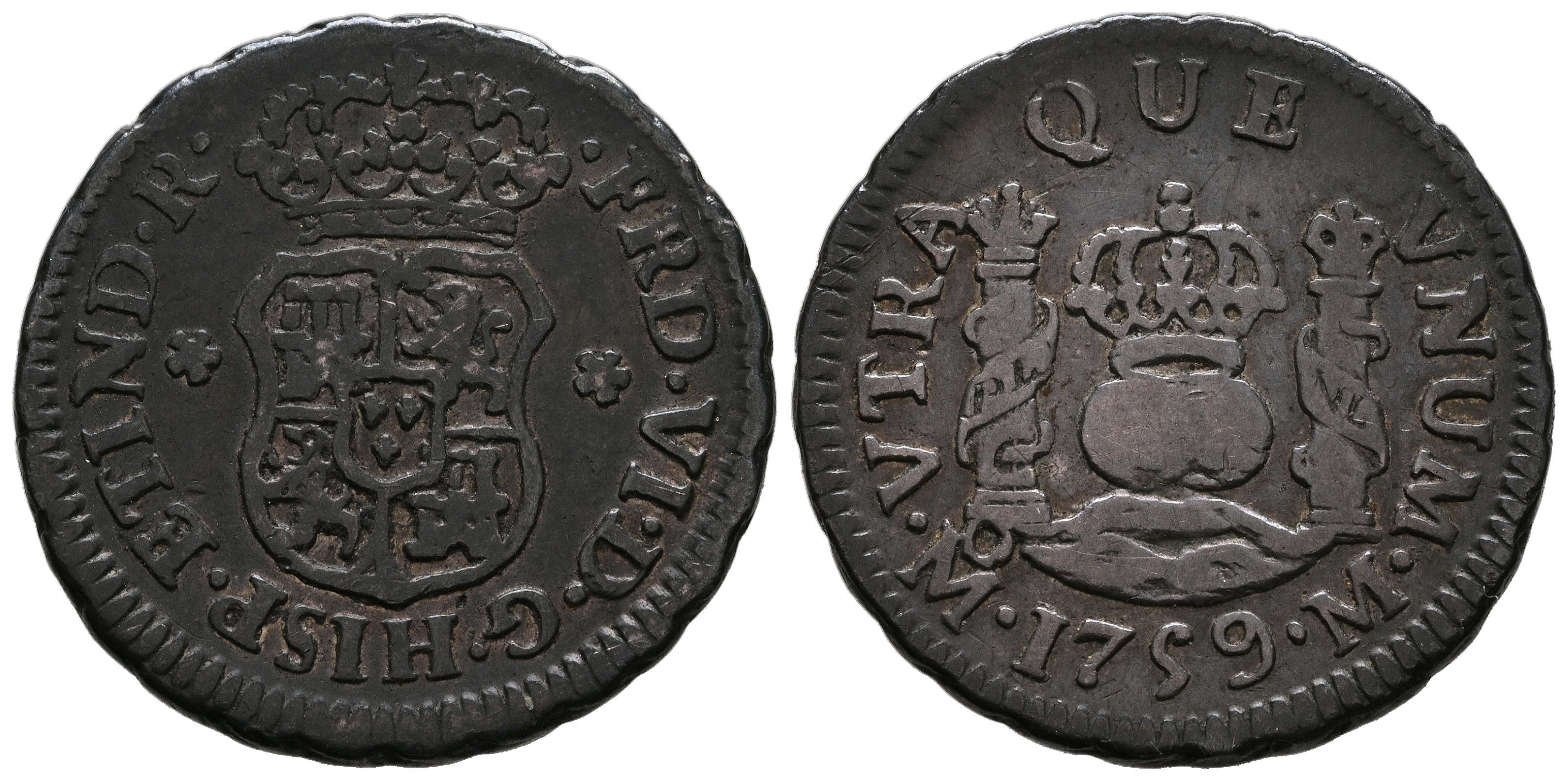 FERNANDO VI (1746-1759). 1/2 Real. (Ar. 1,63g/16mm). 1759. México M. (Cal-2019-98). MBC+. Preciosa pátina.