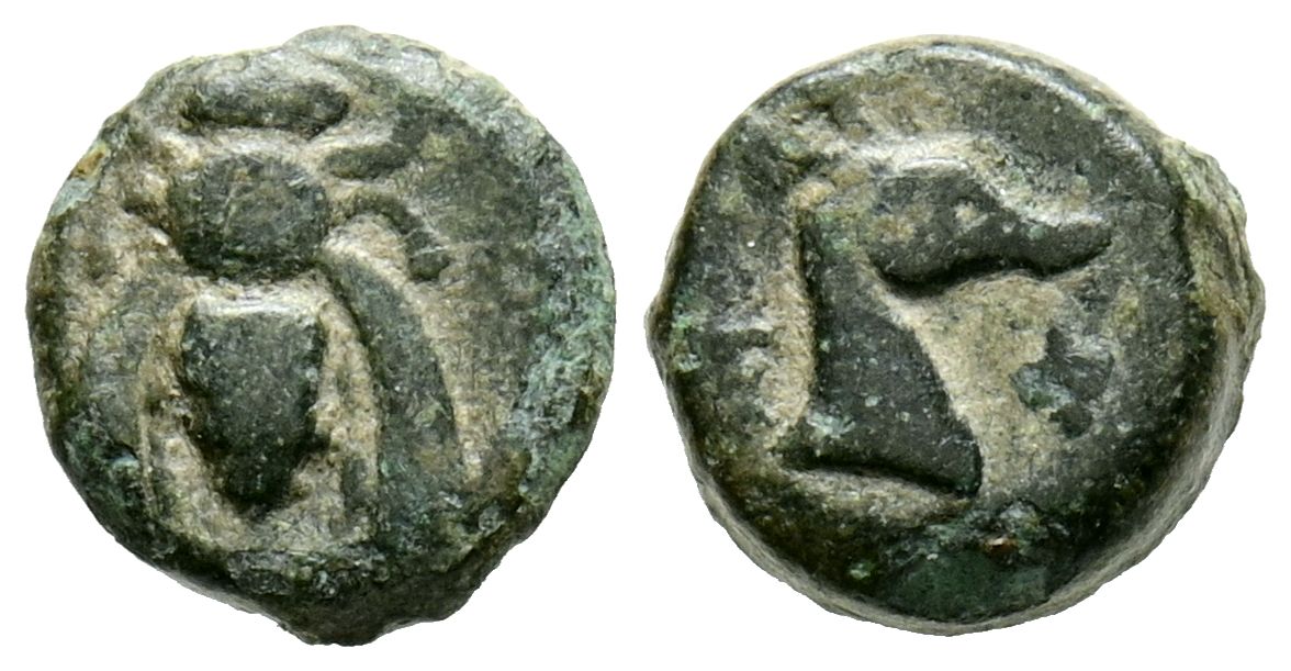 JONIA, Éfesos. Ae8. (Ae. 0,63g/8mm). 390-200 a.C. (SNG Kayhan 147-188). Anv: Abeja vista desde arriba. Rev: Cabeza de ciervo a derecha entre: Ε-Φ. MBC.
