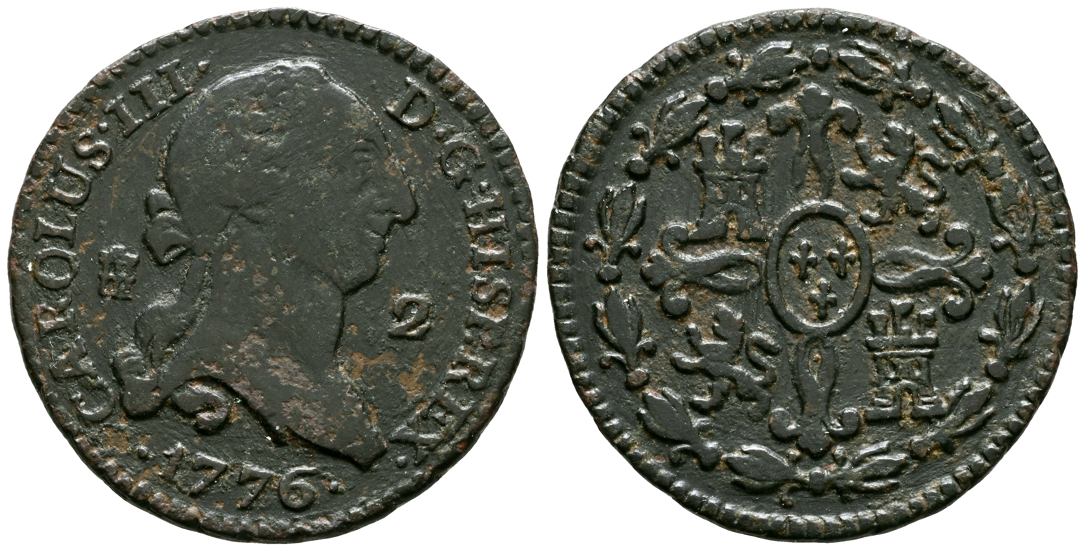 CARLOS III (1759-1788). 2 Maravedís. (Ae. 2,34g/19mm). 1776. Segovia. (Cal-2019-40). MBC.