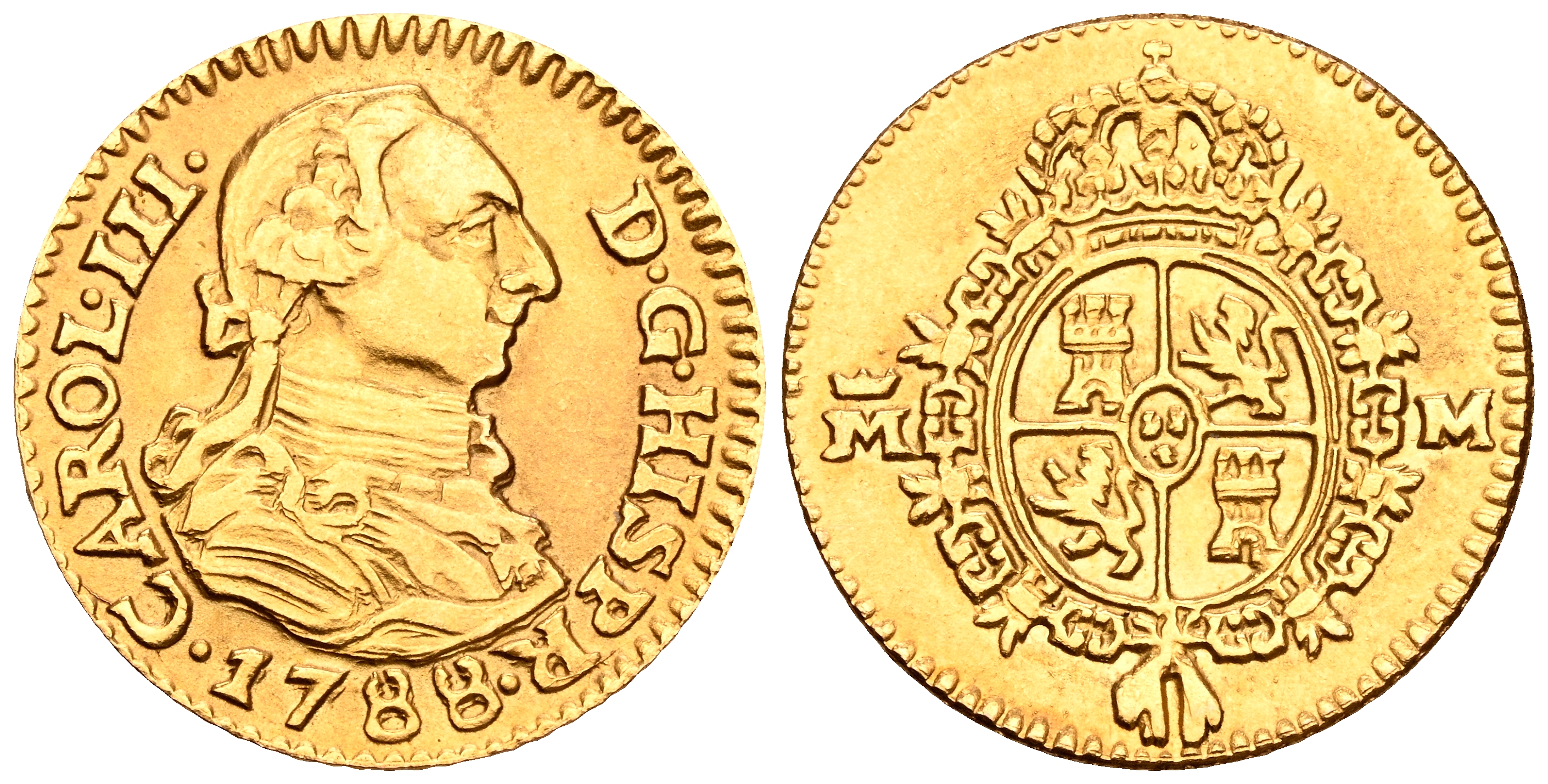 CARLOS III (1759-1788). 1/2 Escudo (Au. 1,69g/15mm). 1788. Madrid M. Réplica de joyería. Oro 0,700 milésimas. SC.