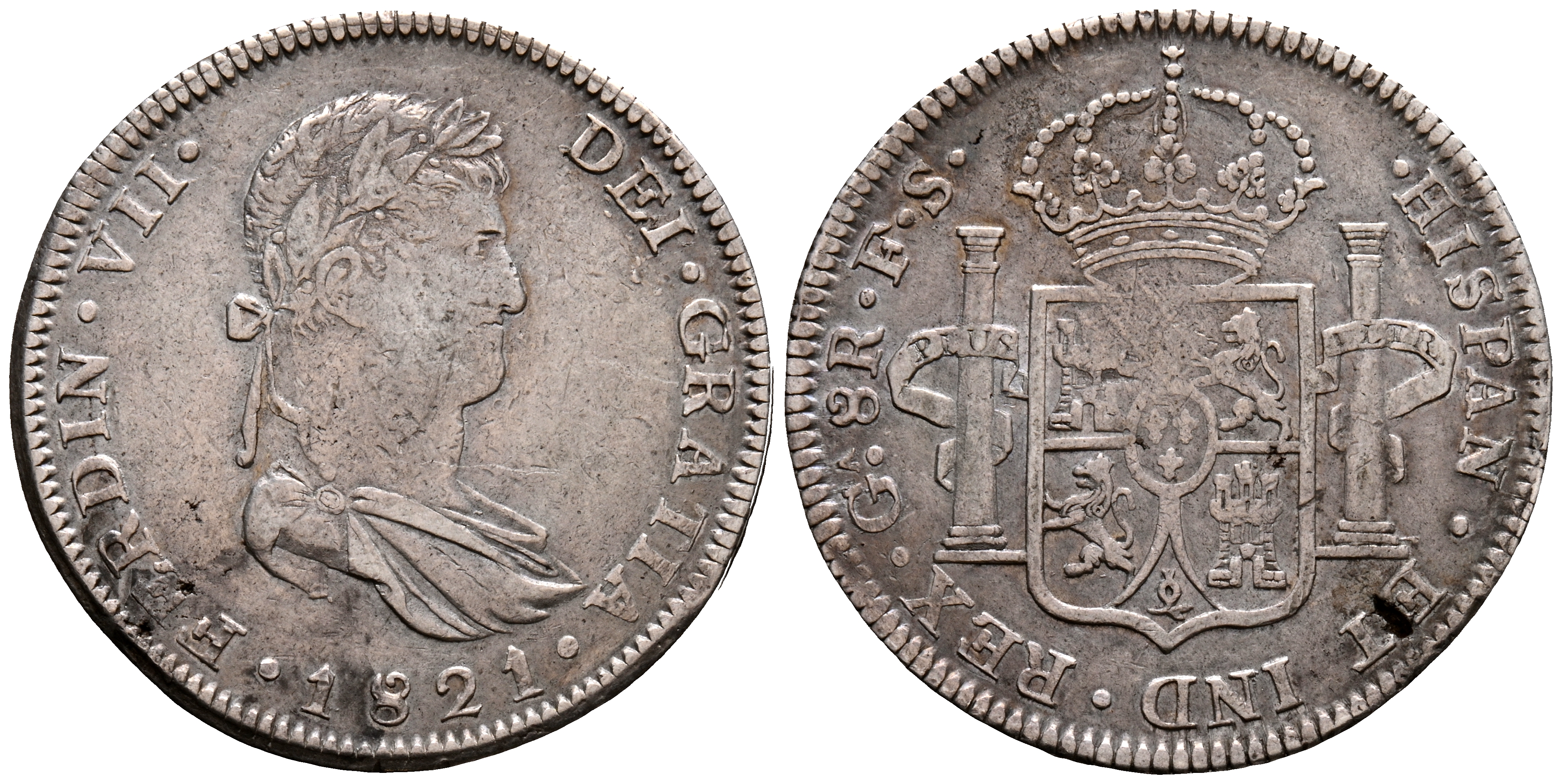 FERNANDO VII (1808-1833). 8 Reales. (Ar. 26,89g/41mm). 1821. Guadalajara FS. (Cal-2019-1210). MBC. Buena pieza para este tipo de acuñación.