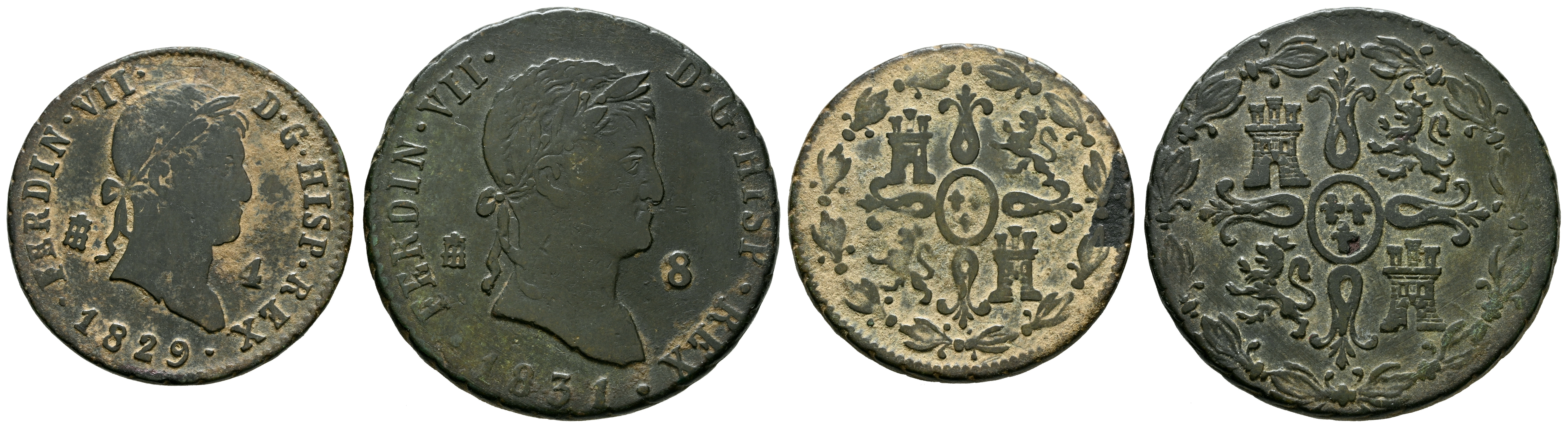 FERNANDO VII (1808-1833). Pareja de 4 y 8 maravedís acuñados en 1829 y 1831 en Segovia. (Cal-2019-183/236). Diferentes estados de conservación. A EXAMINAR.