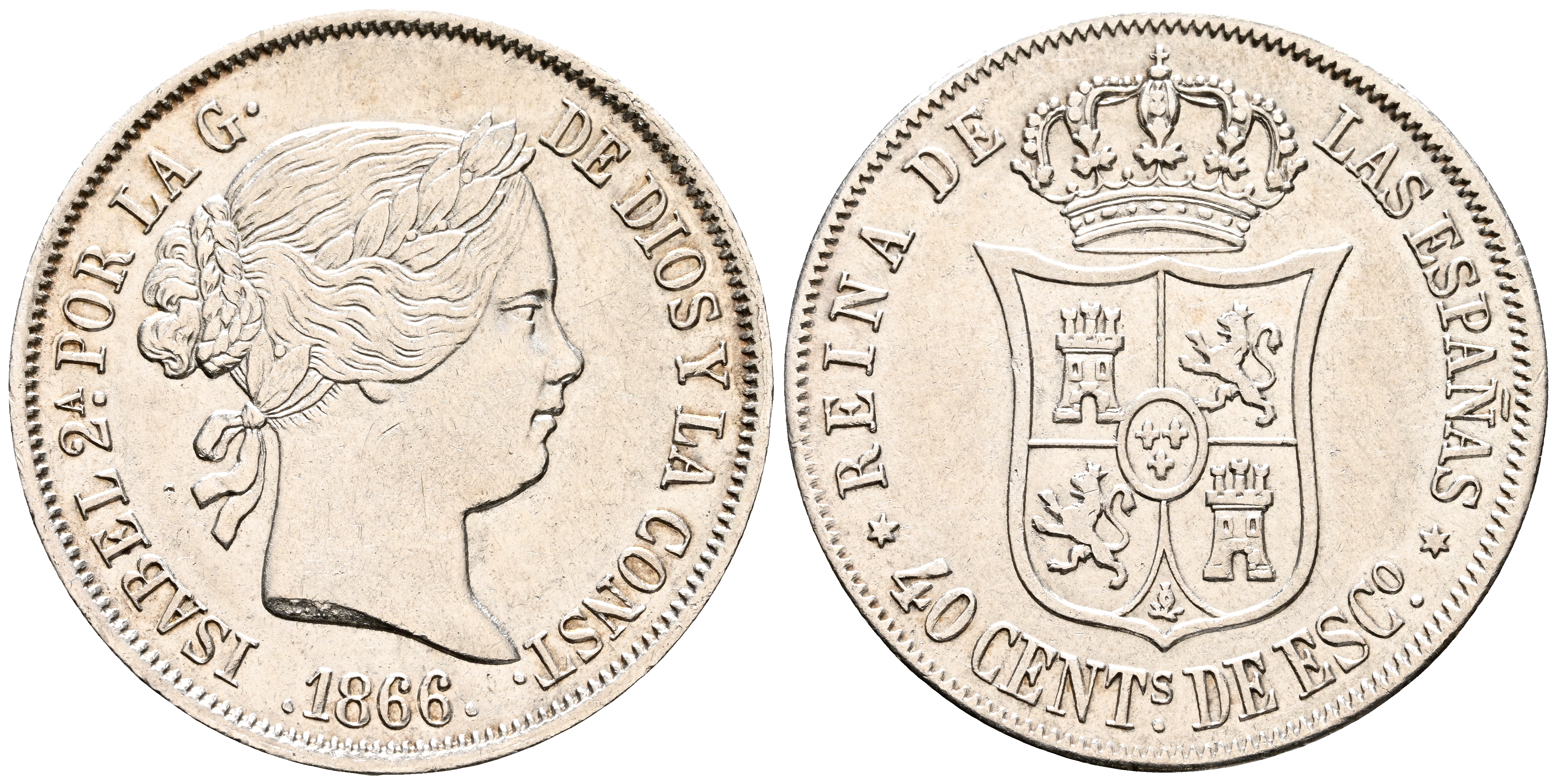 ISABEL II (1833-1868). 40 Céntimos de Escudo. (Ar. 4,71g/23mm). 1866. Madrid. (Cal-2019-501). EBC. Rayitas de limpieza