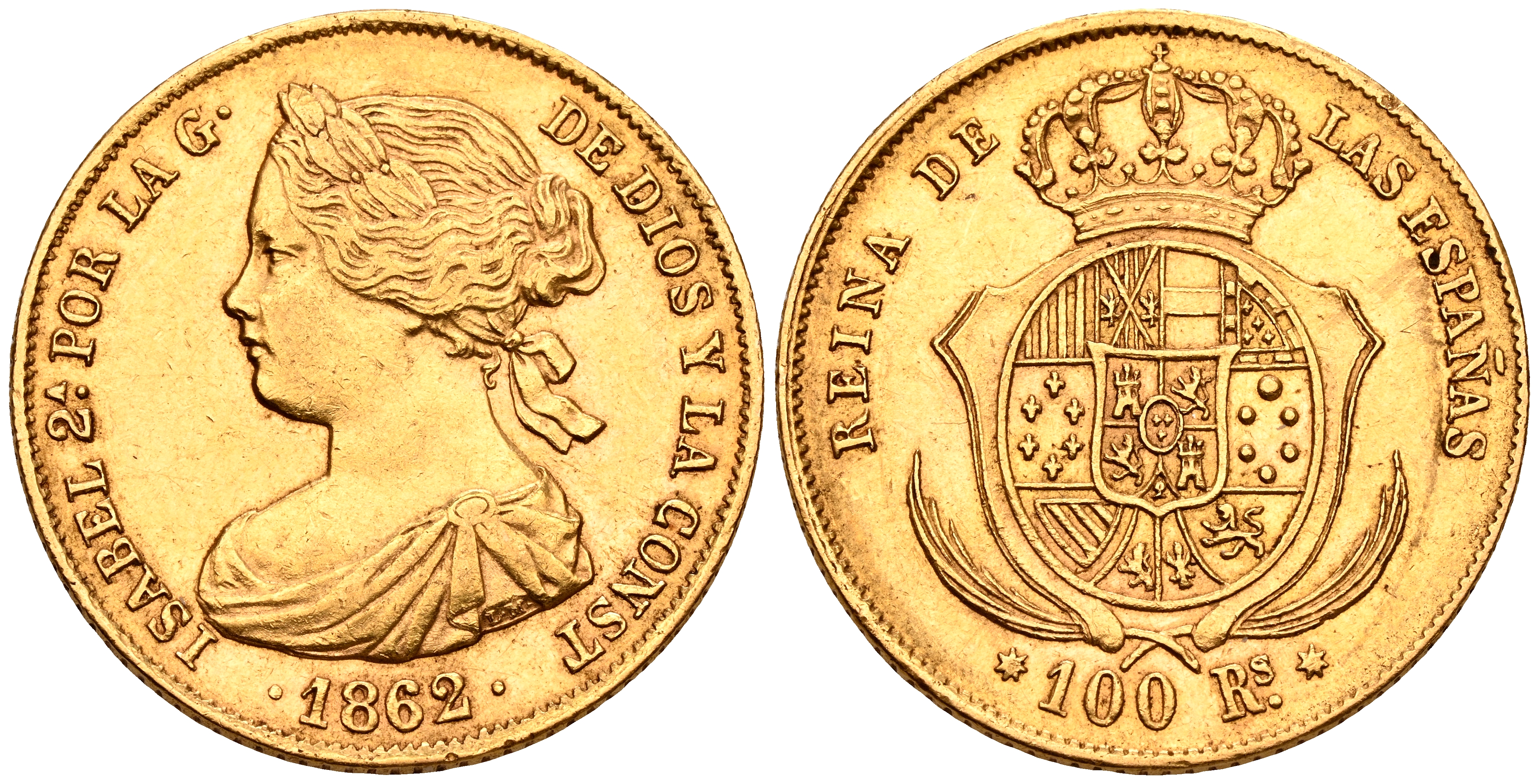 ISABEL II (1833-1868). 100 Reales. (Au. 8,34g/22mm). 1862. Sevilla. (Cal-2019-805). EBC-.