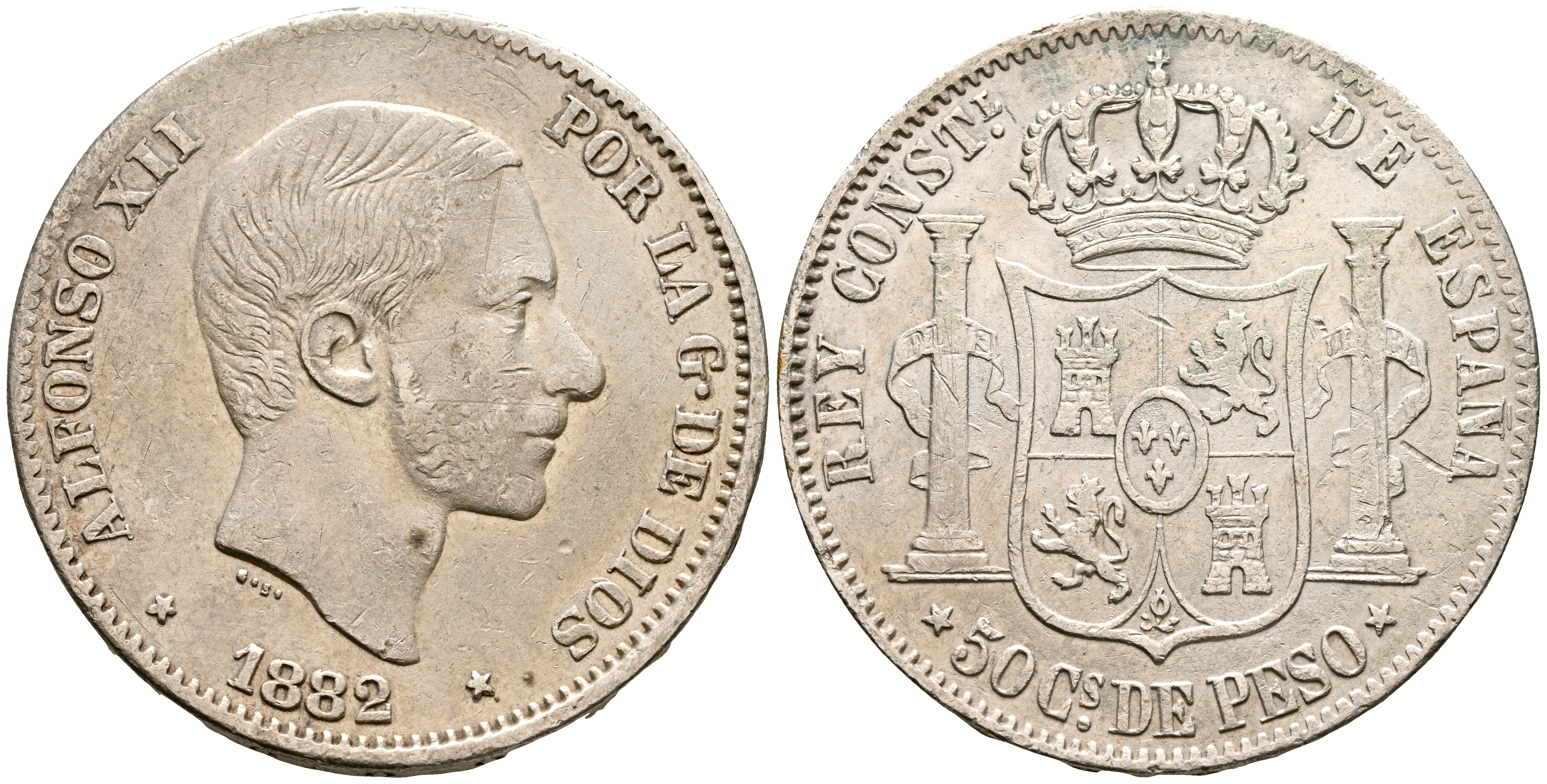 ALFONSO XII (1874-1885). 50 Centavos. (Ar. 12,88g/30mm). 1882. Manila. (Cal-2019-118). MBC.