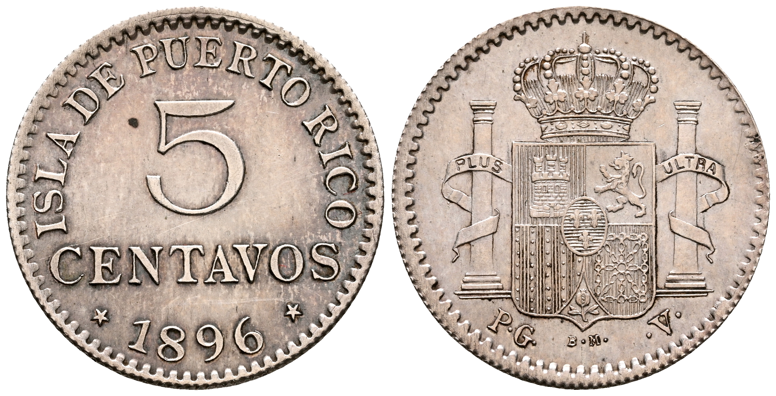 ALFONSO XIII (1885-1931). 5 Centavos. (Ar. 1,13g/16mm). 1896. Puerto Rico PGV. (Cal-2019-124). MBC+. Interesante ejemplar.