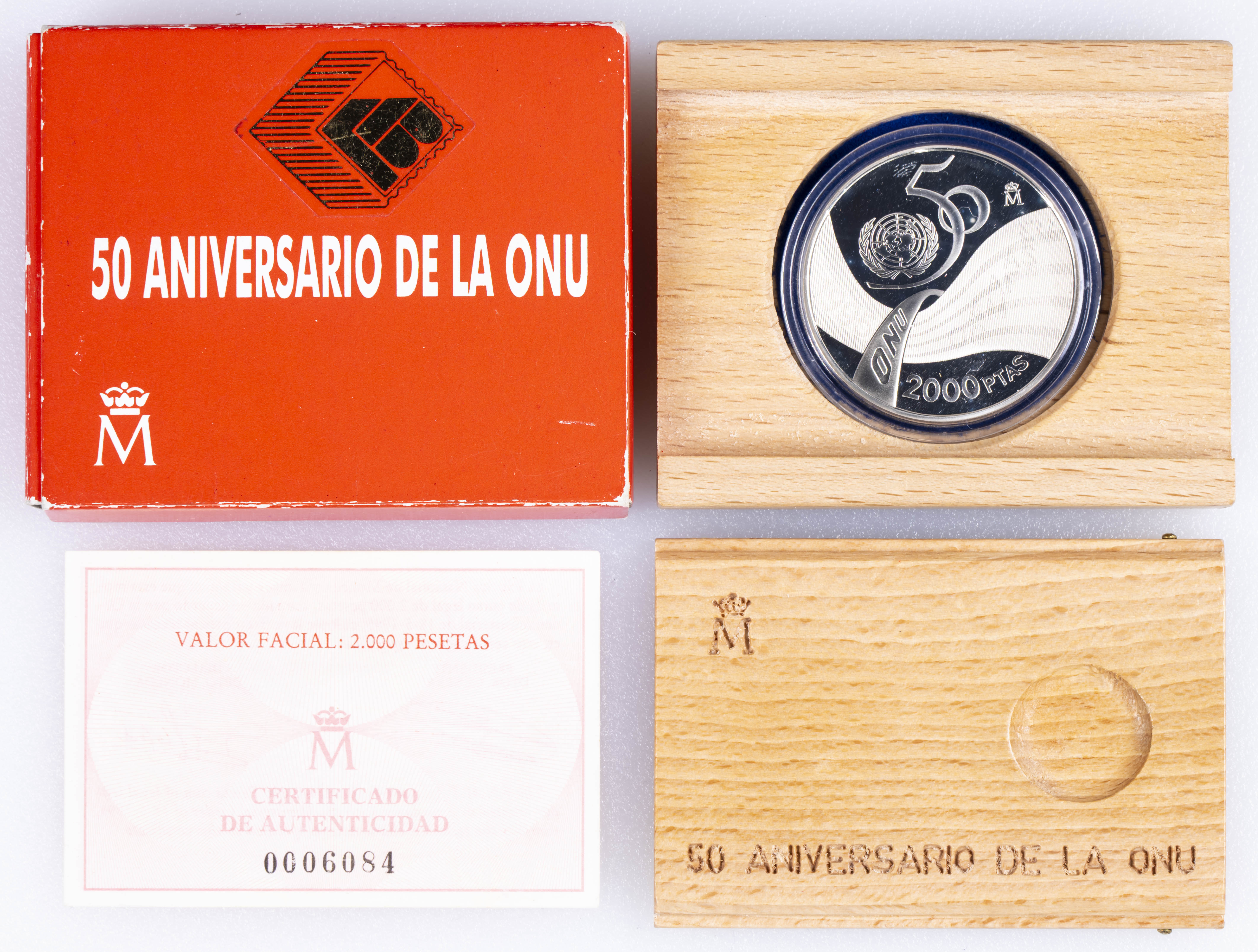JUAN CARLOS I (1975-2014). 2000 Pesetas. (Ar. 27,00g/40mm). 1995. FNMT. 50 Aniversario de la ONU. PROOF. Incluye estuche original y certificado de autenticidad.