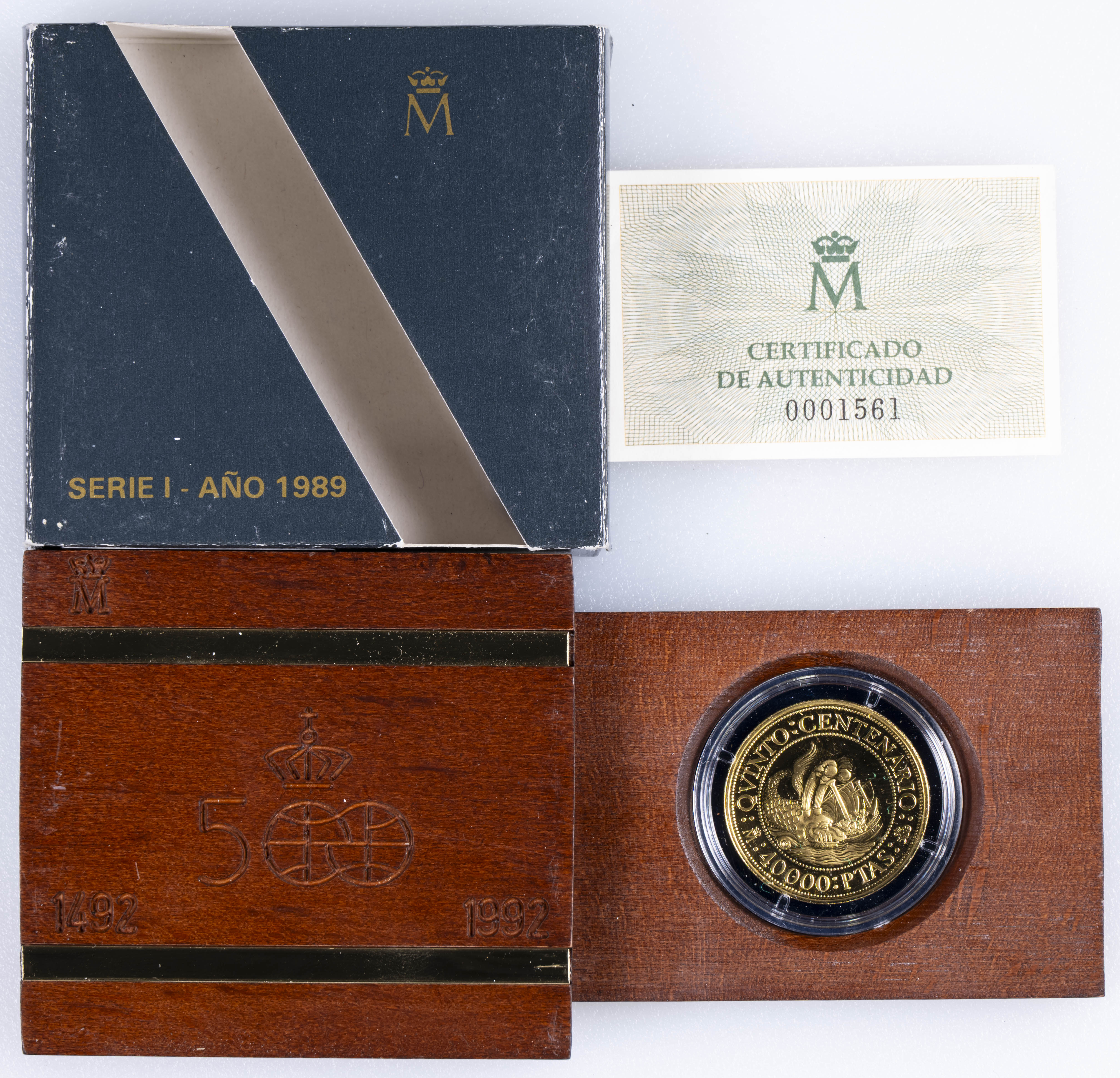 JUAN CARLOS I (1975-2014). 40.000 Pesetas. (Au. 13,50g/30mm). Quinto Centenario. Serie I. 1989. FNMT. PROOF. Presentada en estuche oficial y con certificado de autenticidad.