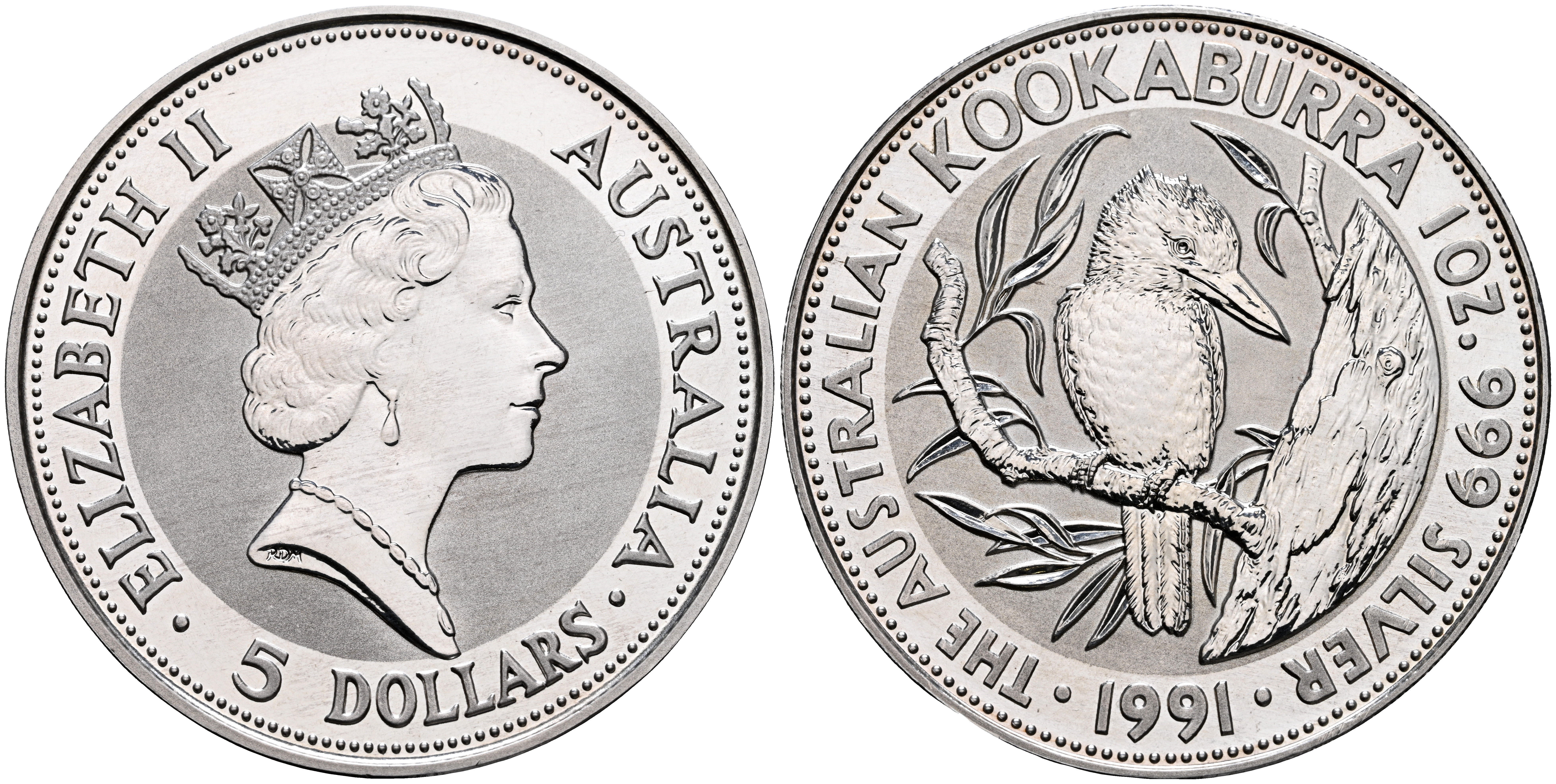 AUSTRALIA. 5 Dollars. (Ar. 31,48g/40mm). 1991. Kookaburra. (Km#138). SC.