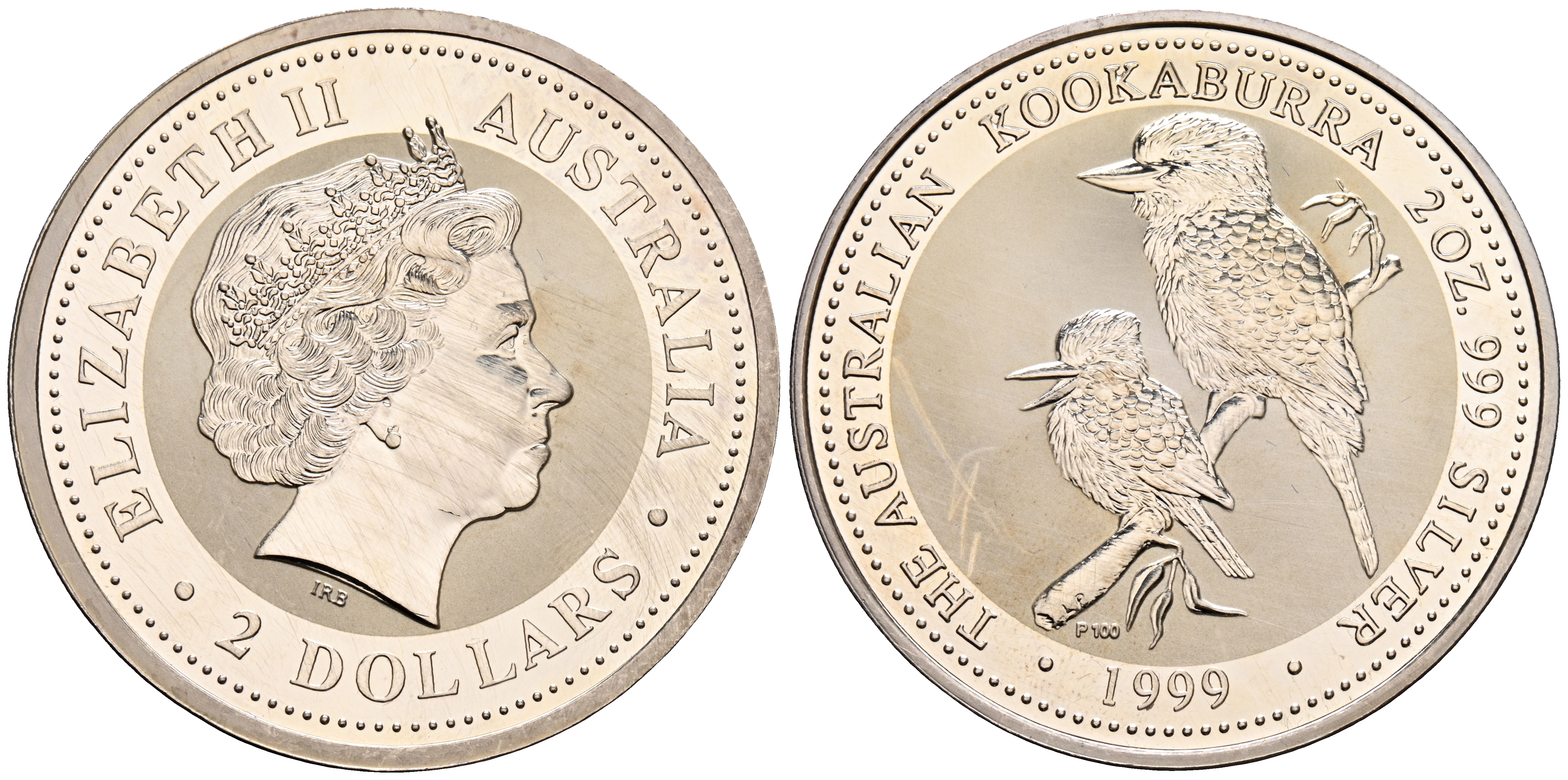 AUSTRALIA. 2 Dollars. (Ar. 62,61g/50mm). 1999. Kookaburra. (Km#445). EBC. Rayitas.