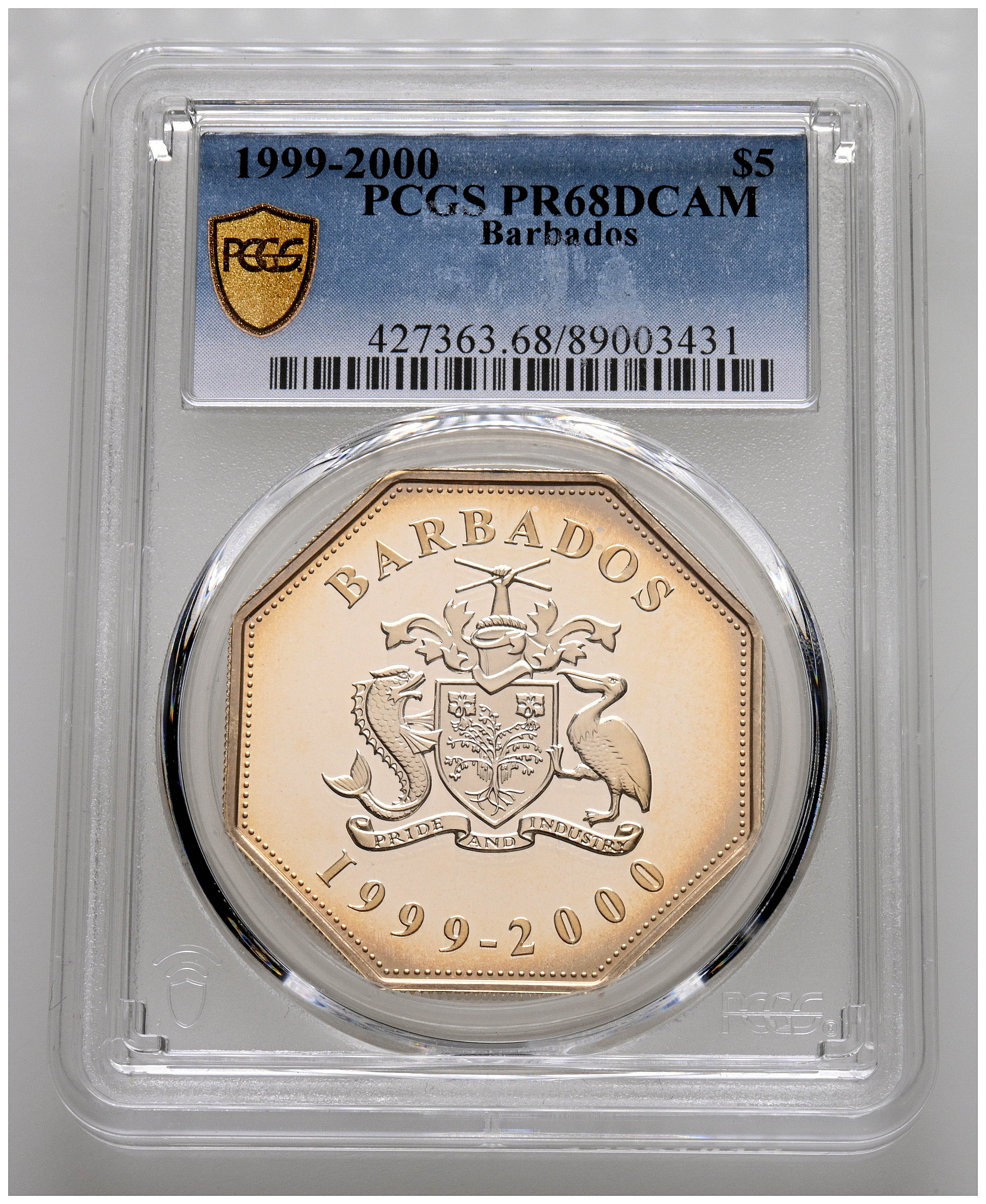 BARBADOS. 5 Dollars. (Ar. 28,26g/39mm)*. 1999. Millennium. (Km#67). Encapsulada por PCGS PR 68DCAM. *Peso y medidas teóricos.