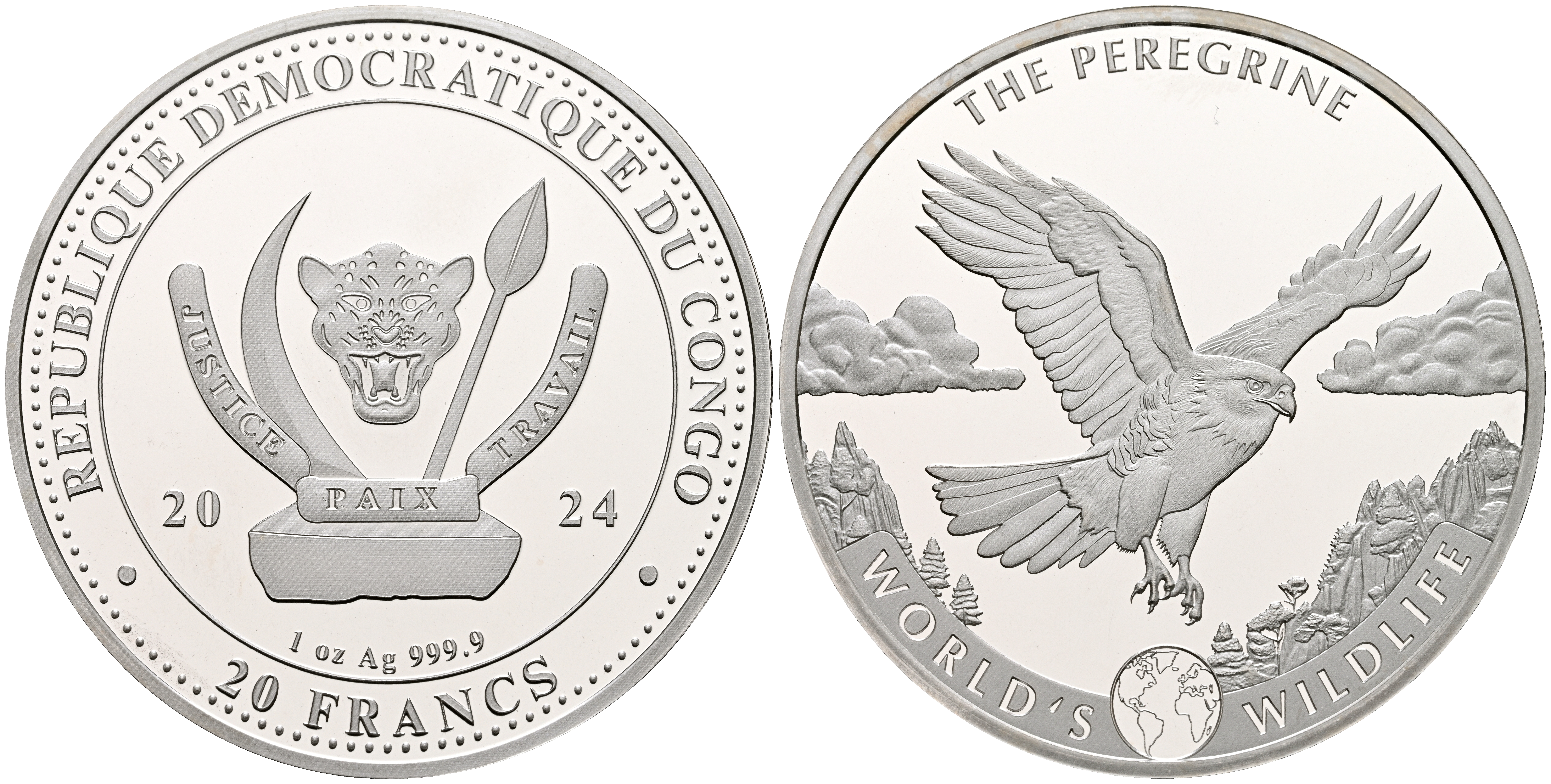 CONGO. 20 Francs. (Ar. 31,19g/39mm). 2024. Vida Silvestre del Mundo: El Peregrino. (Km#539). PROOF.