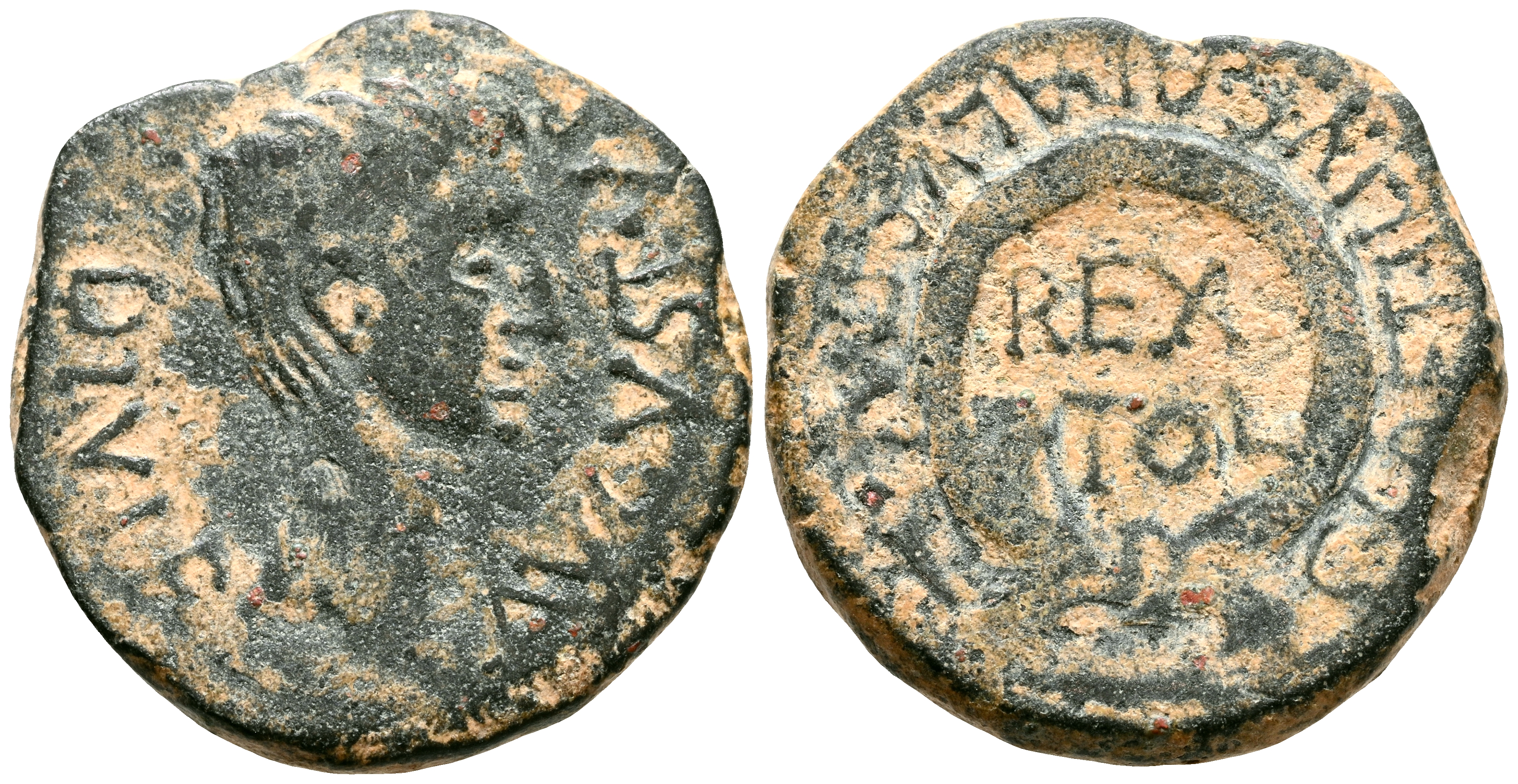 CARTAGONOVA (Cartagena, Murcia). Semis. (Ae. 5,14g/20mm). 27 a.C.-14 d.C. (FAB-590). Anv: Cabeza de Augusto a derecha, alrededor leyenda: AVGVSTVS DIVI F. Rev: Leyenda: REX/PTOL, dentro de láurea, alrededor leyenda: C LAETILIVS APALVS II V Q. MBC-.