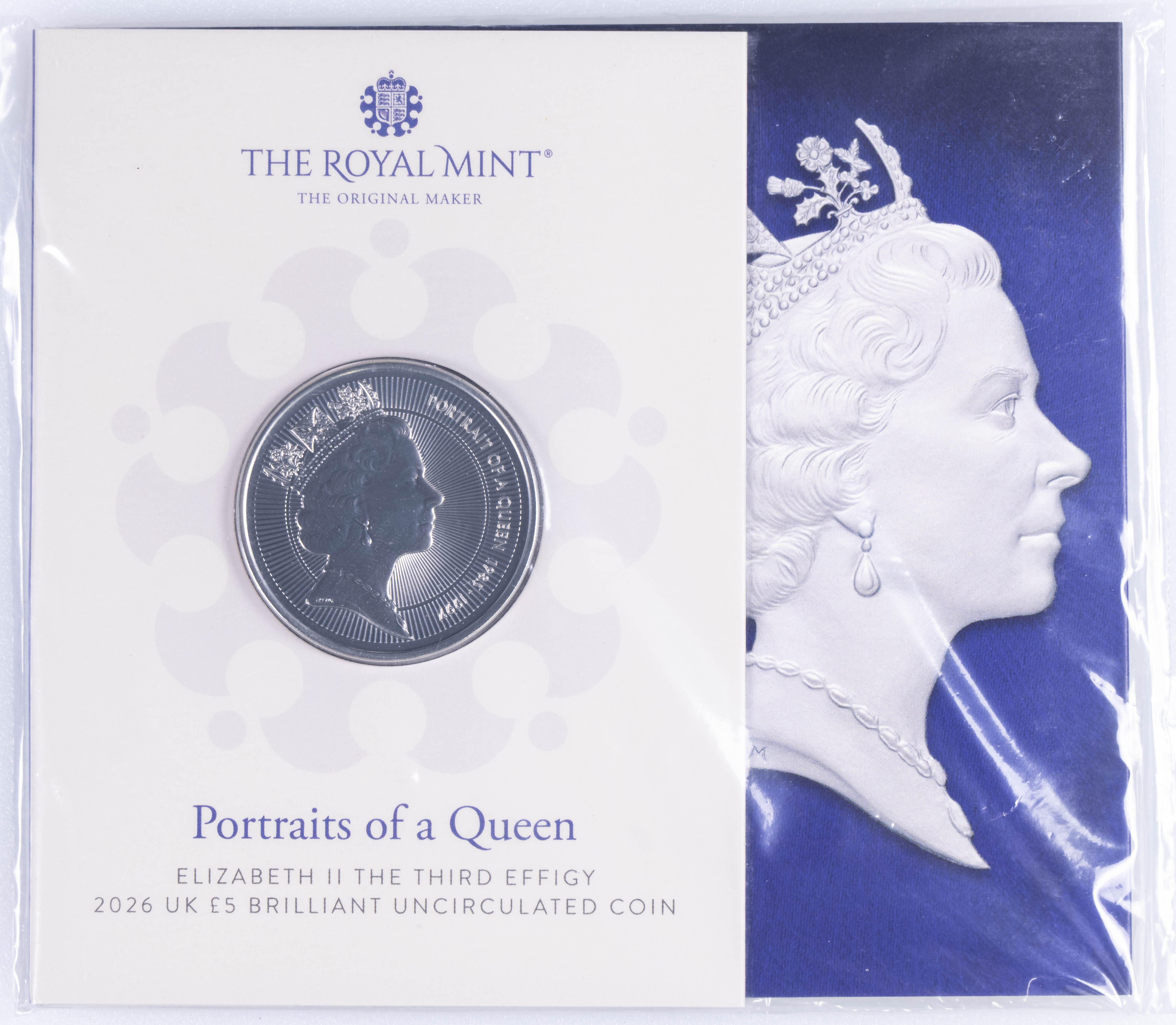 REINO UNIDO. 5 Libras. (Ae-Ni. 28,28g/39mm). 2026. Royal Mint. Tercer retrato de Isabel II. SC. En estuche oficial.