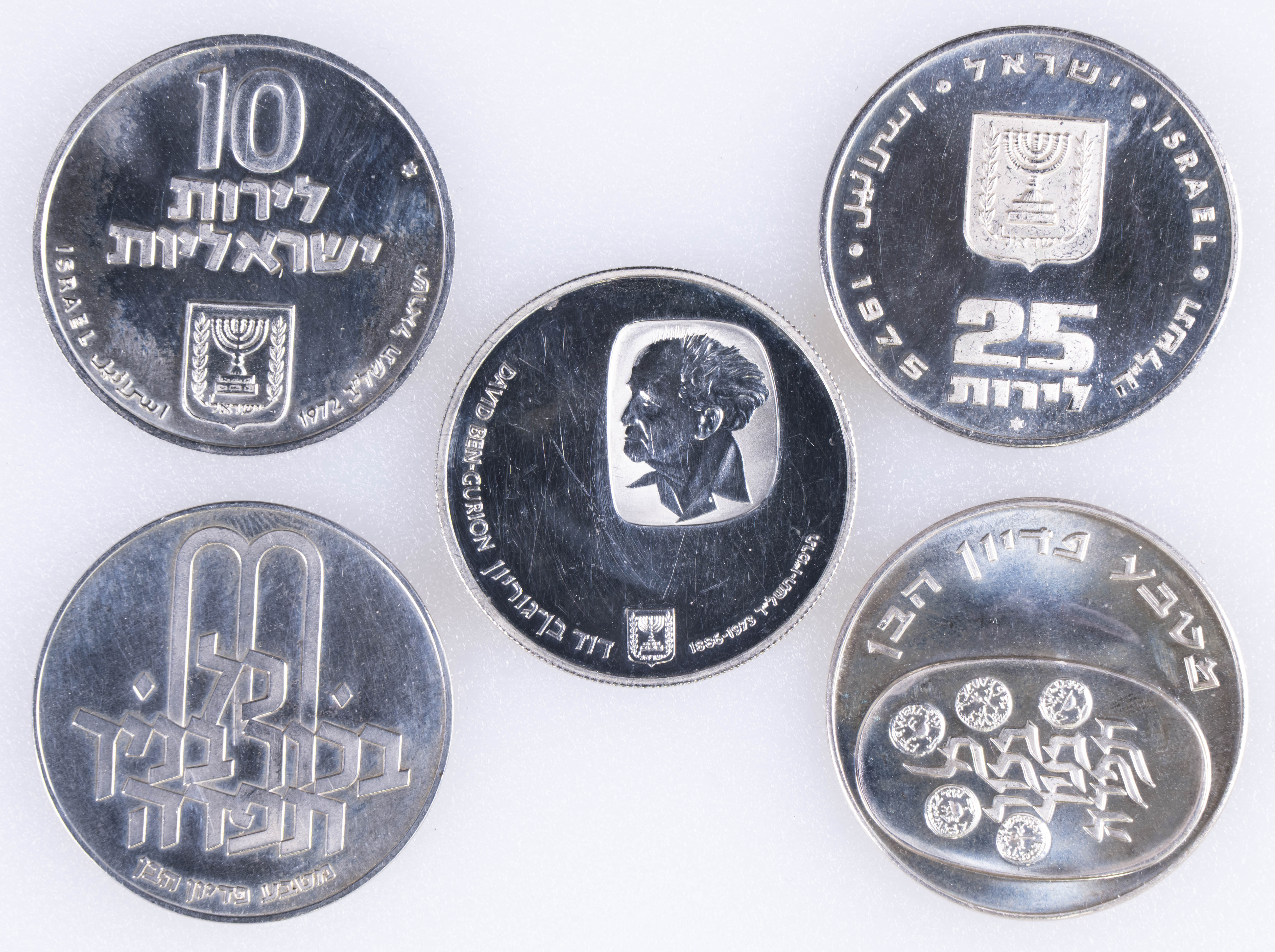 ISRAEL. Conjunto de 5 monedas de plata de 10 y 25 Lirot con sólo un ejemplar repetido. Alto nivel de conservación general. A EXAMINAR.