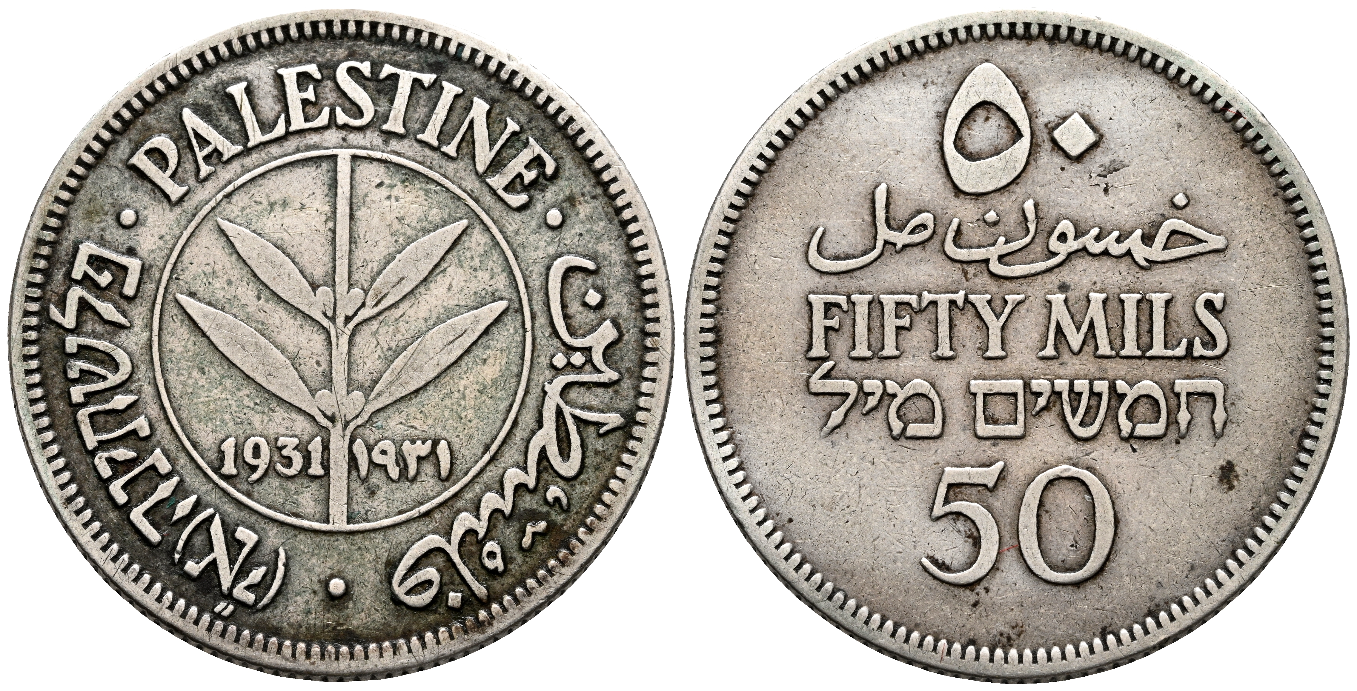 PALESTINA. 50 Mils (Ar. 5,67g/18mm). 1934. (Km#6). MBC. Escasa.