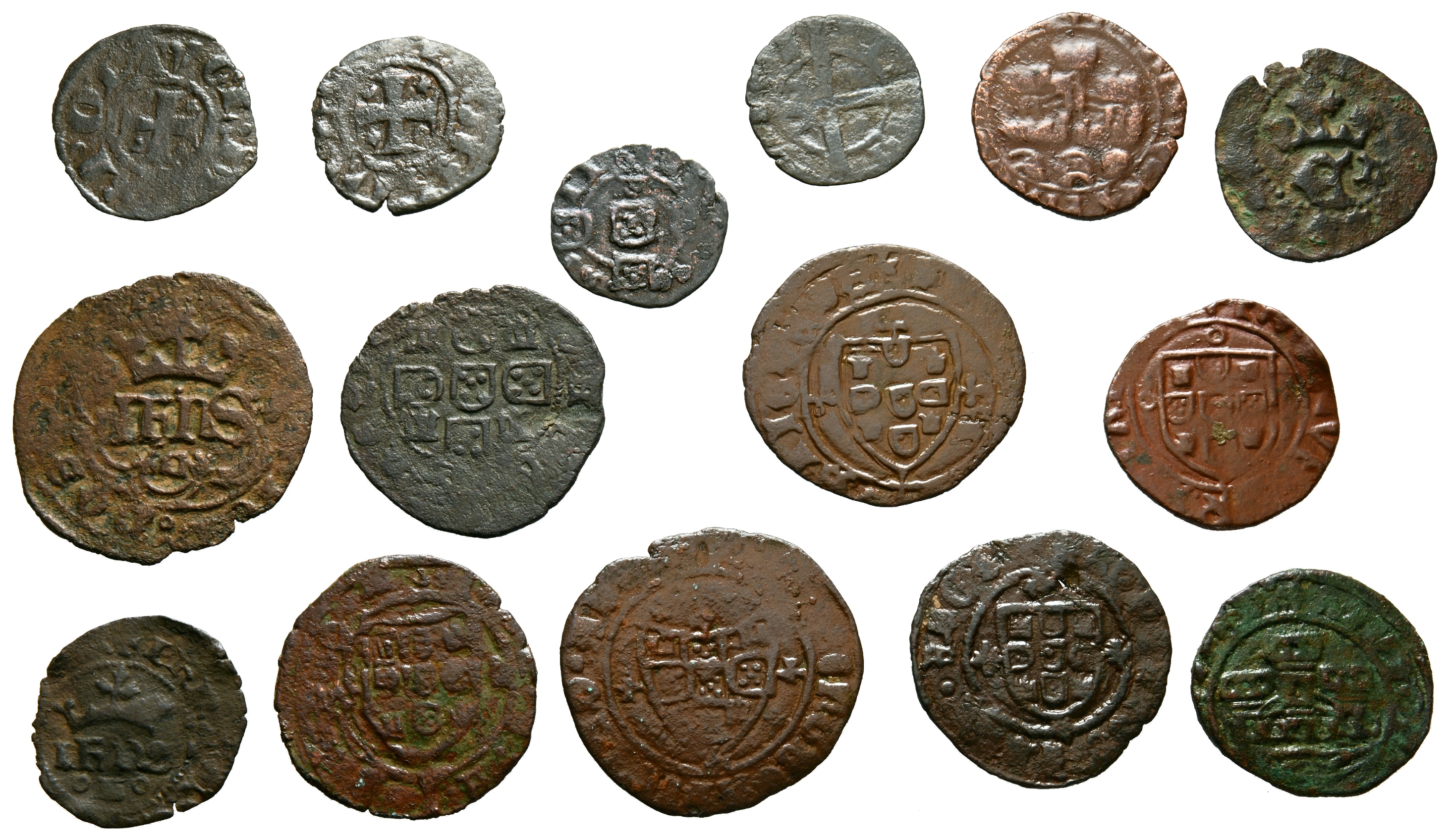 PORTUGAL. Interesante conjunto formado por 15 monedas acuñadas durante los reinados de Sancho II, Alfonso III, Denis, Fernado I, Joao I, Duarte, Alfonso V y Manuel I. Diferentes módulos, medidas y estados de conservación. A EXAMINAR.