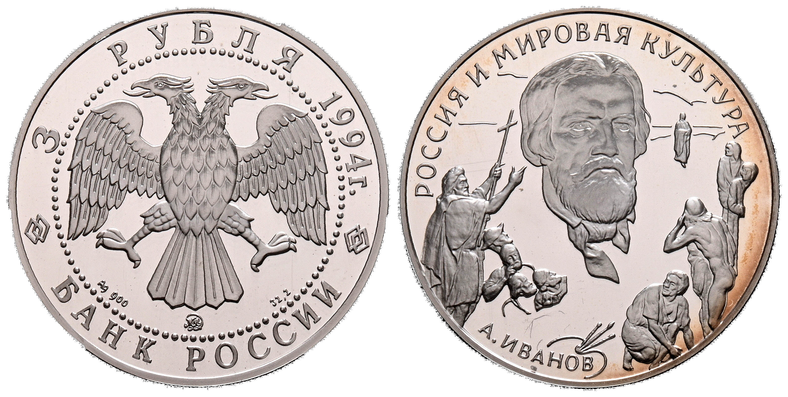 RUSIA. 3 Rublos. (Ar. 34,88g/39mm)*. 1994. Alex Ivanov. (Km#529). Encapsulado por PCGS PR 68DCAM. *Peso y medidas teóricos.