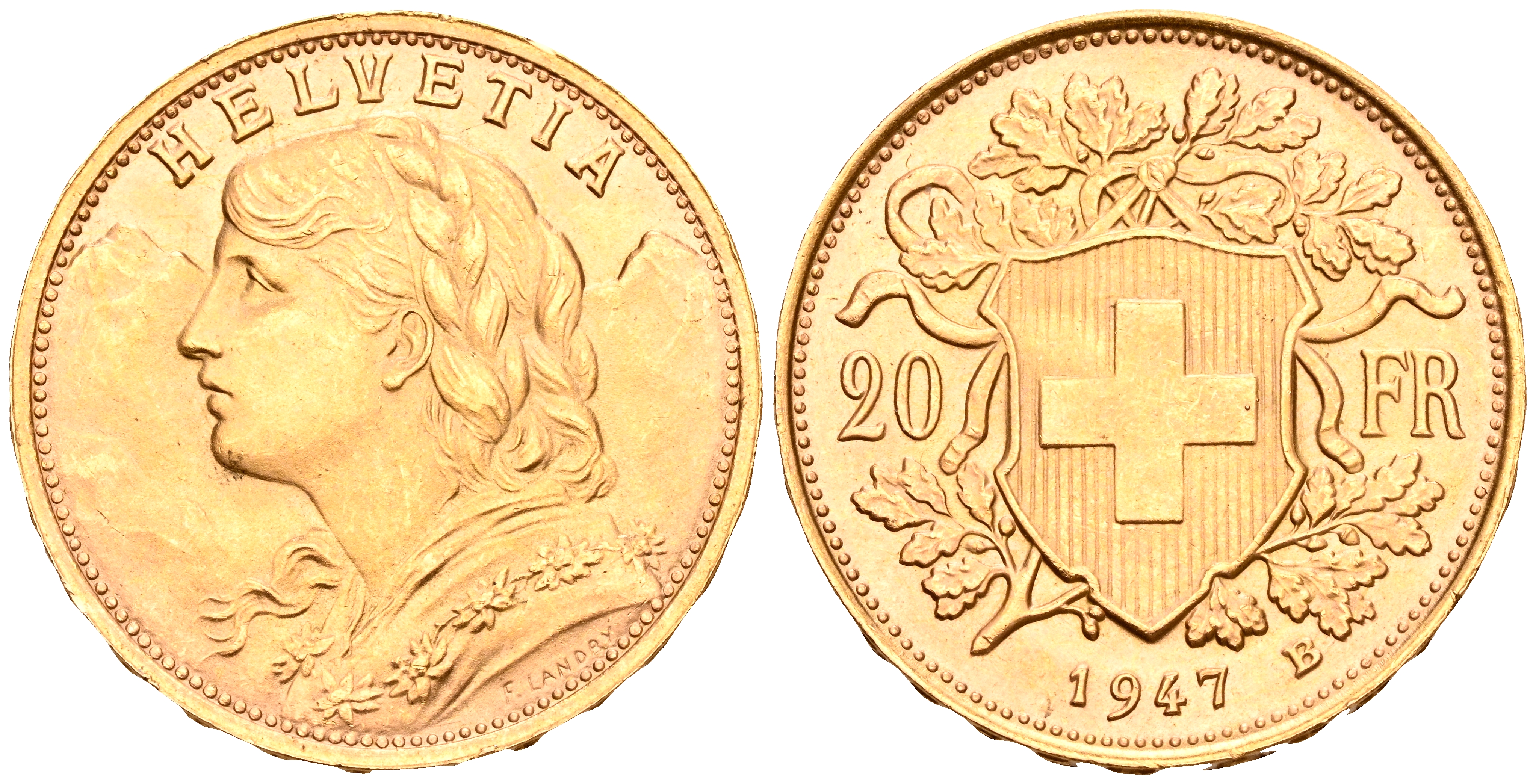 SUIZA. 20 Francos. (Au. 6,46g/21mm). 1947. Berna B. (Km#35.1). SC-.
