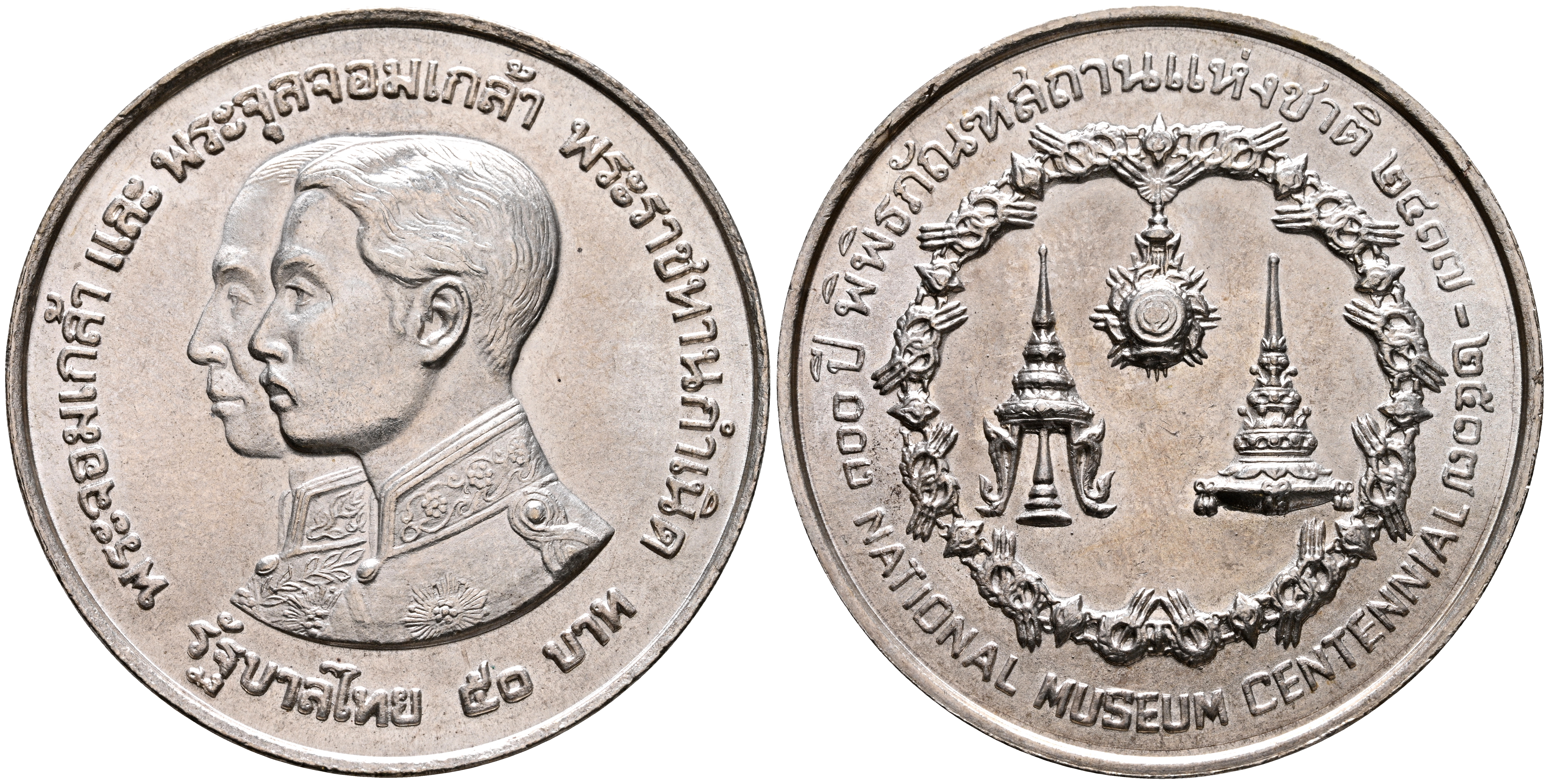 TAILANDIA, Rama IX. 50 Baht. (Ar. 24,90g/39mm). 1974. 100 Aniversario Museo Nacional. (Km#101). EBC+.