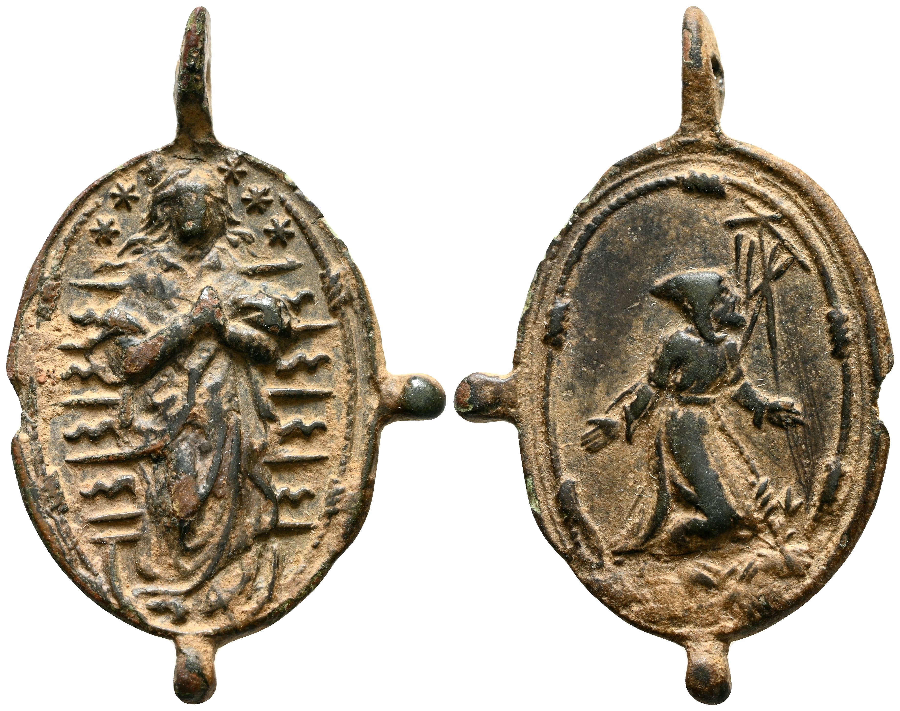 MEDALLA DEVOCIONAL. (Ae. 2,04g/26x17mm). Siglo XVI-XIX. Anv: Virgen Inmaculada. Rev: San Francisco de Asis. MBC.
