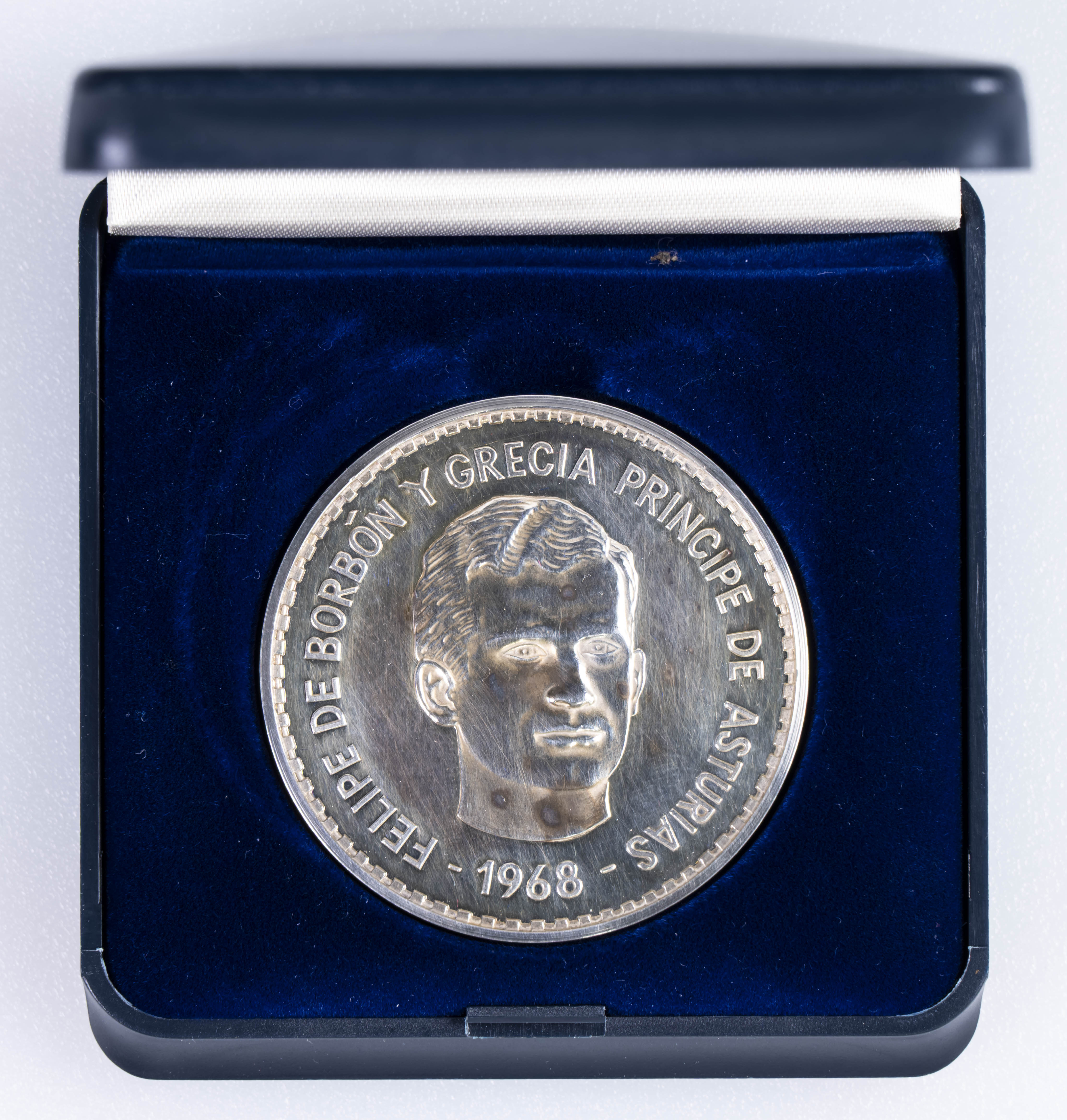 ESPAÑA. 2 Onzas. (Ar. 62,36g/47mm). S/D. Felipe de Borbón. Príncipe de Asturias. EBC+. Rayitas y manchitas en anverso. Incluye estuche.