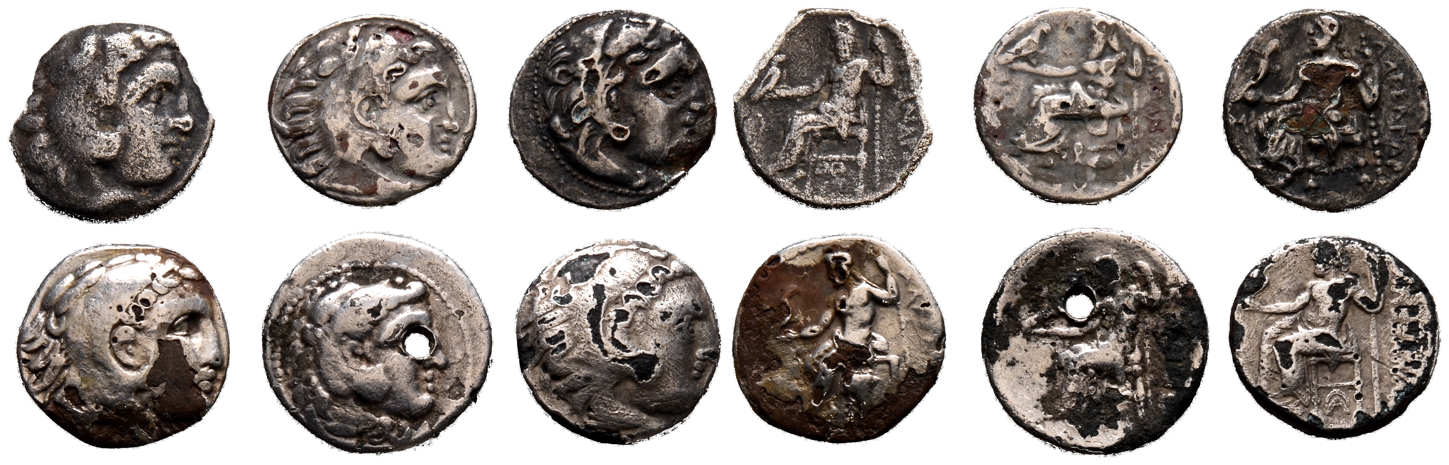 MONEDAS GRIEGAS. Interesante conjunto formado por 6 dracmas forrados a nombrer de Alejandro III el grande. Diferentes medidas y estados de conservación. A EXAMINAR.