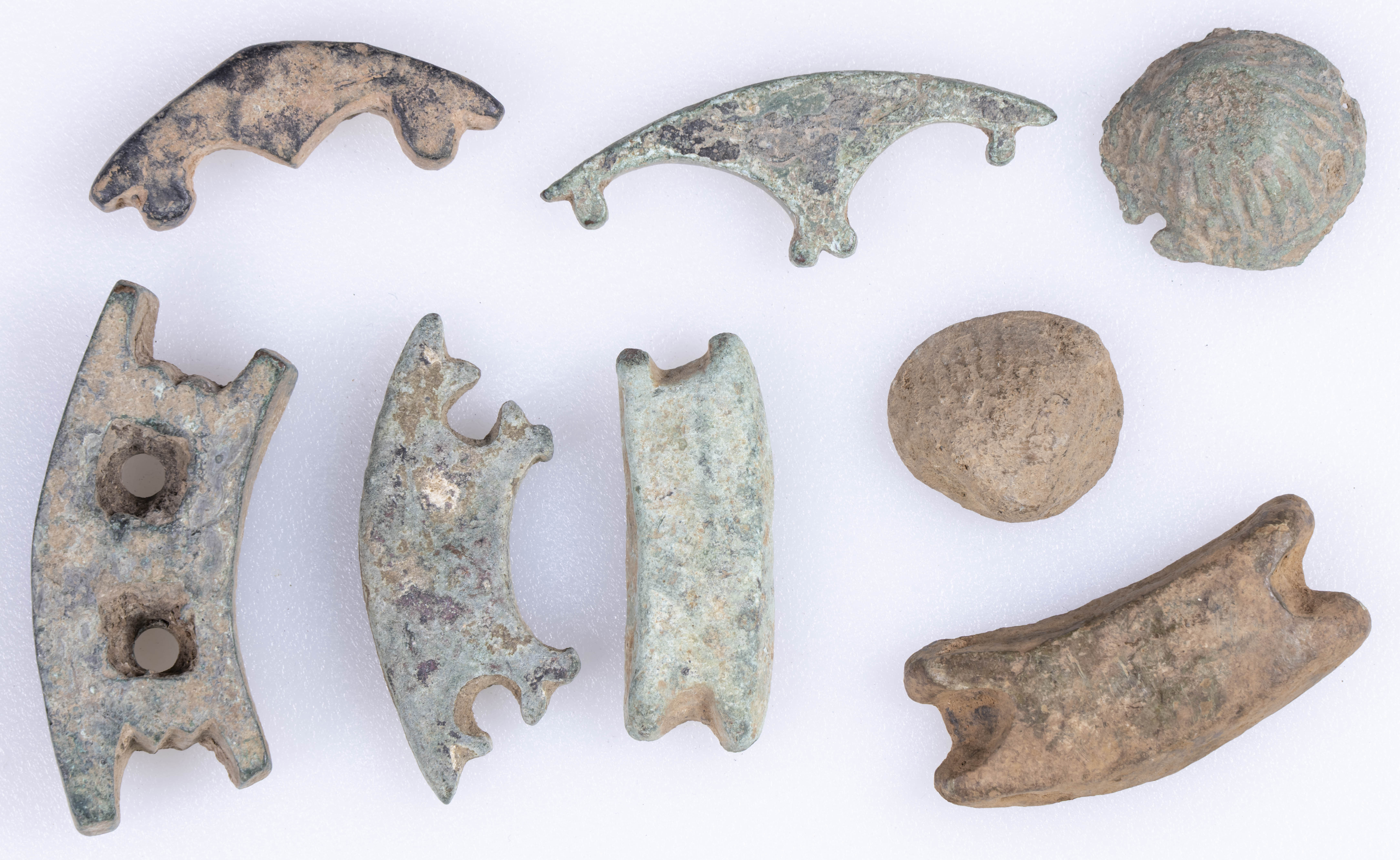 HISPANIA ANTIGUA. Interesantísimo y bello conjunto de premonedas compuesto por 7 piezas, de las cuales 5 son lingotes adornado y 2 de tipo concha. A destacar, la gran variedad de formas y el importante tamaño de algunas de las piezas. Diferentes tipos, medidas y estados de conservación. A EXAMINAR.