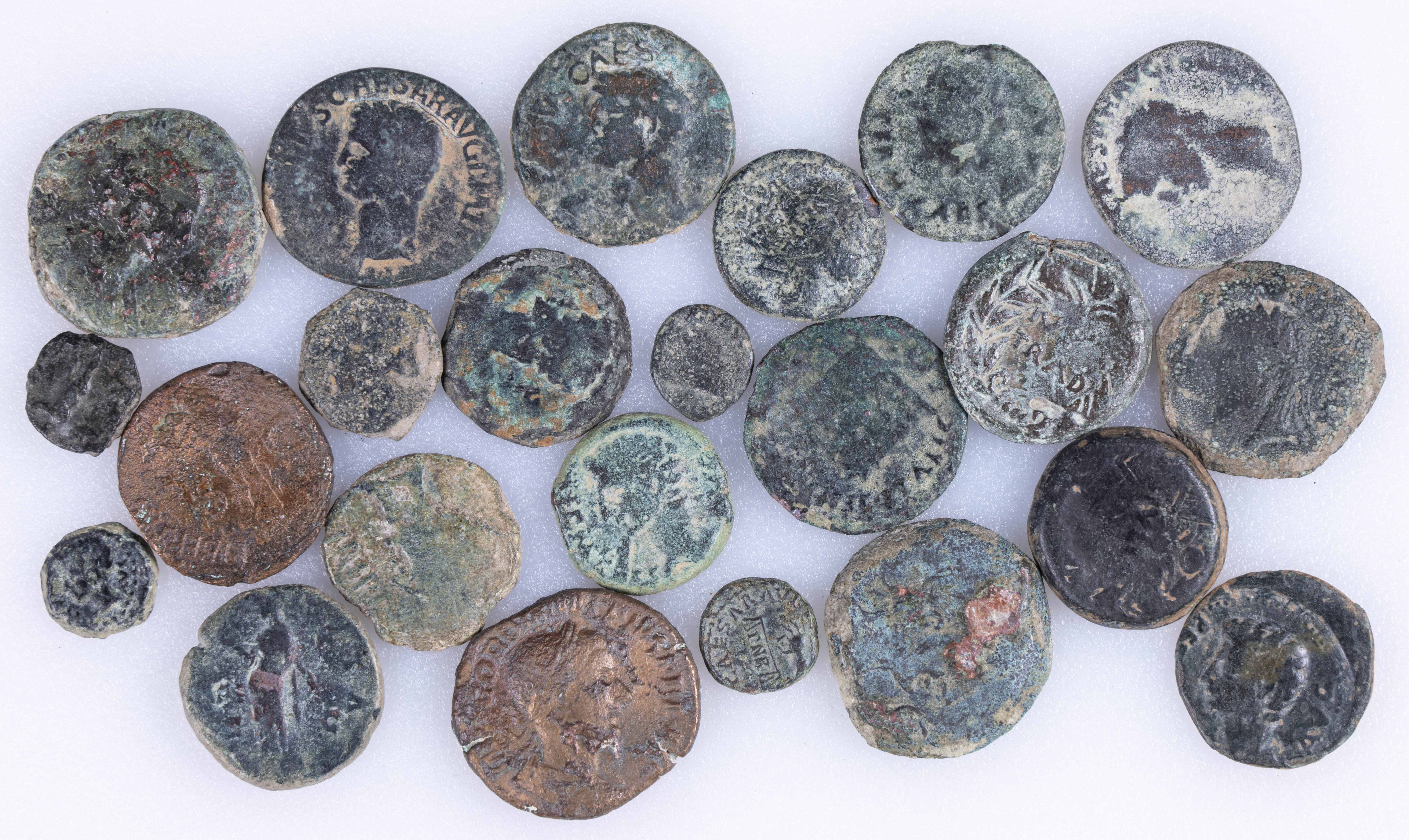 HISPANIA ANTIGUA e IMPERIO ROMANO. Interesante conjunto formado por 33 bronces muy variados y correpondientes a diferentes cecas y emperadores. Diferentes módulos, medidas y estados de conservación. A EXAMINAR.