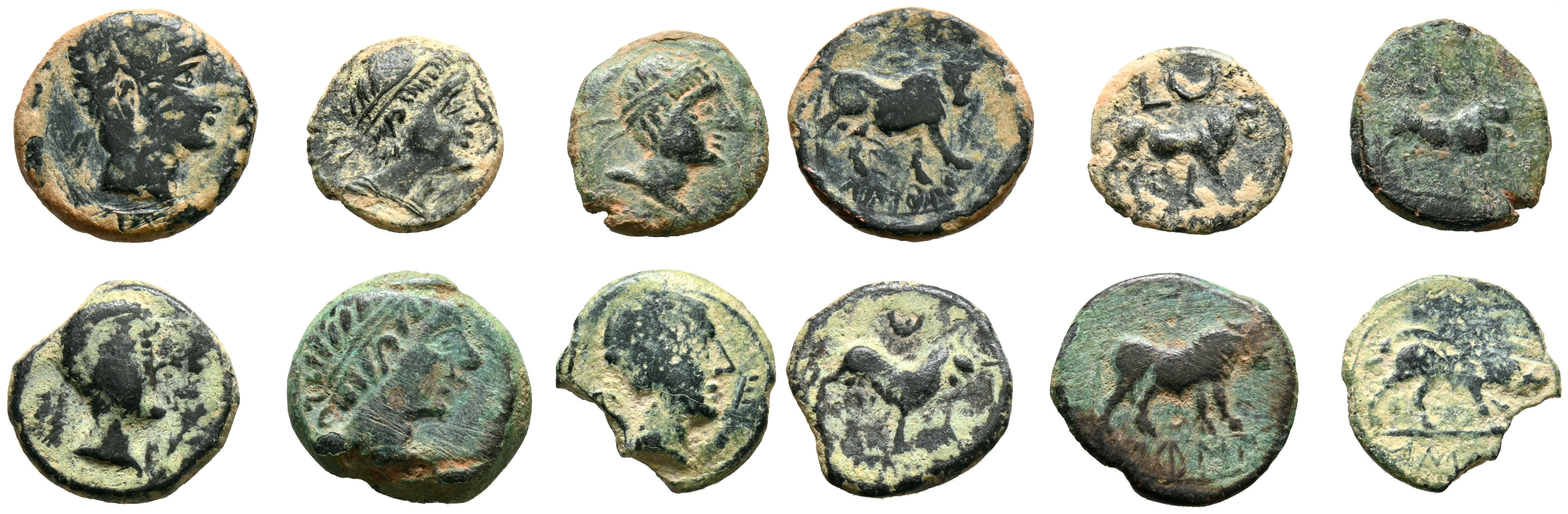 HISPANIA ANTIGUA. Interesante conjunto formado por 6 semis de Cástulo. Diferentes variantes, medidas y estados de conservación. A EXAMINAR.