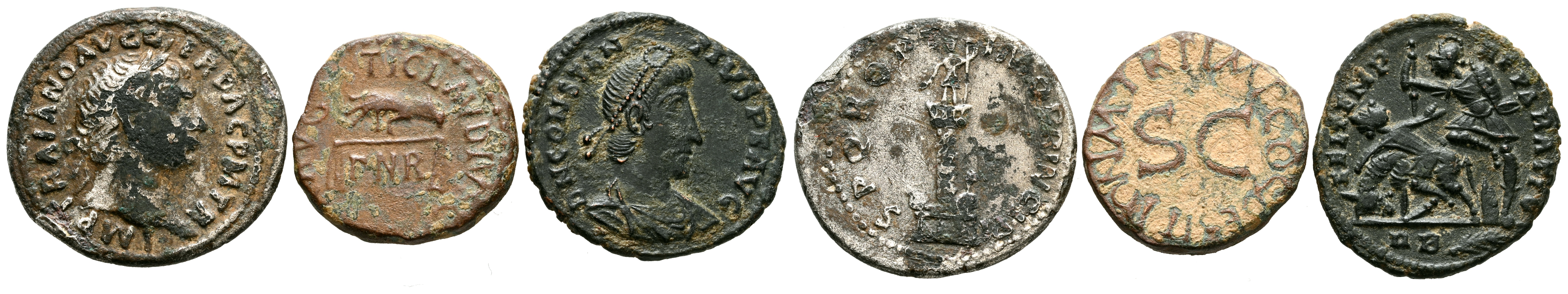 IMPERIO ROMANO. Interesante conjunto formado por tres acuñaciones diferentes correspondientes a los emperadores Adriano, Claudio I y Constancio II. Diferentes medidas y estados de conservación. A EXAMINAR.