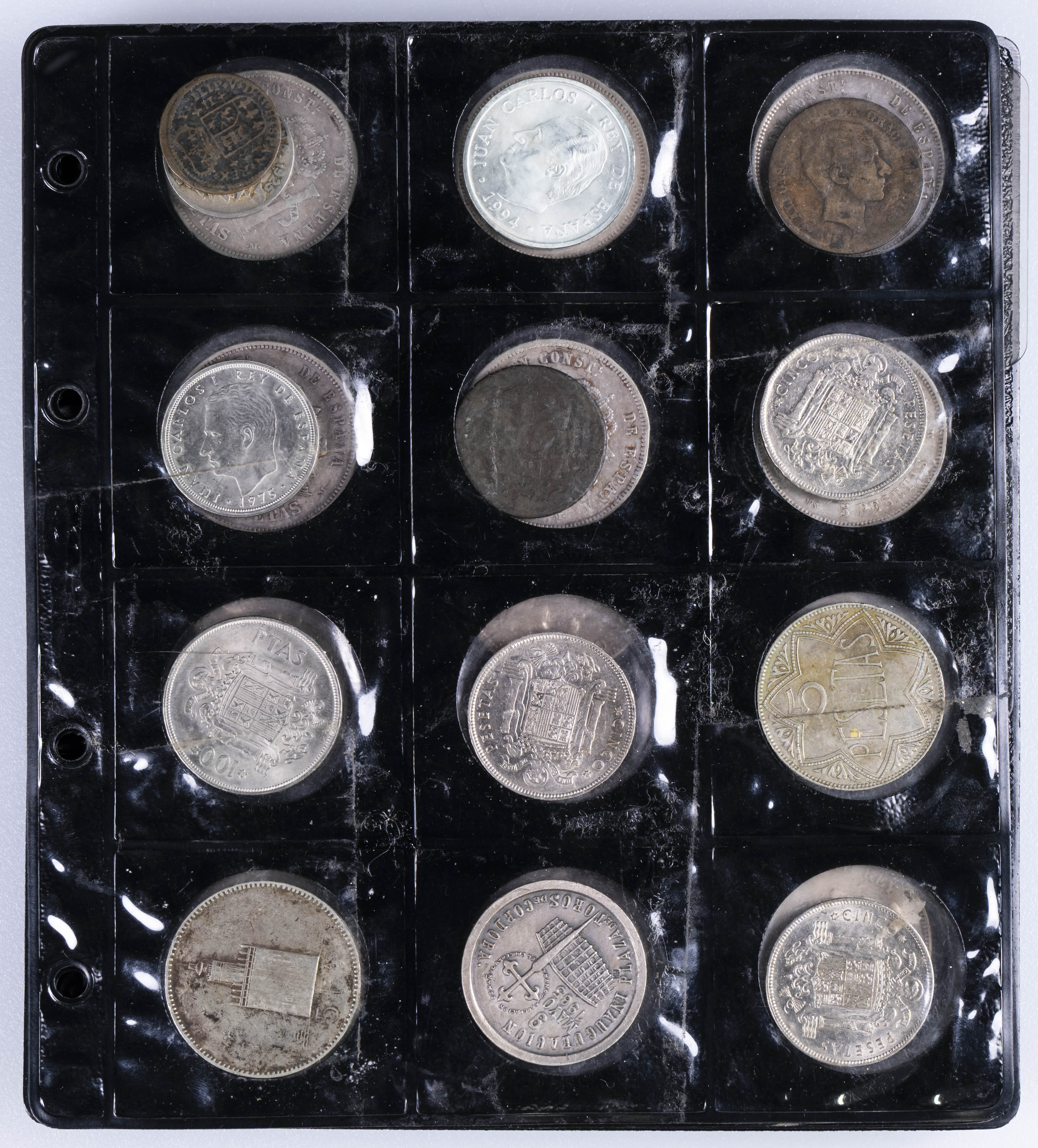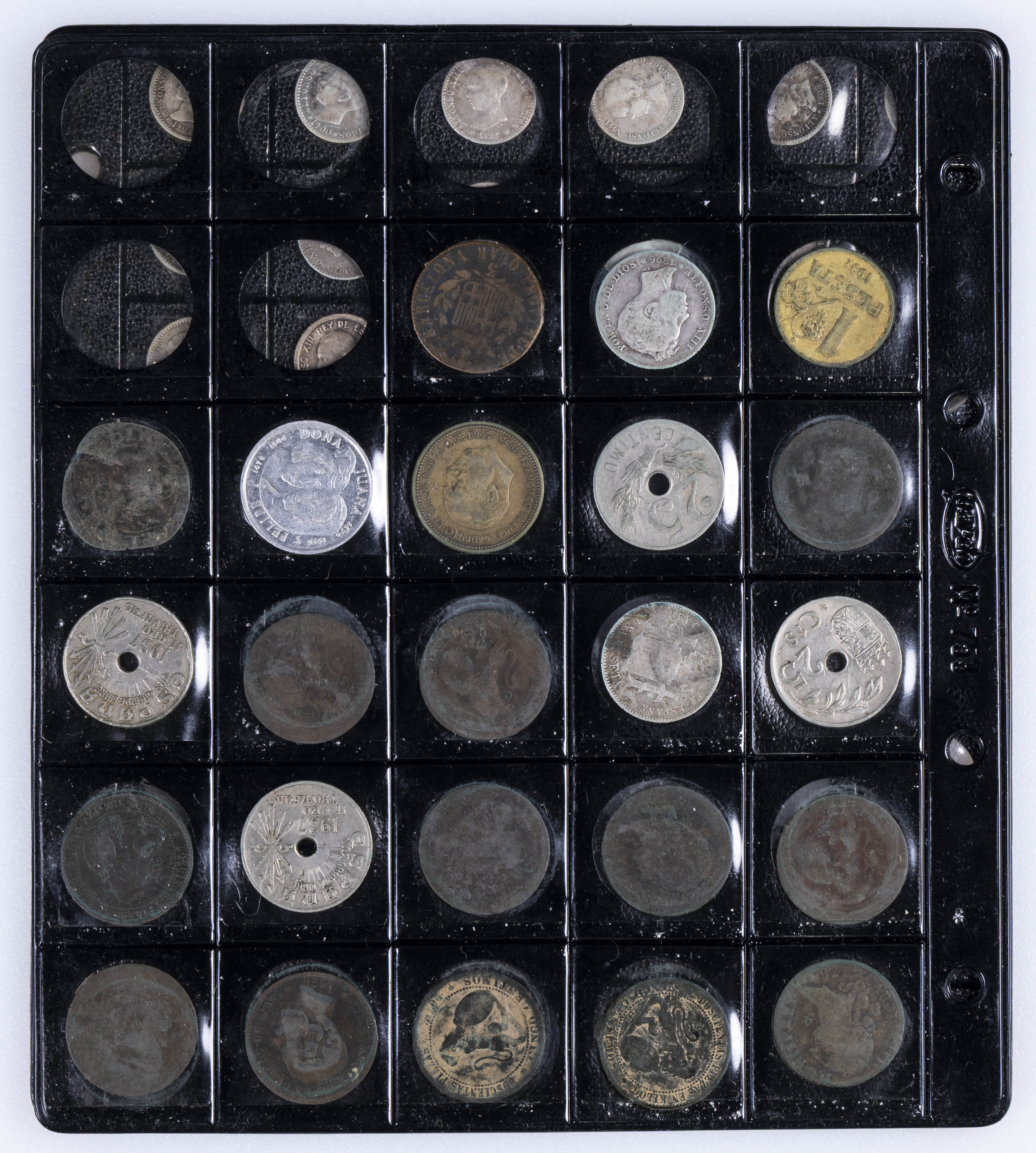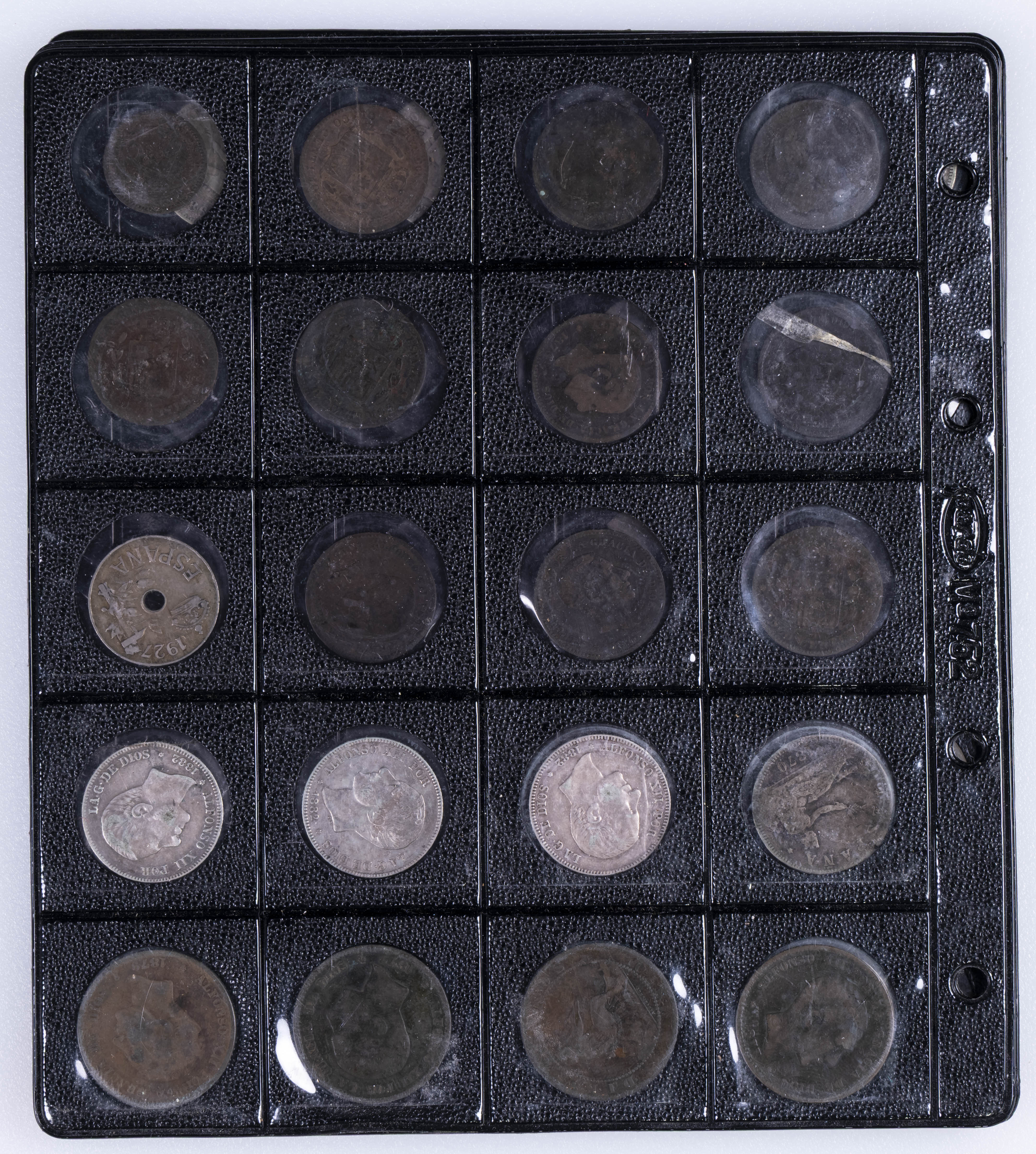 CENTENARIO DE LA PESETA. Interesante conjunto formado por alrededor de 140 piezas, principalmente del Centenario aunque encontramos también ejemplares de Monarquía Española y del Estado Español entre otros periodos. Destacan 34 piezas del módulos de 5 Pesetas así como otros divisores en plata. Diferentes estados de conservación. El conjunto incluye alguna réplica. IMPRESCINDIBLE EXAMINAR.