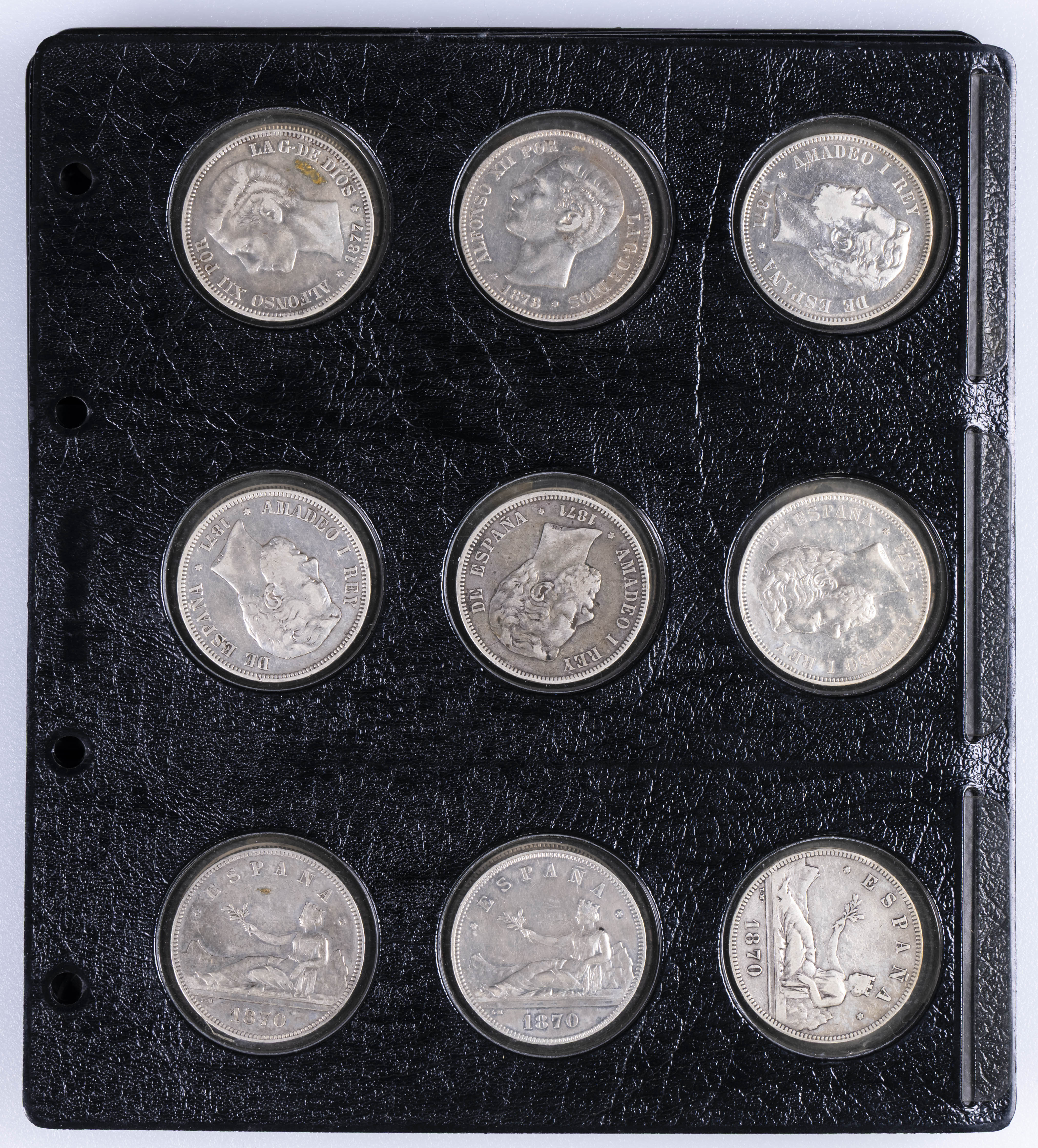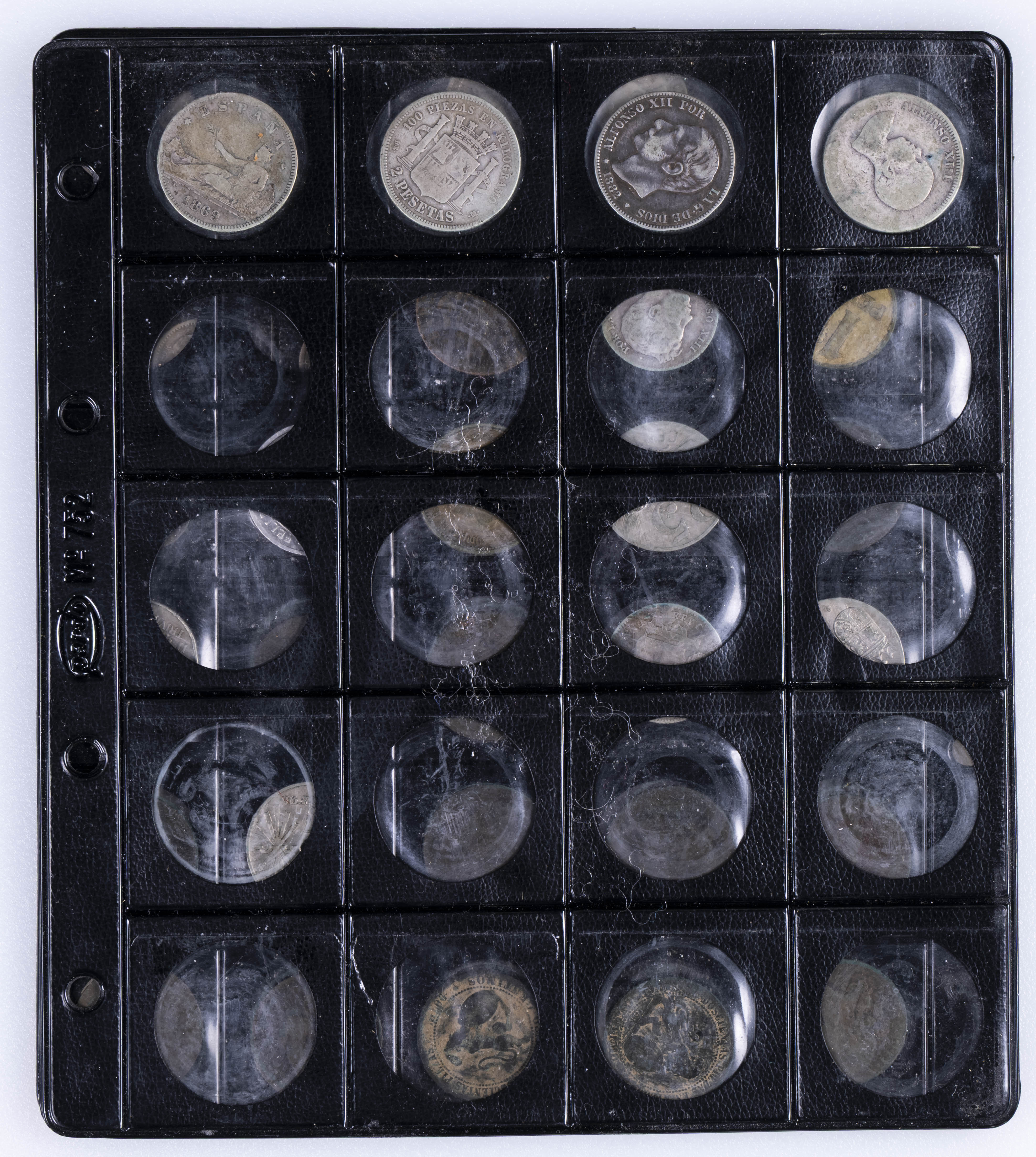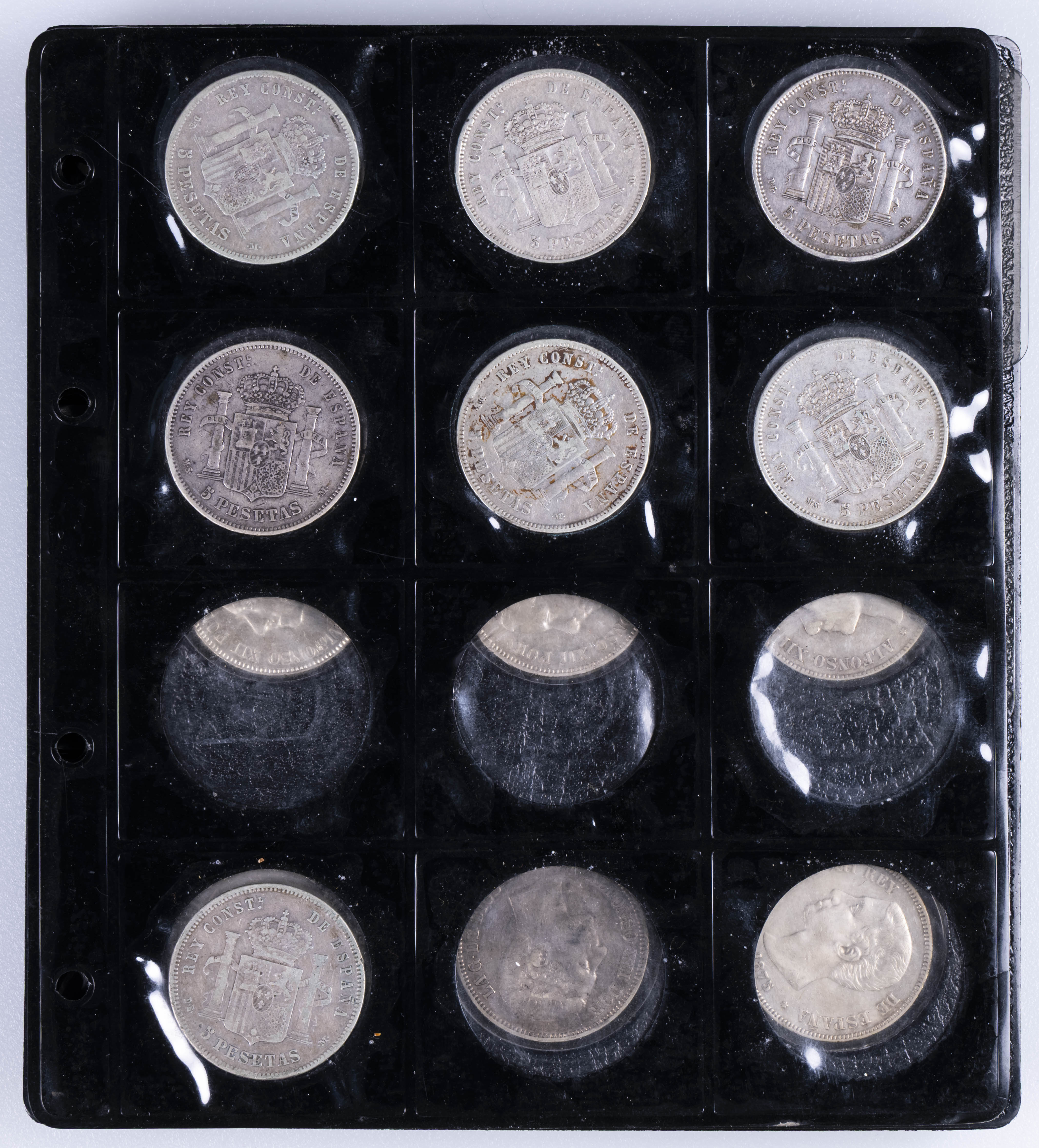 CENTENARIO DE LA PESETA. Interesante conjunto formado por alrededor de 140 piezas, principalmente del Centenario aunque encontramos también ejemplares de Monarquía Española y del Estado Español entre otros periodos. Destacan 34 piezas del módulos de 5 Pesetas así como otros divisores en plata. Diferentes estados de conservación. El conjunto incluye alguna réplica. IMPRESCINDIBLE EXAMINAR.