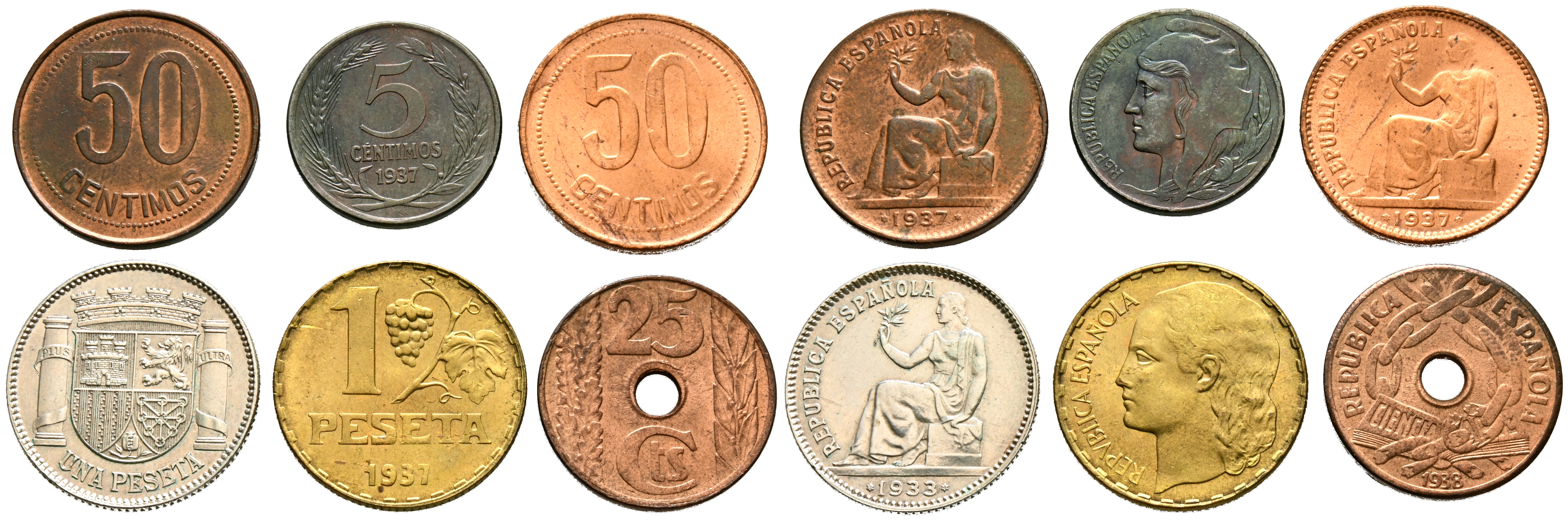 II REPÚBLICA (1931-1939). Interesante conjunto de 6 piezas con variedad de módulo, incluyendo la Peseta de 1933. Excelente grado de conservación general. A EXAMINAR.