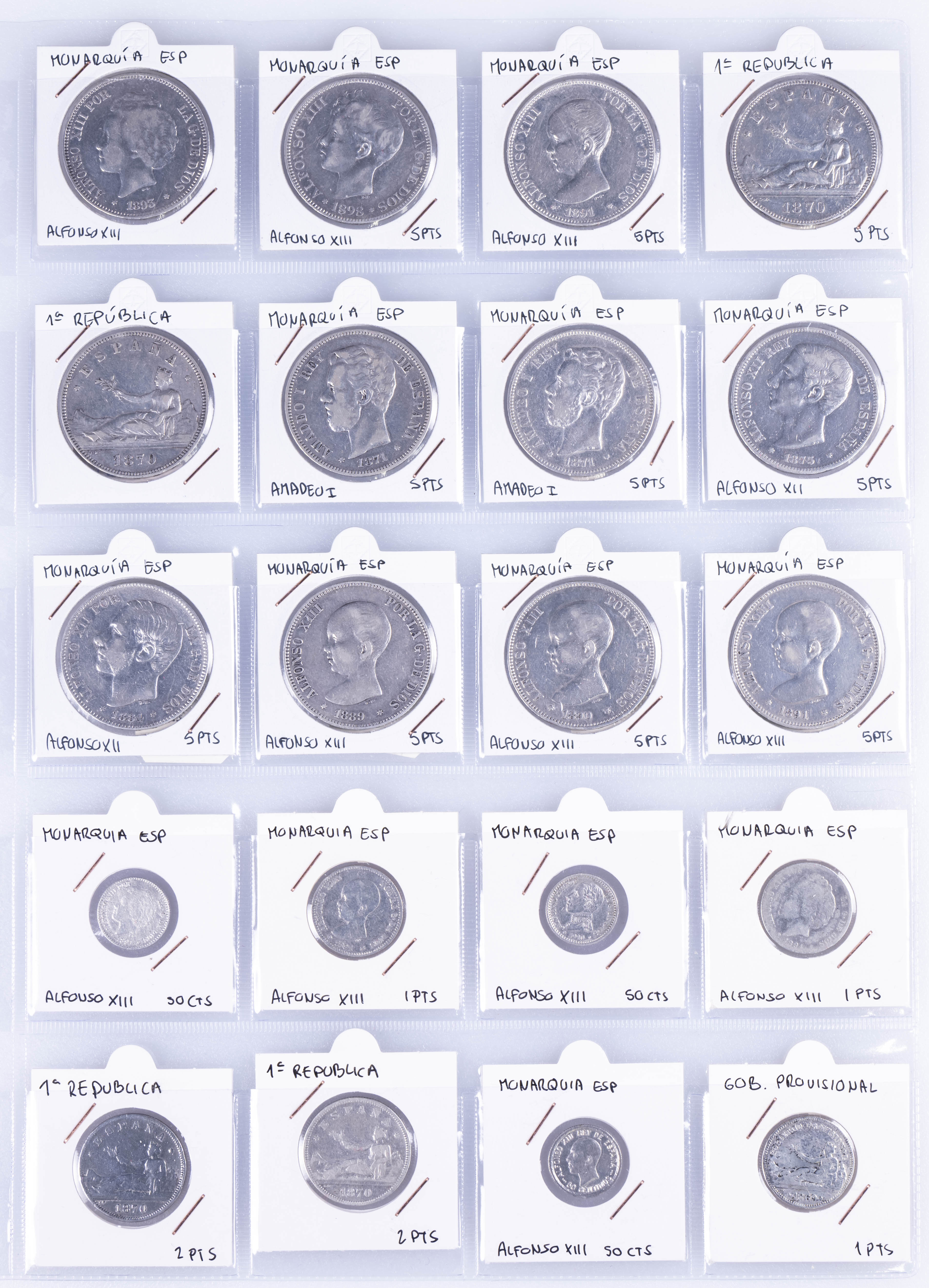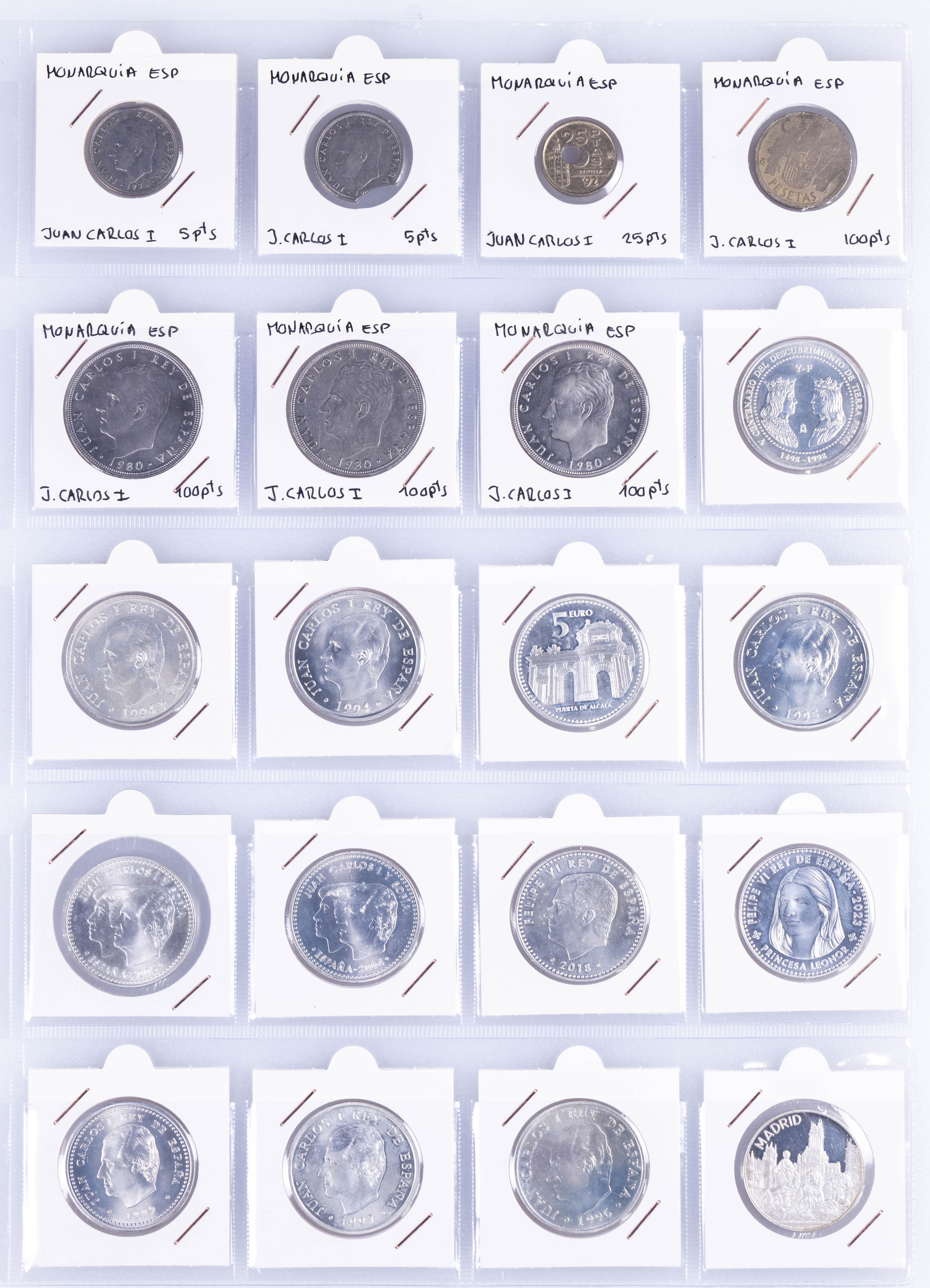 CENTENARIO Y CONTEMPORÁNEO. Interesante conjunto de aproximadamente 80 monedas acuñadas entre el Centenario de la Peseta y el reinado de Felipe VI. Incluye un buen número de ejemplares en plata destacando piezas con módulo tipo Duro y diversos valores de Euros. Diferentes estados de conservación. A EXAMINAR.