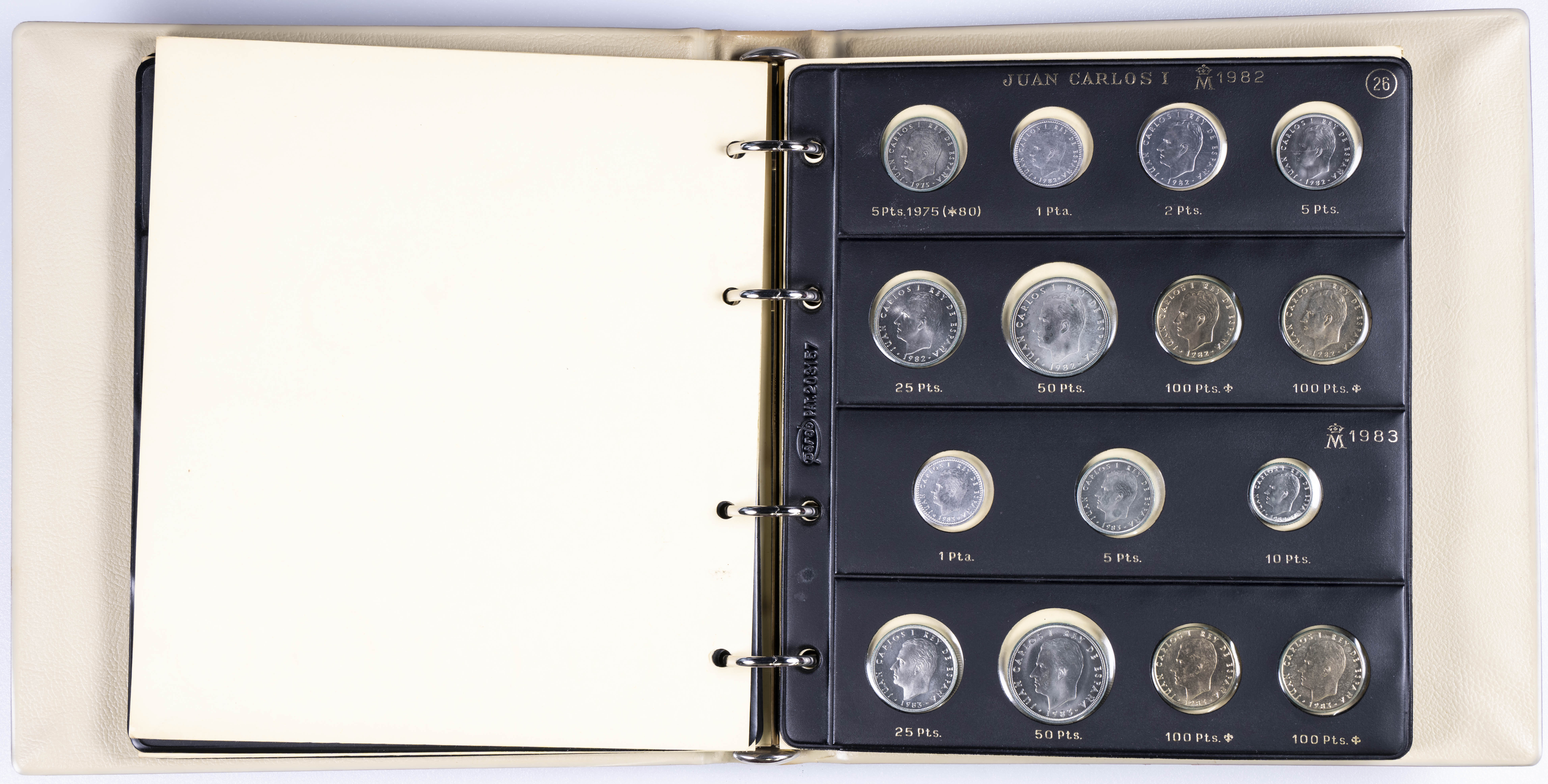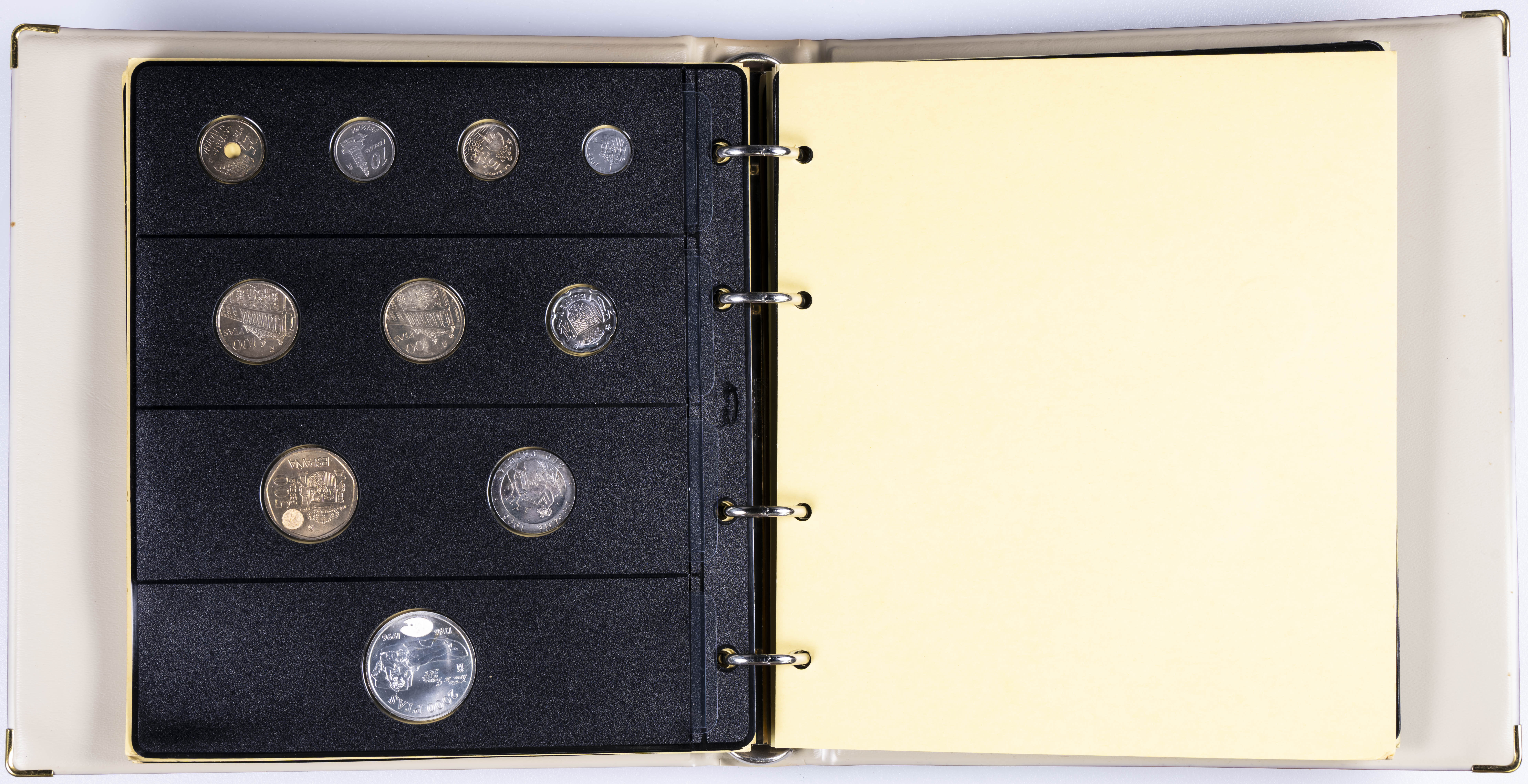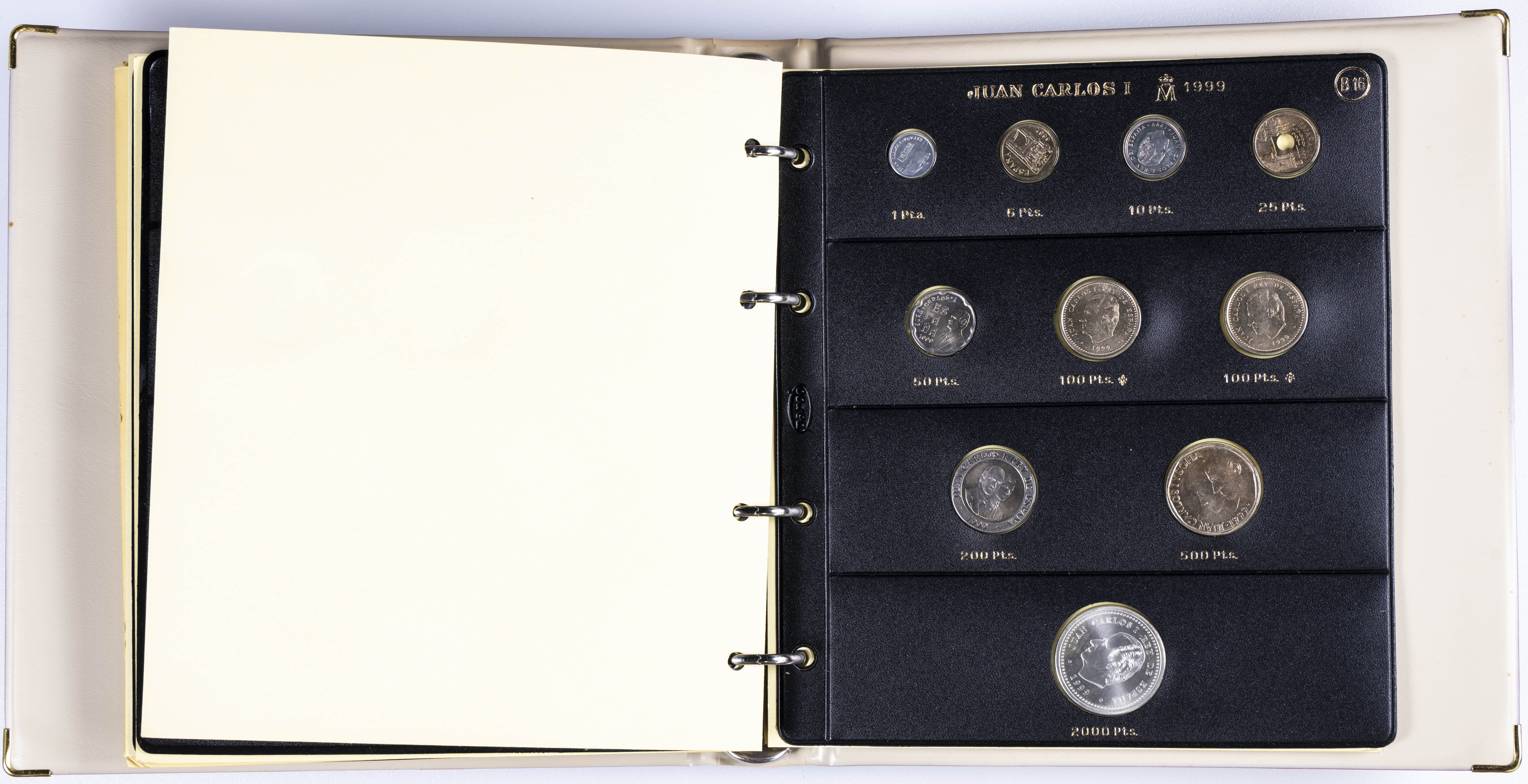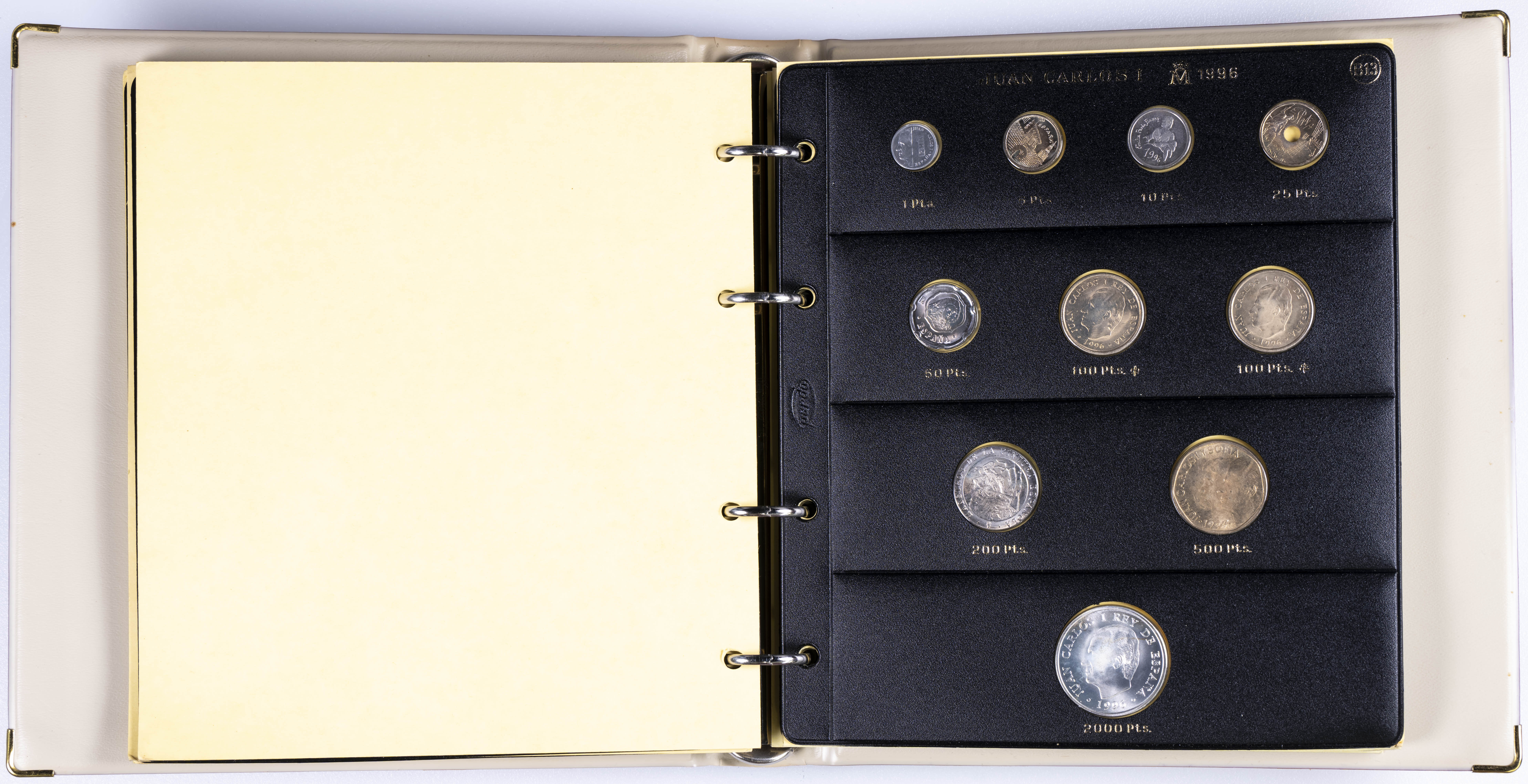 JUAN CARLOS I (1975-2014). Interesante y muy completa colección expuesta en 2 álbumes que incluye, además, sets, cartuchos, estuches, carteras y tiras. Incluye un buen número de ejemplares en plata. Colección en alto grado de conservación general. A EXAMINAR.