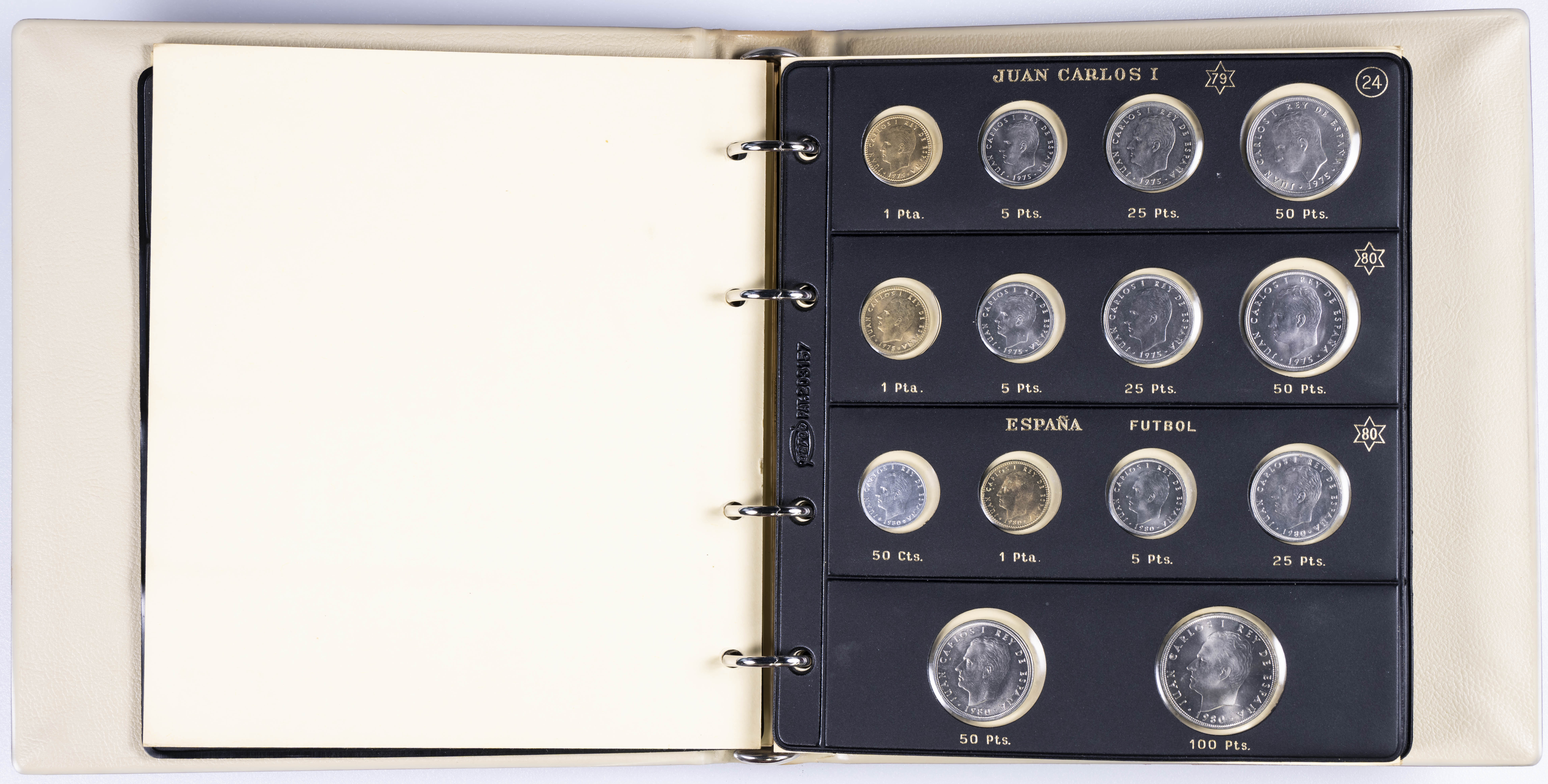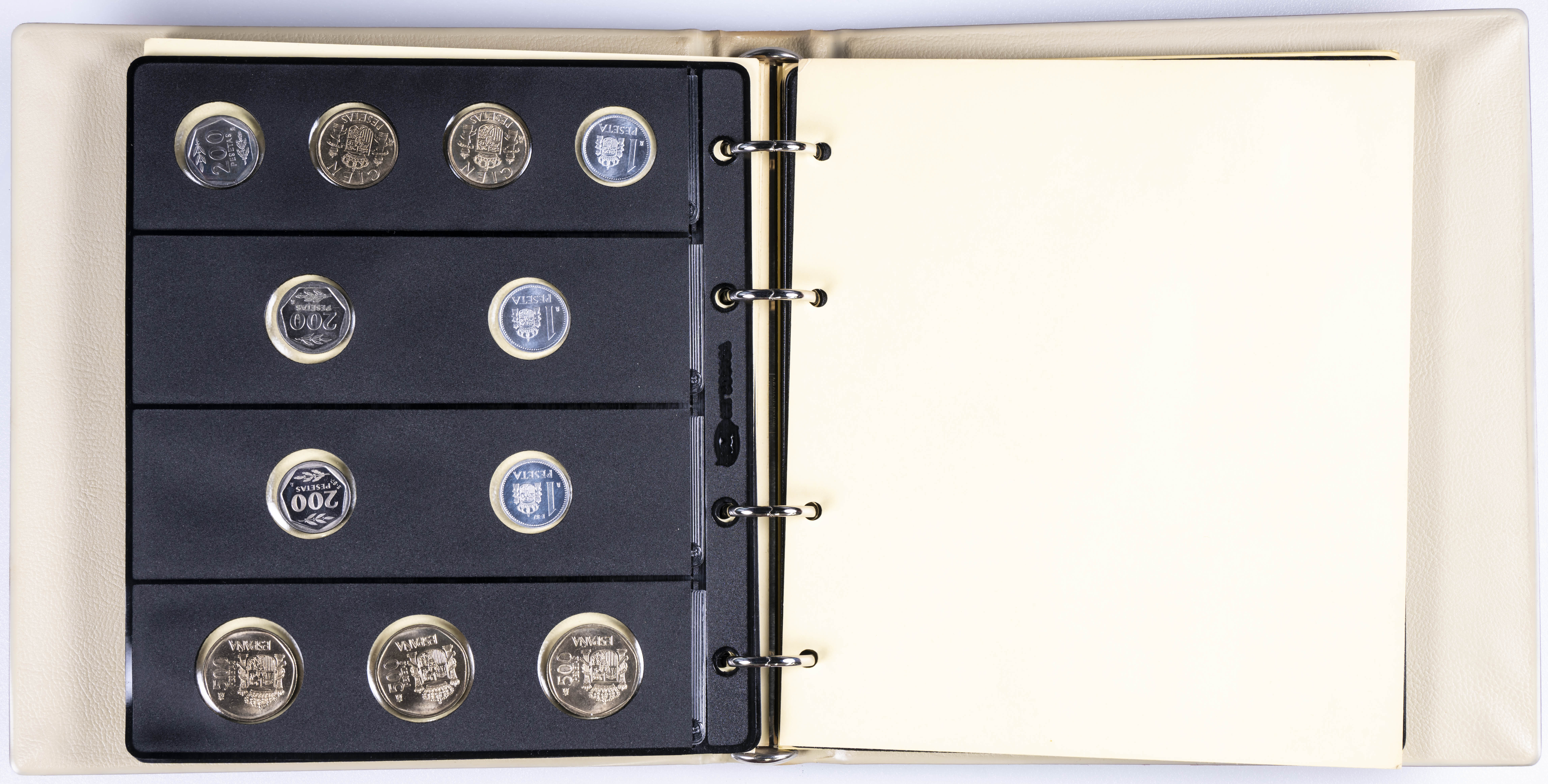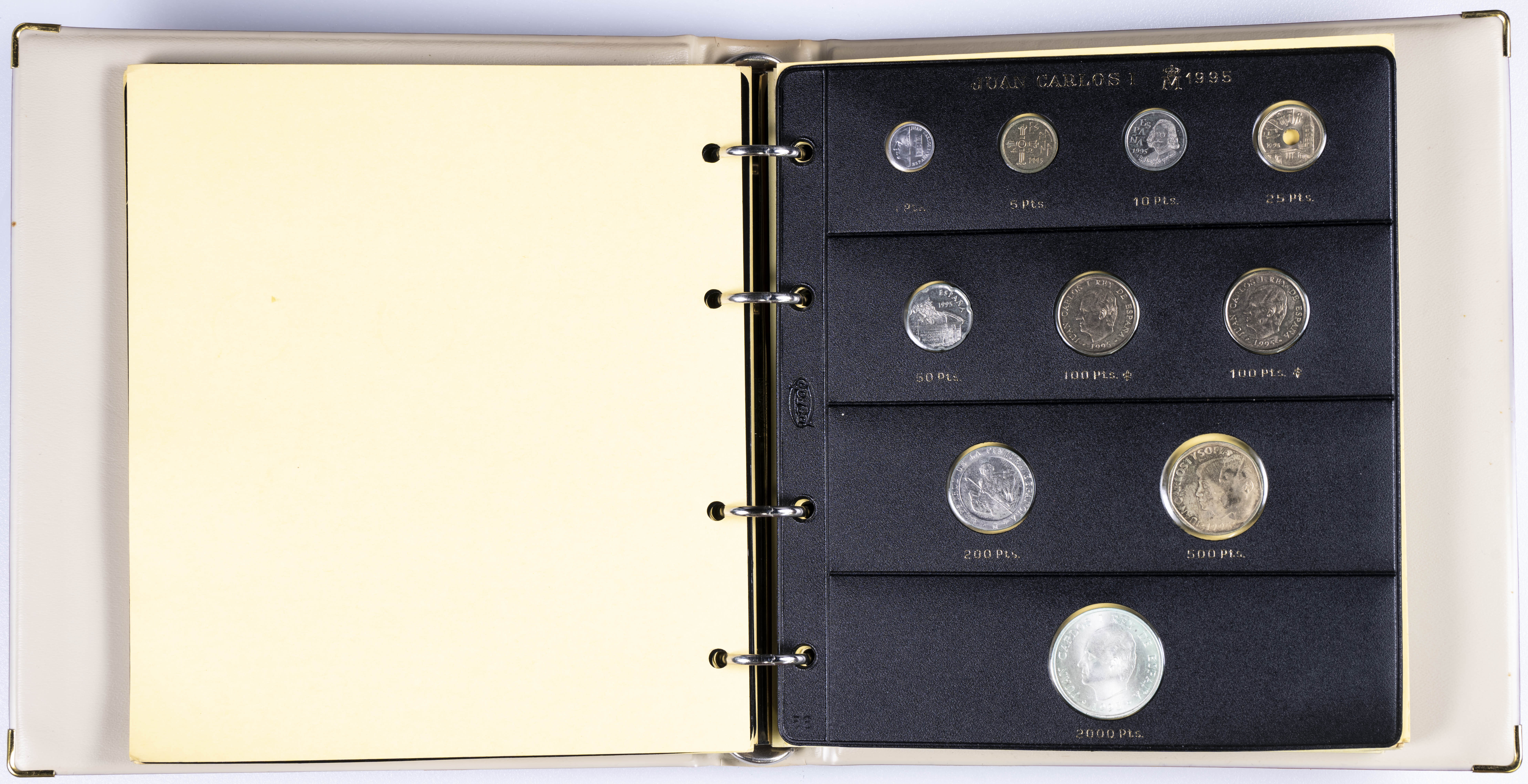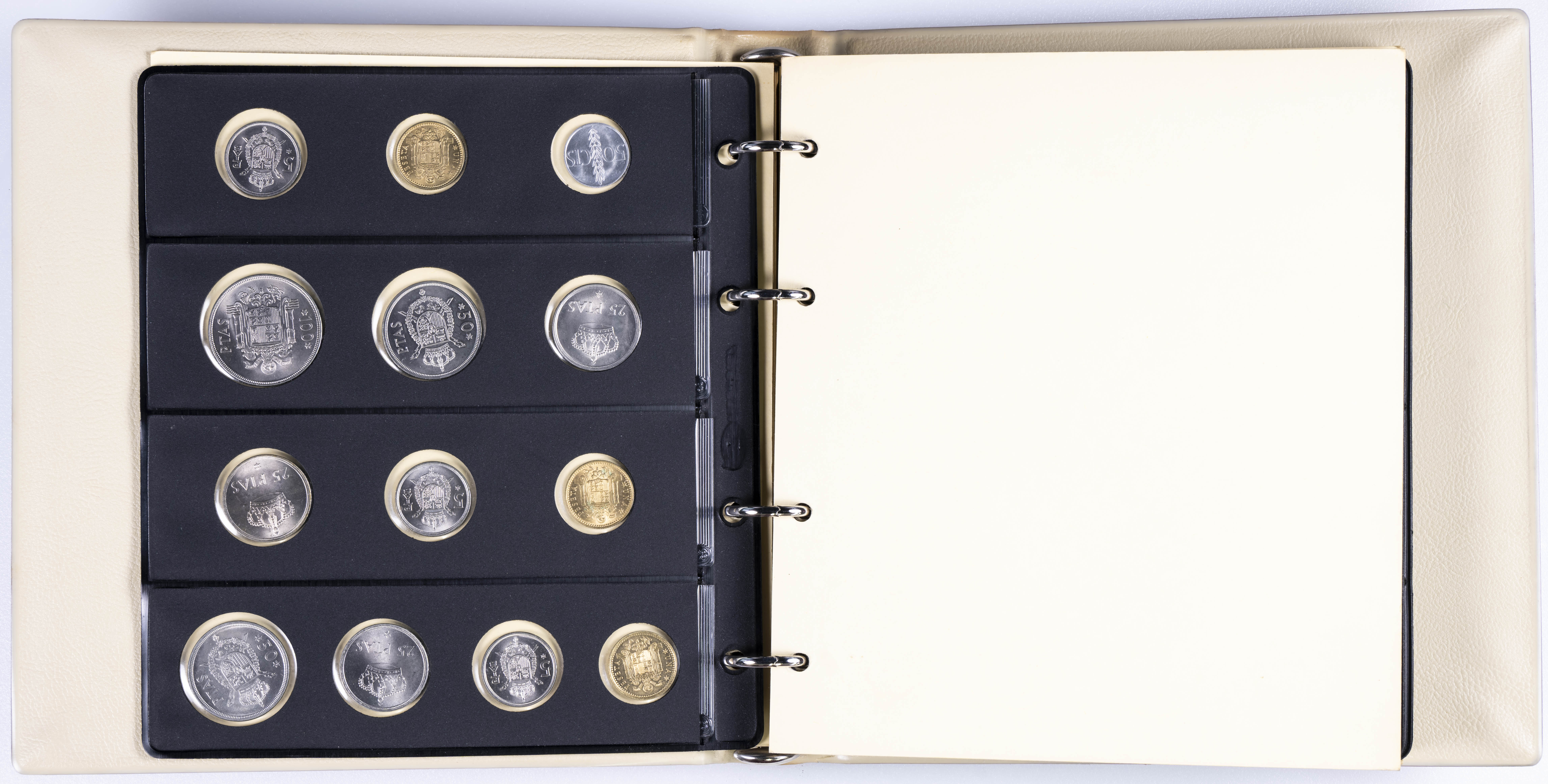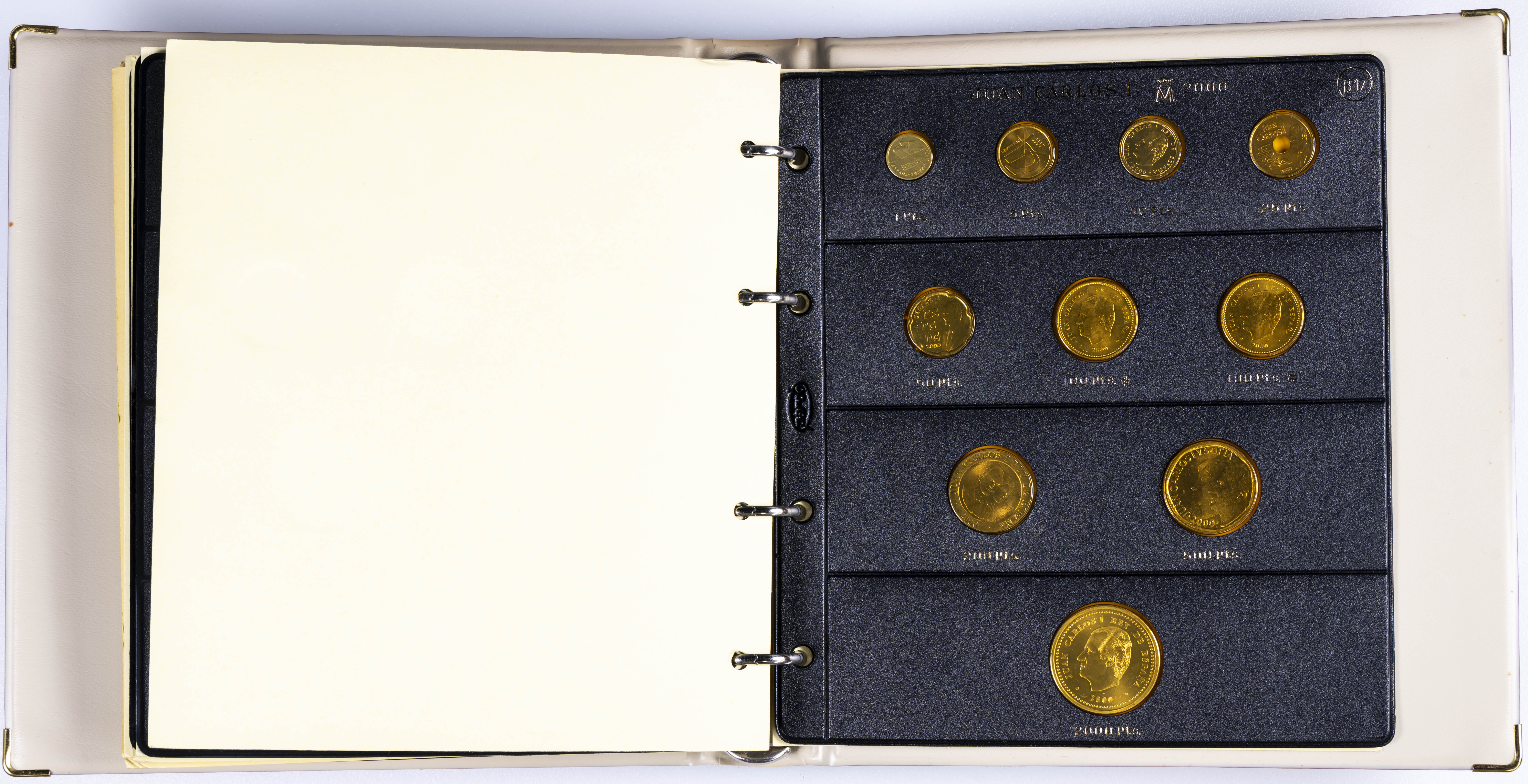 JUAN CARLOS I (1975-2014). Interesante y muy completa colección expuesta en 2 álbumes que incluye, además, sets, cartuchos, estuches, carteras y tiras. Incluye un buen número de ejemplares en plata. Colección en alto grado de conservación general. A EXAMINAR.