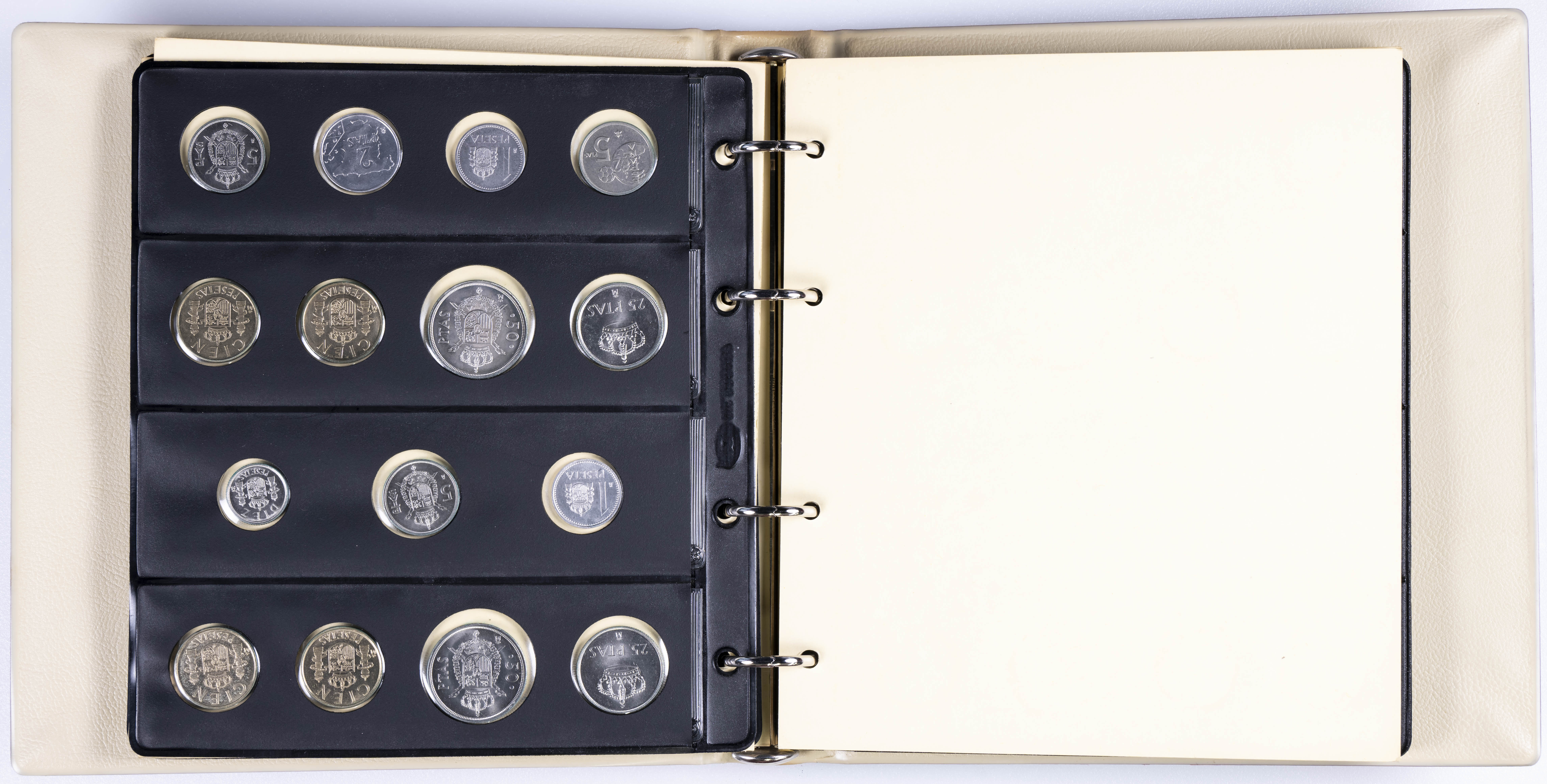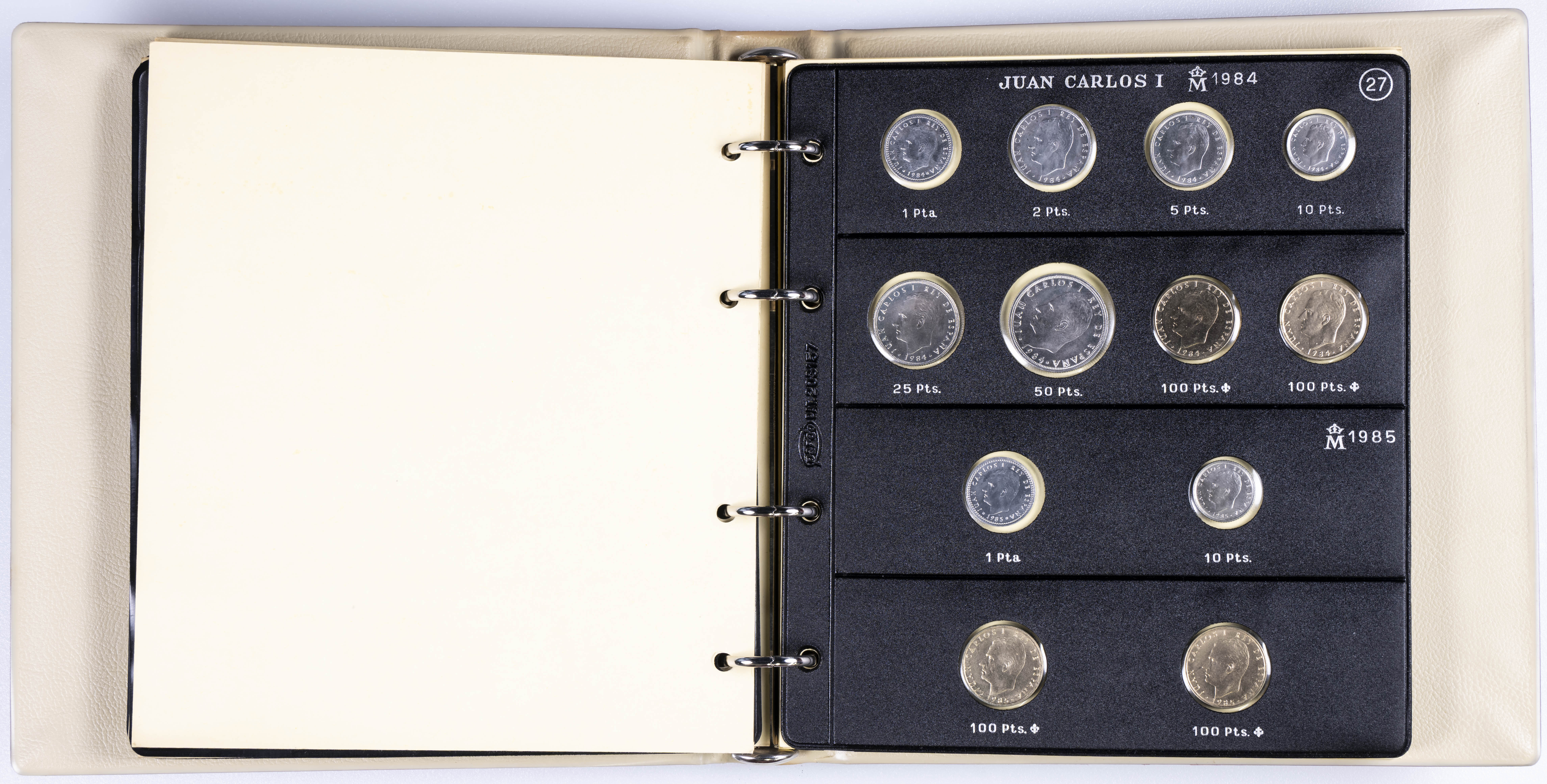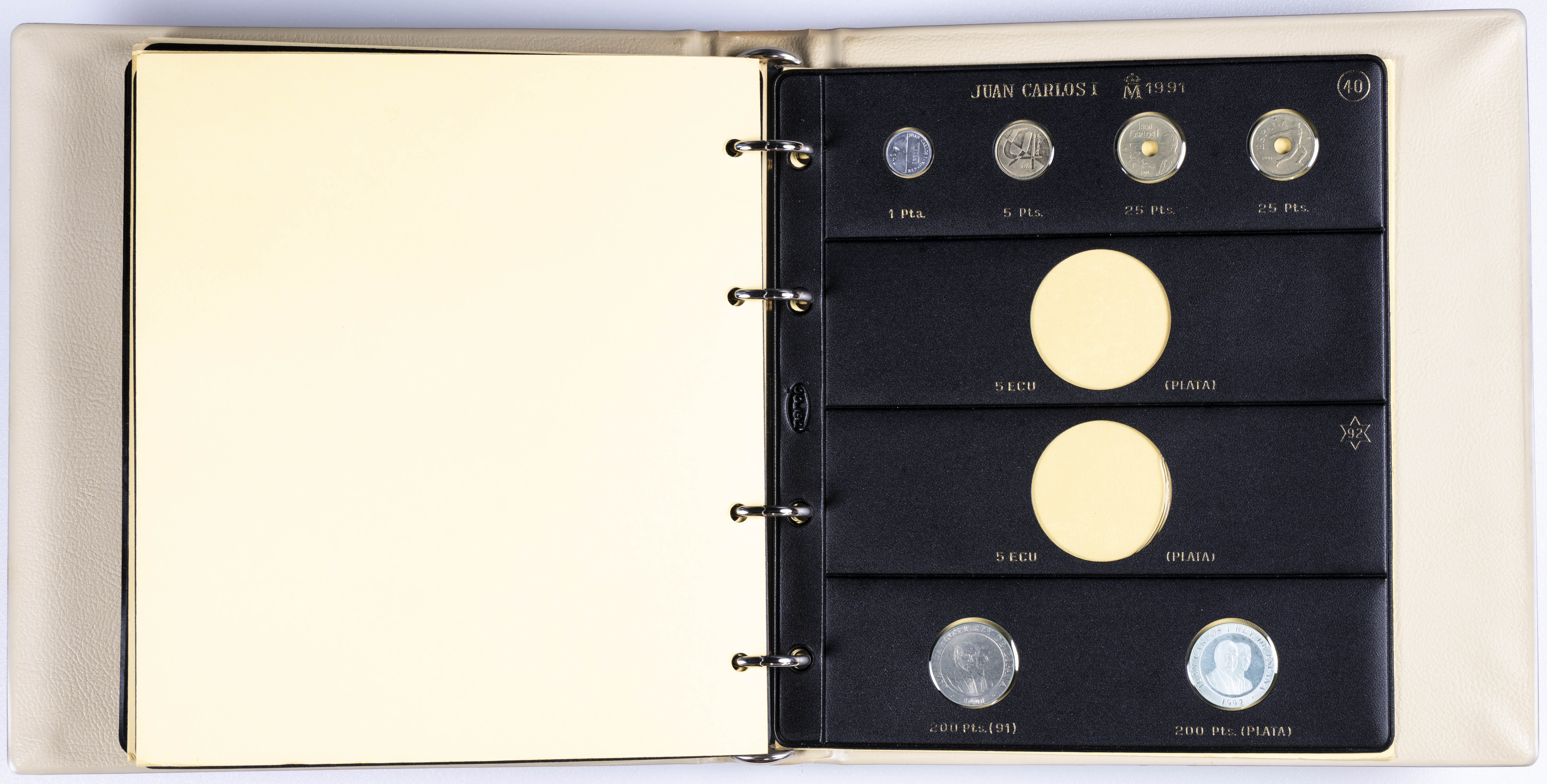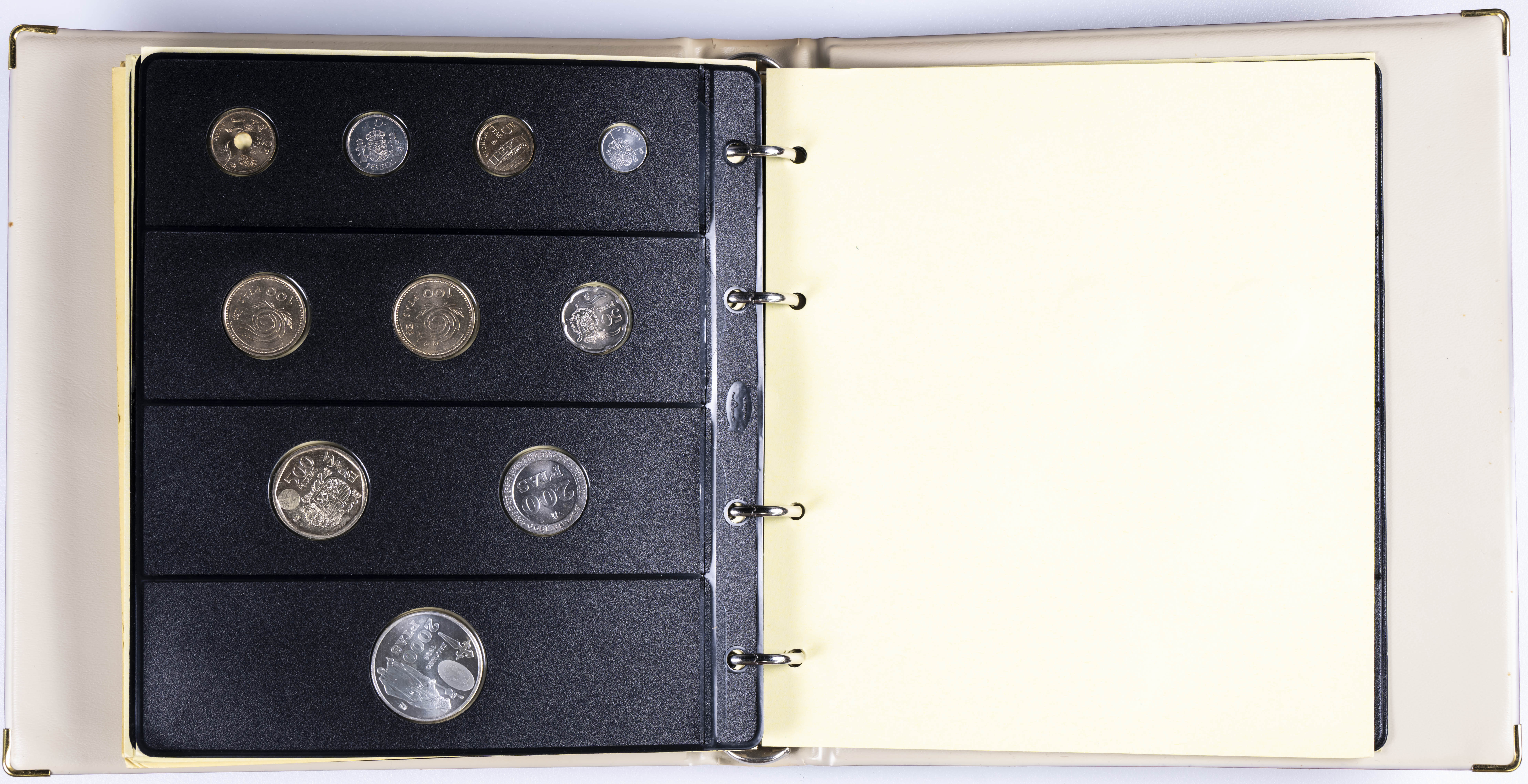 JUAN CARLOS I (1975-2014). Interesante y muy completa colección expuesta en 2 álbumes que incluye, además, sets, cartuchos, estuches, carteras y tiras. Incluye un buen número de ejemplares en plata. Colección en alto grado de conservación general. A EXAMINAR.