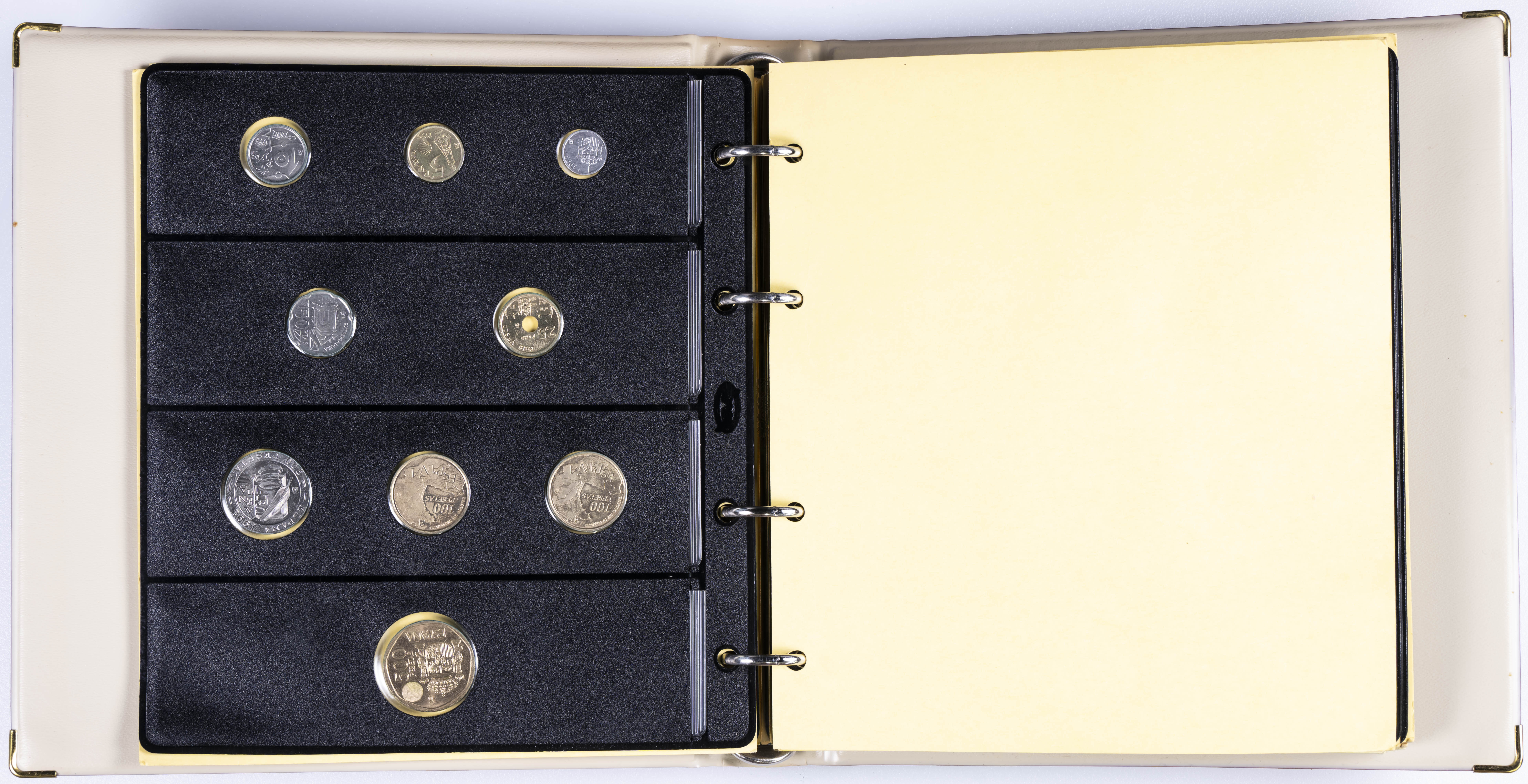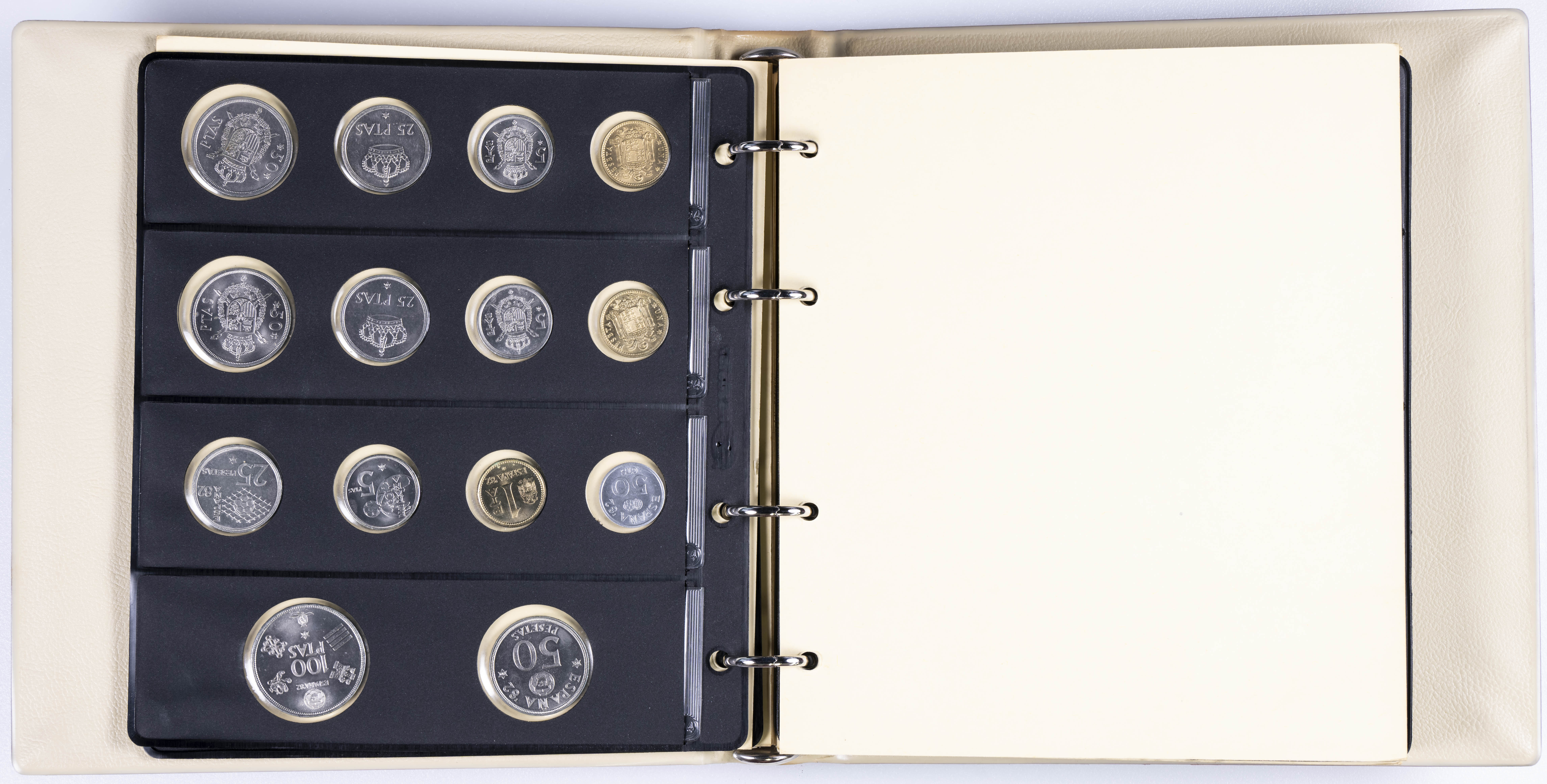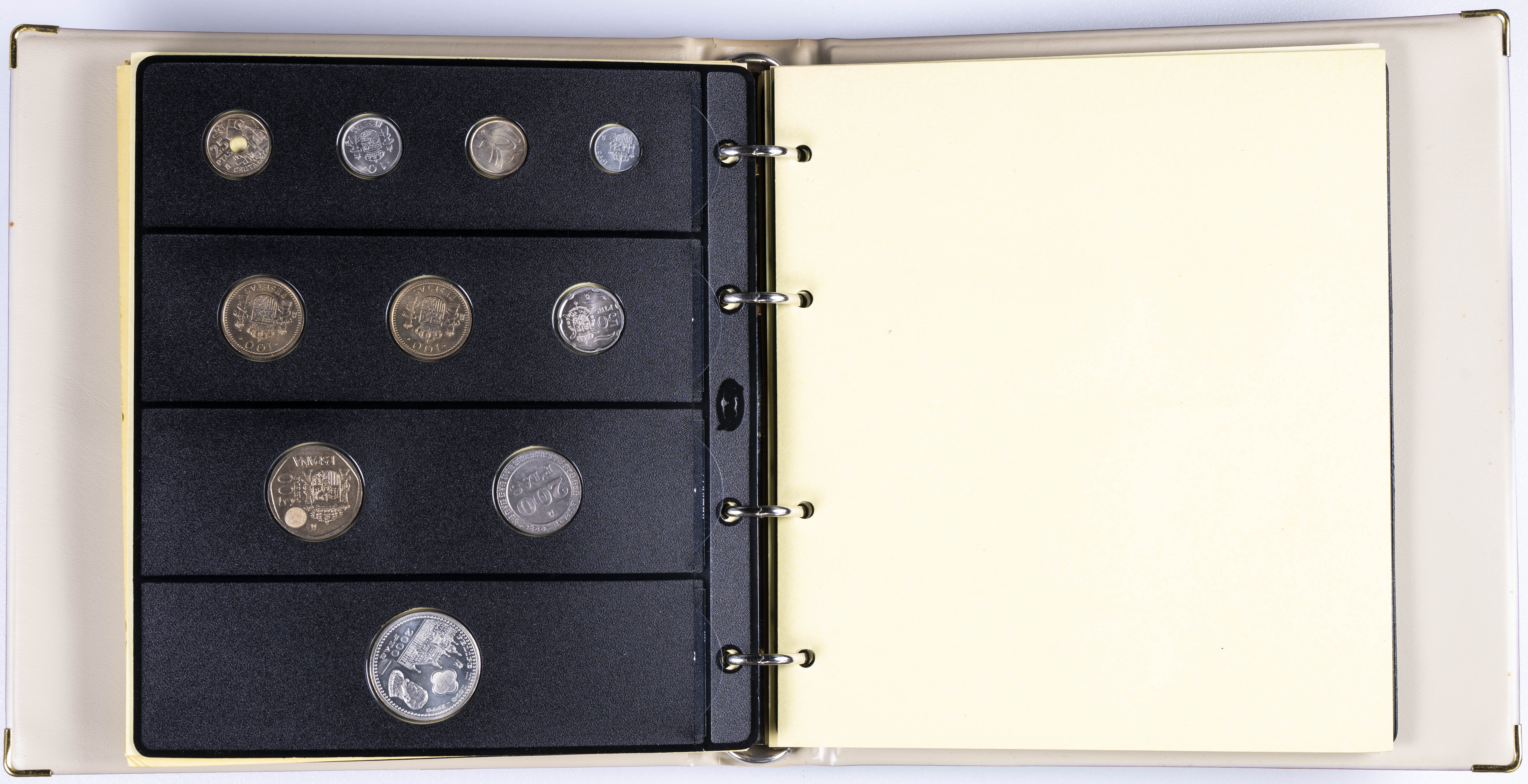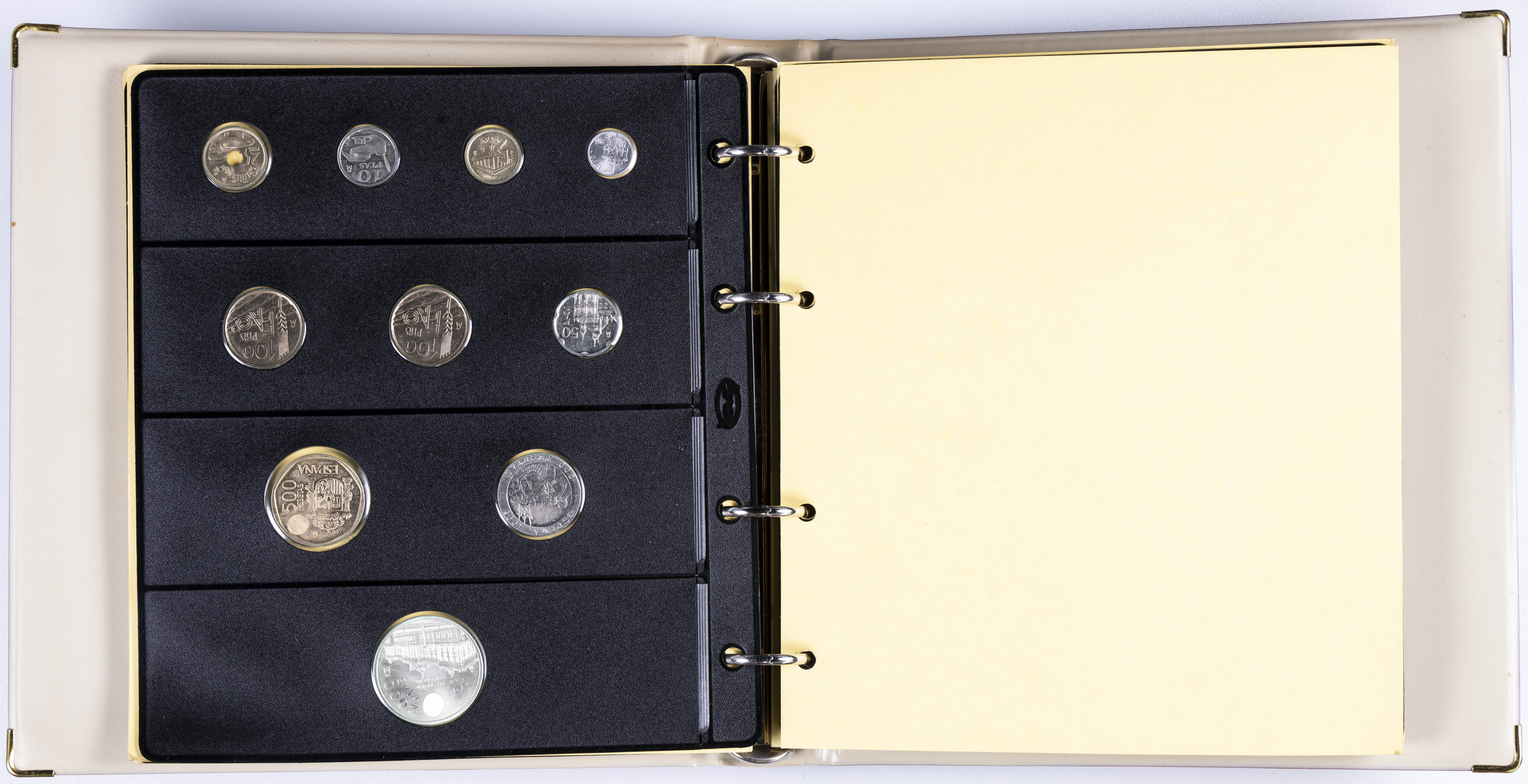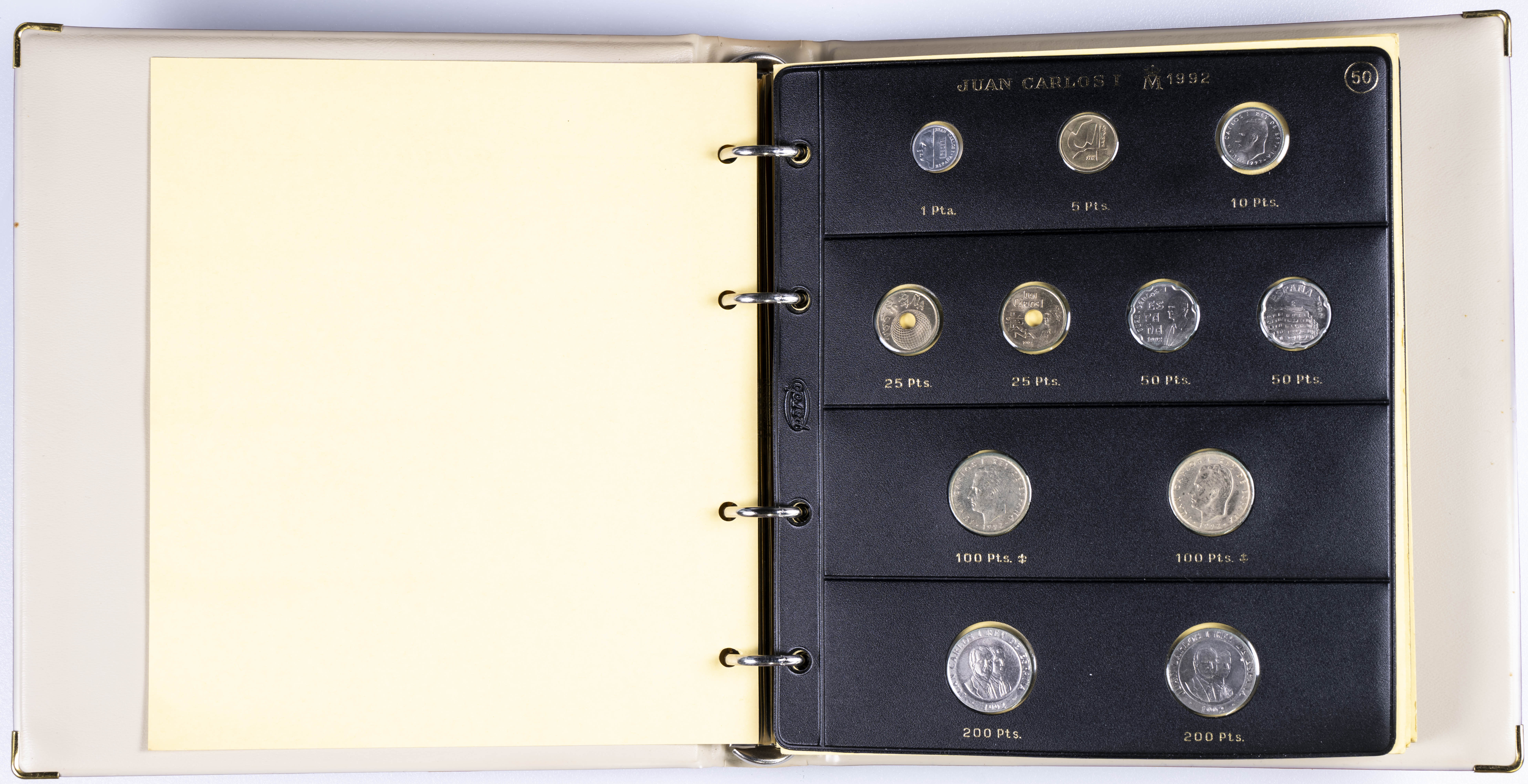 JUAN CARLOS I (1975-2014). Interesante y muy completa colección expuesta en 2 álbumes que incluye, además, sets, cartuchos, estuches, carteras y tiras. Incluye un buen número de ejemplares en plata. Colección en alto grado de conservación general. A EXAMINAR.
